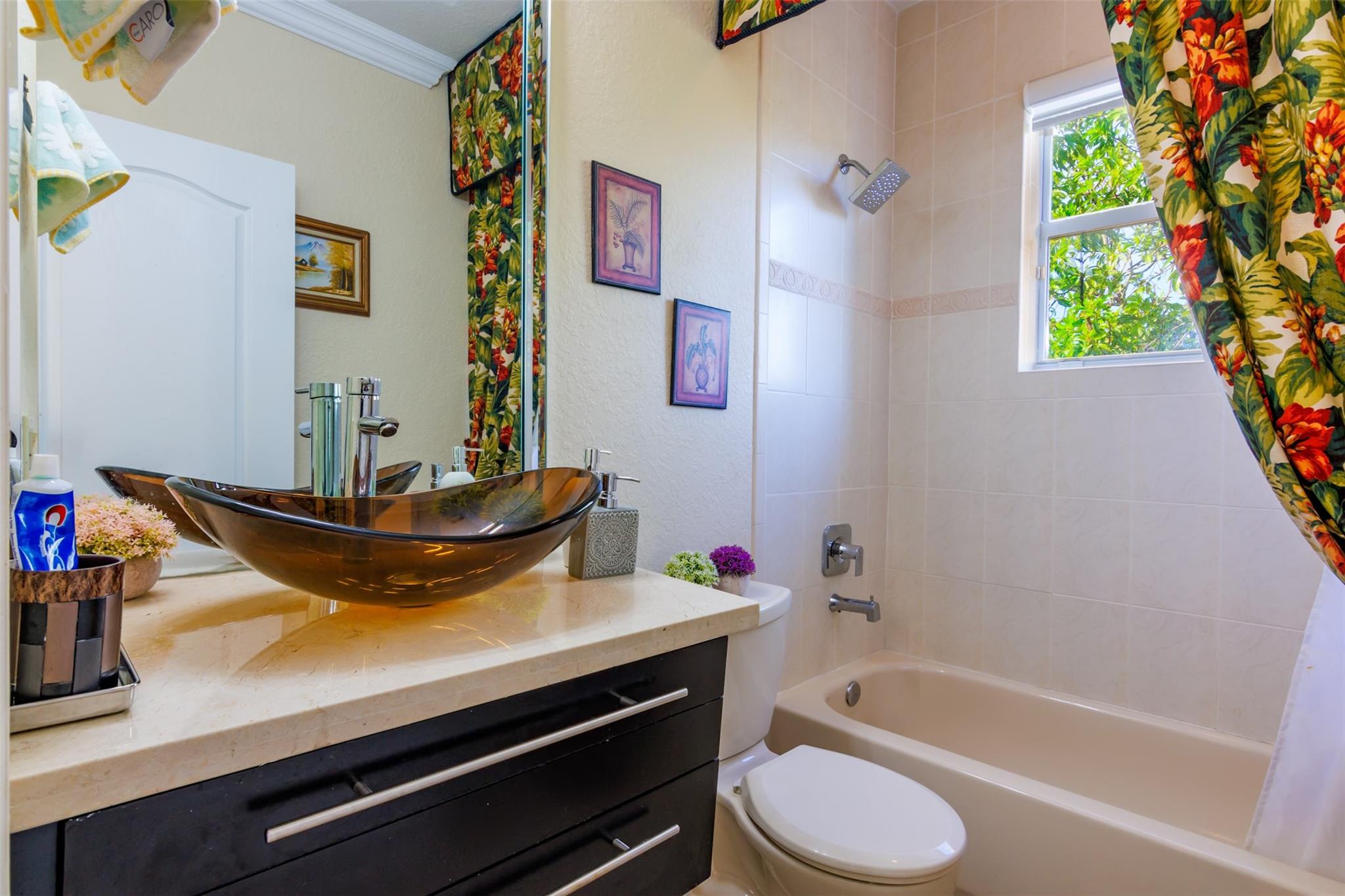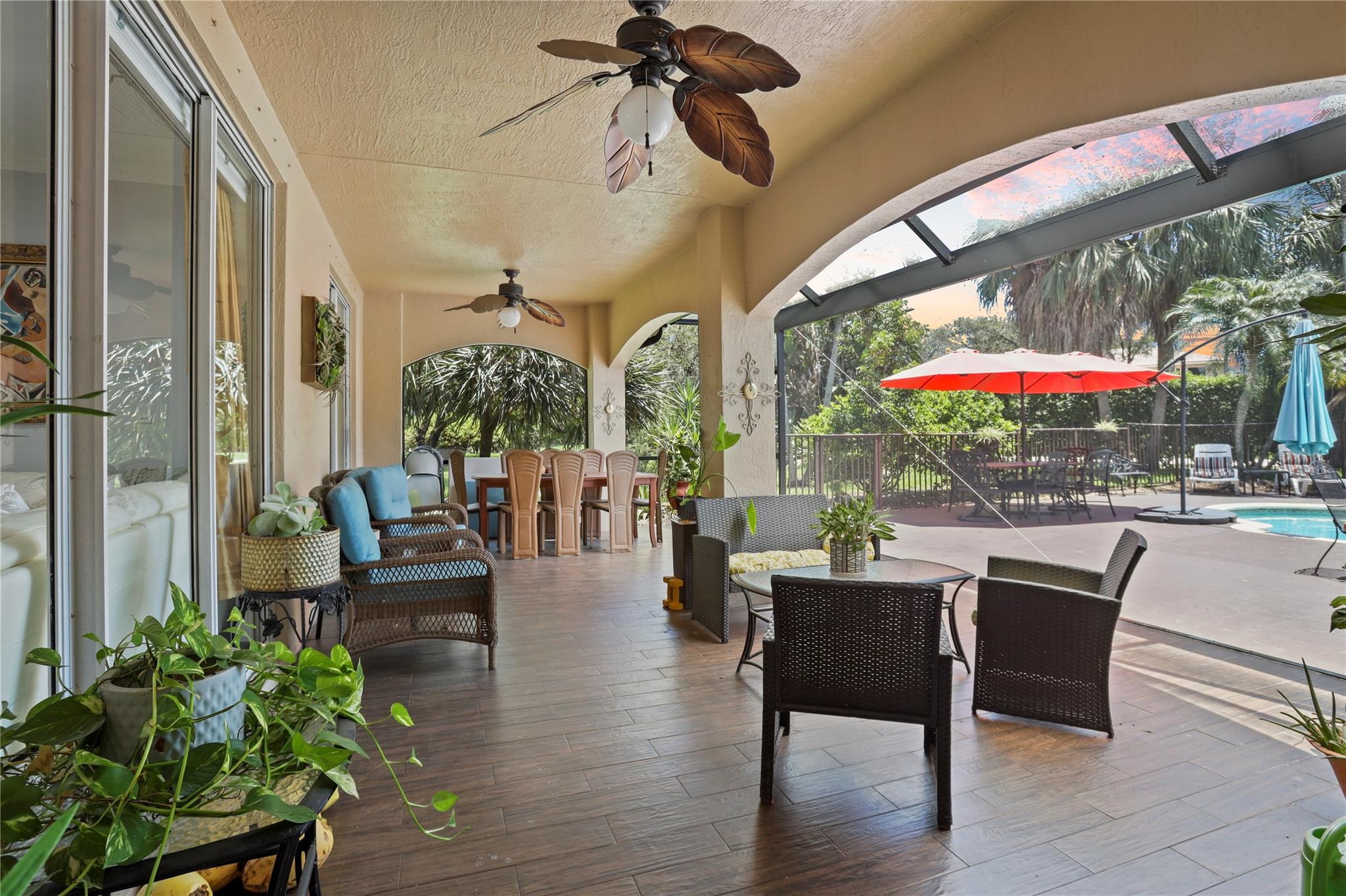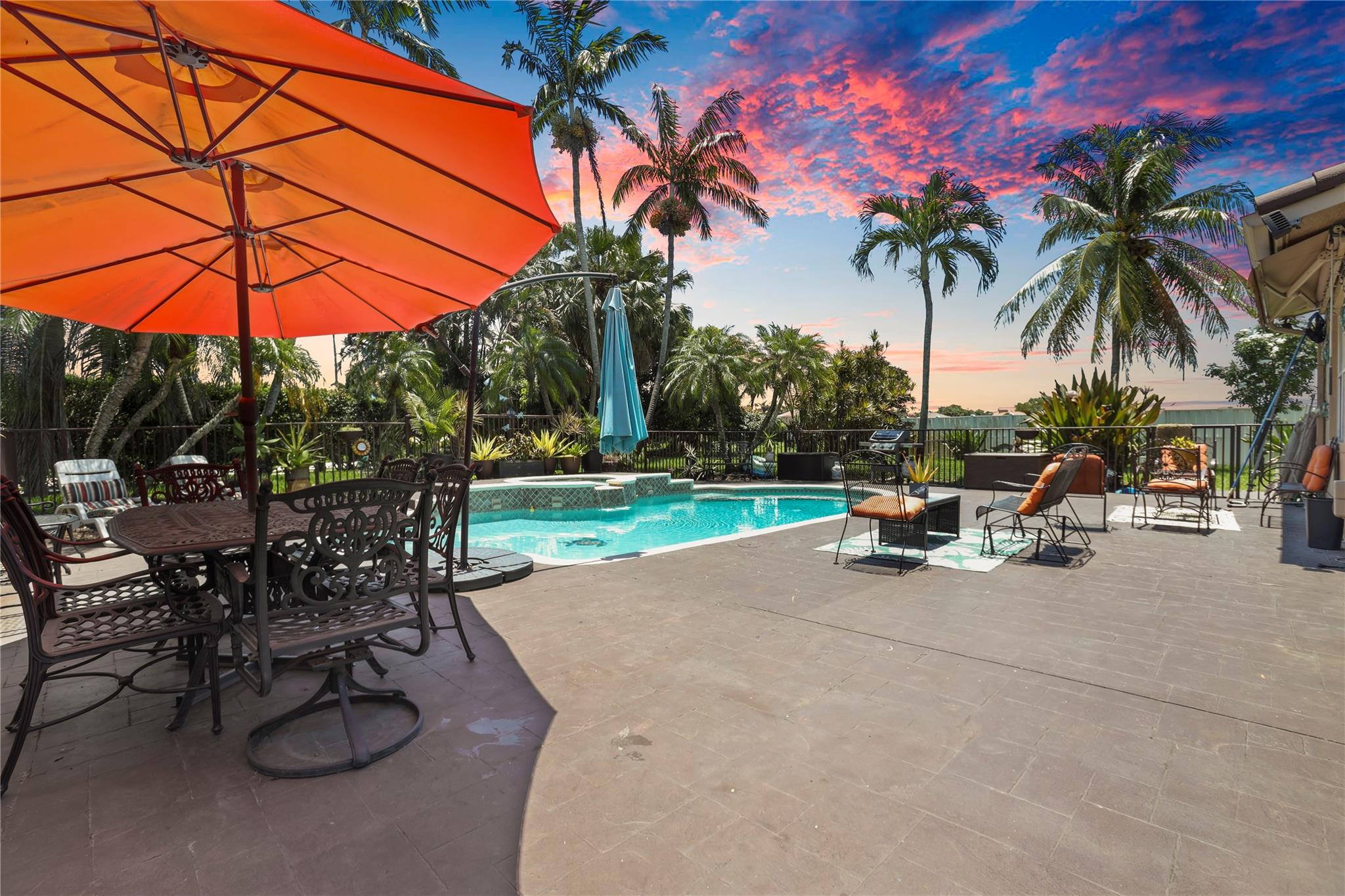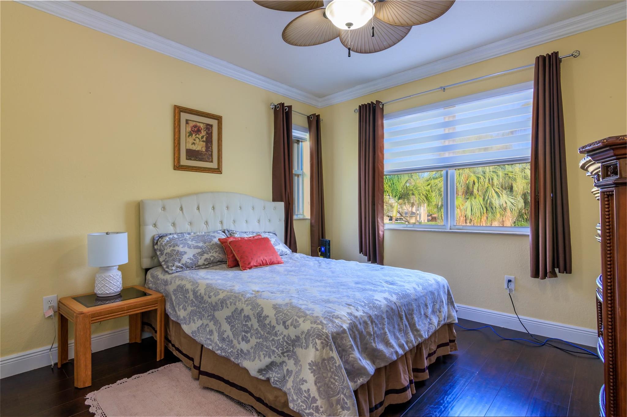 Price to sell!!! Sought-after Monarch Lakes/ Tequesta Cove gated community, this two-story gem boasts 4 beds plus a den (easily convertible to a 5th bedroom) Plus 3 full bathrooms and 1/2 Bath for guest. Situated on an expansive lot with a heated pool and jacuzzi, as well as a screened covered patio ideal for entertaining, beautifully landscaped tropical oasis complete with palm, coconut, mango and avocado trees. Featuring two master bedrooms, one conveniently located downstairs with its own private entrance and bath, this home offers luxurious touches like Zebra blinds, an alarm system, Recently renovated, the home boasts a chef's dream kitchen with double oven and gas stove, plus enjoy significant energy savings with 31 solar panels and a tankless hot water heater.