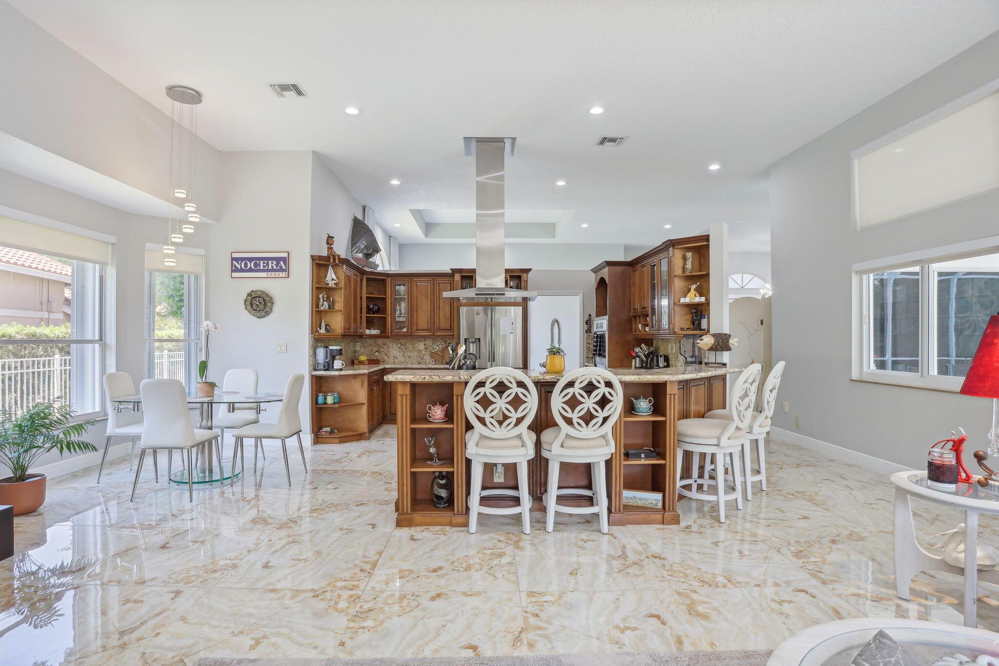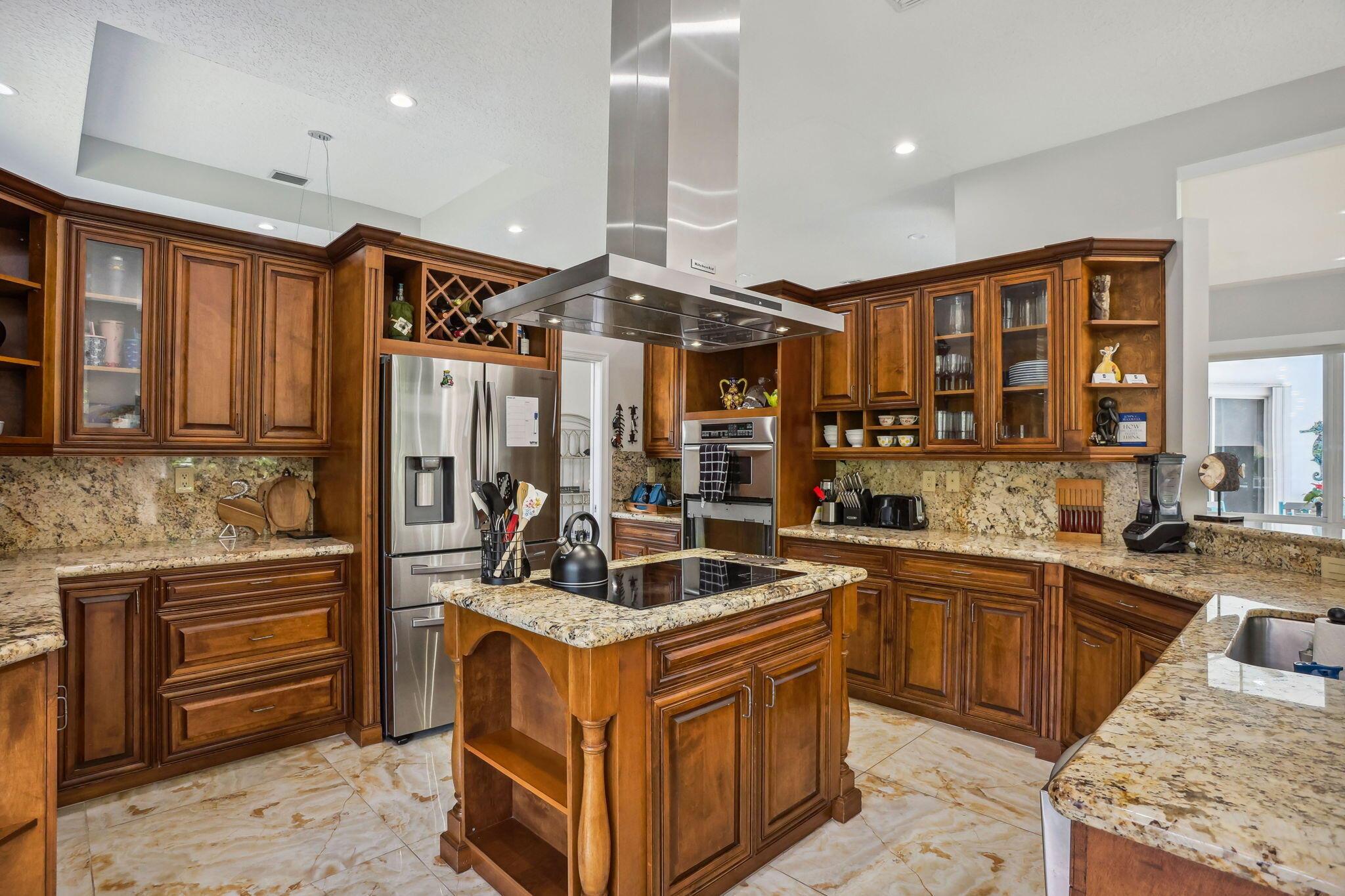 Experience opulence in this stunning Eagle Trace Country Club estate home. The grand marble entrance and porcelain floors set a sophisticated tone. Enjoy a spacious primary bedroom with a walk-in closet and a designer bathroom. Outdoors, a pristine pool, spa, and an impressive kitchen with an Alfresco grill await.The indoor kitchen features custom wood cabinets, granite countertops, and top-of-the-line appliances. Enjoy new amenities like a tankless water heater, AC, pool pump, saltwater system, electrical panel, refrigerator, and oven. Full hurricane protection ensures peace of mind.Nestled in a gated community with golf course views and located in a prime school district near Sawgrass Expressway, this is luxury living at its finest.