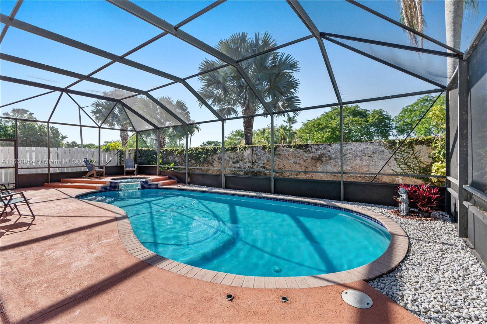 Stunning and very well-maintained 4 bedroom plus loft, 3 bath pool home in Chapel Lake Estates! This immaculate home is light, bright, and spacious with an open floor plan and soaring ceilings. Enjoy your private outdoor oasis with a screened-in saltwater pool & jacuzzi, a side deck that is great for entertaining, & plenty of additional space within your fenced yard. Nestled on a unique lot, this home offers unparalleled tranquility with no neighbors to the back or side. Experience peace of mind with recent upgrades including impact doors & windows (2021), a new roof with a transferable warranty (2019), a newer AC (2020), a recently refinished pool with an upgraded saltwater system (2021), & no polybutylene pipes. Maintenance includes internet & cable TV.