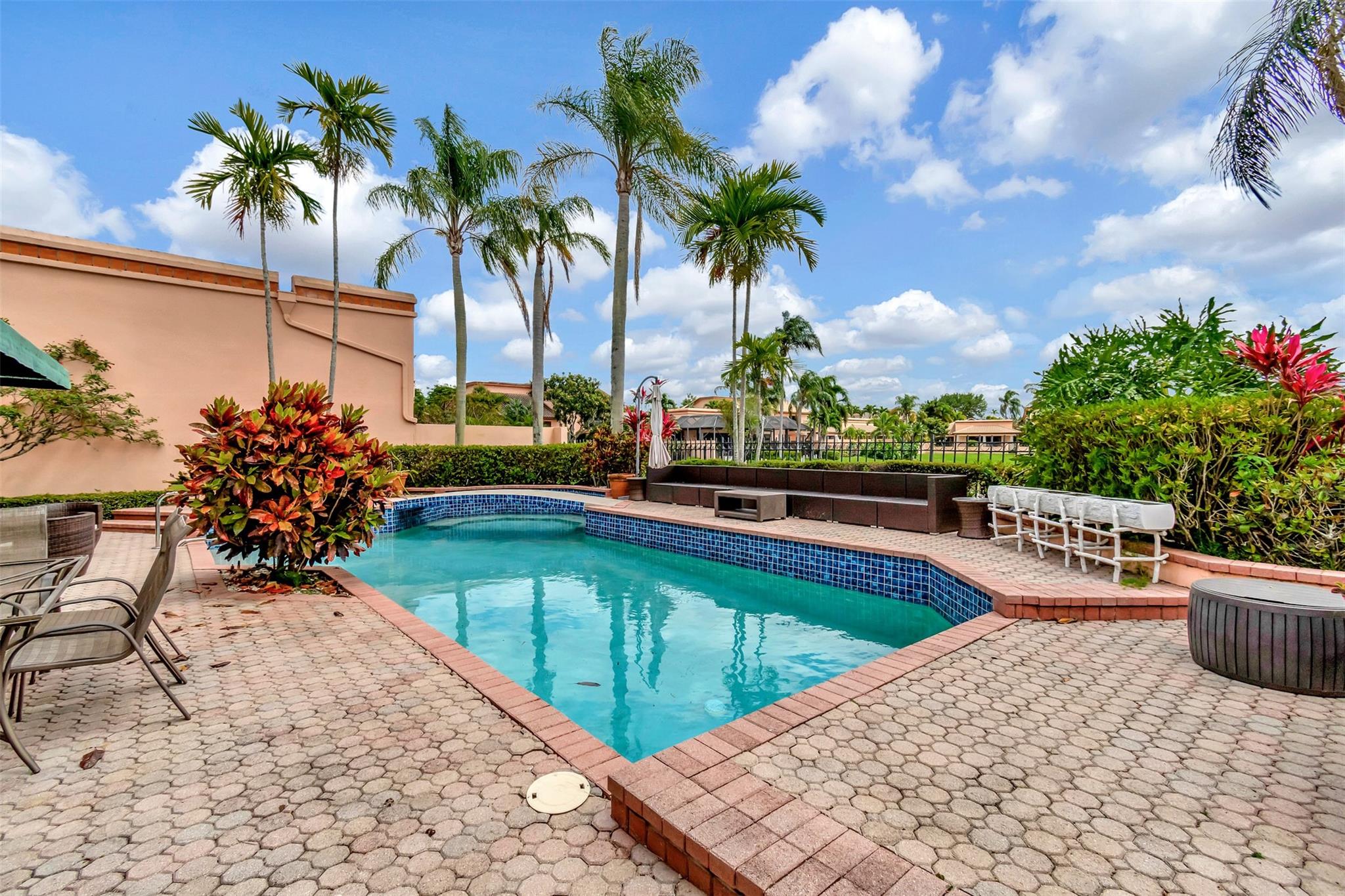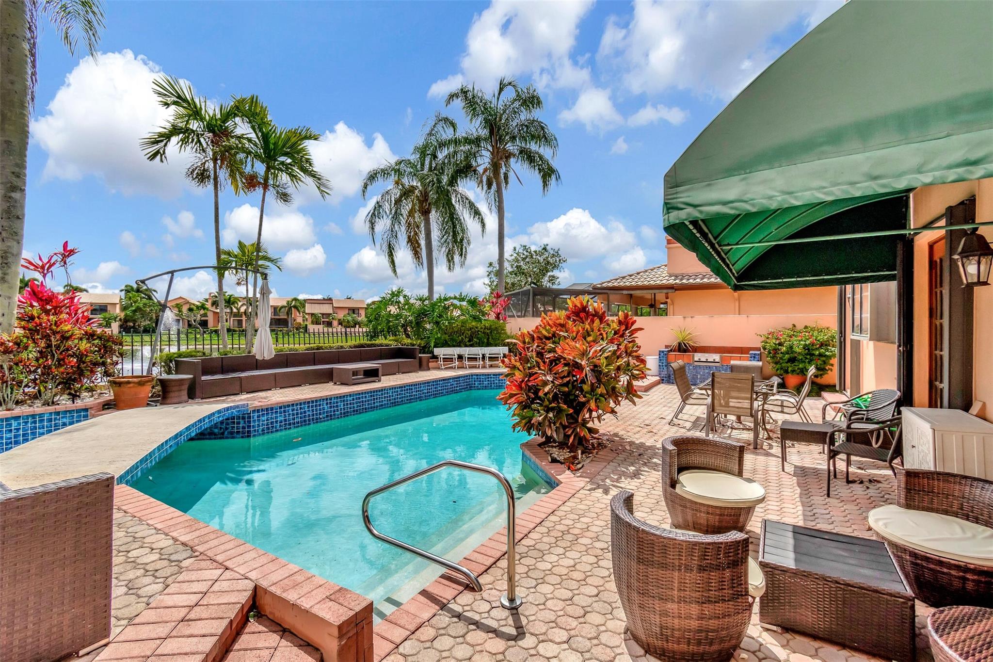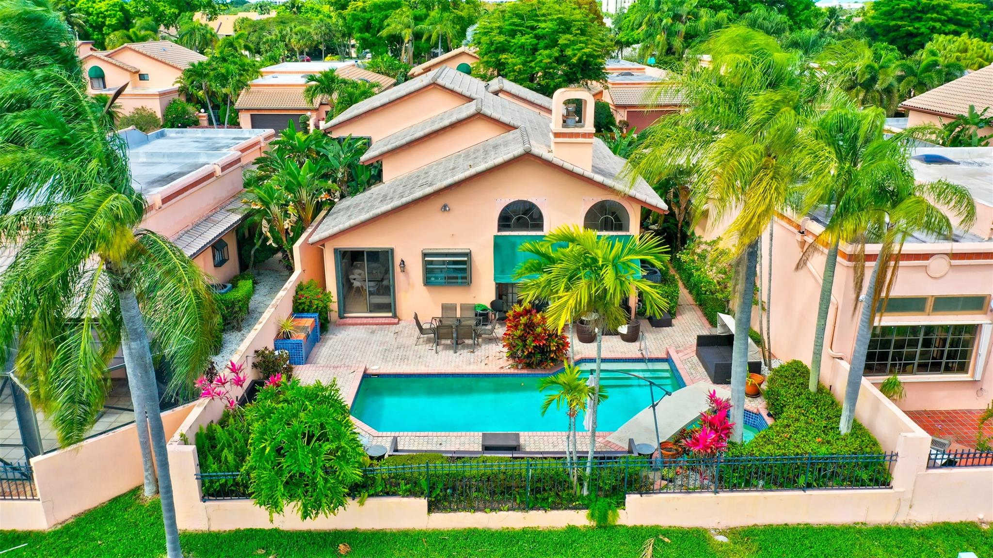GET YOUR OWN SLICE OF PARADISE. Prime Location, Situated in the sought-after community of Via Flora,convenient access to shopping, dining, entertainment, and top-rated schools. Step inside to discover an inviting open floor plan featuring 3 bedrooms, 2.5 bathrooms, and ample living space spread across multiple levels, Spectacular Views. Enjoy panoramic views of the tranquil lake. Luxurious Master Suite. Retreat to the spacious master suite offering a private sanctuary,a walk-in closet, and a spa-like ensuite bathroom with dual vanities, soaking tub, and separate shower. Outdoor Paradise: Step outside to your own private paradise featuring a sparkling pool, expansive patio area, and lush landscaping, perfect for outdoor dining, lounging, and soaking up the Florida sun.