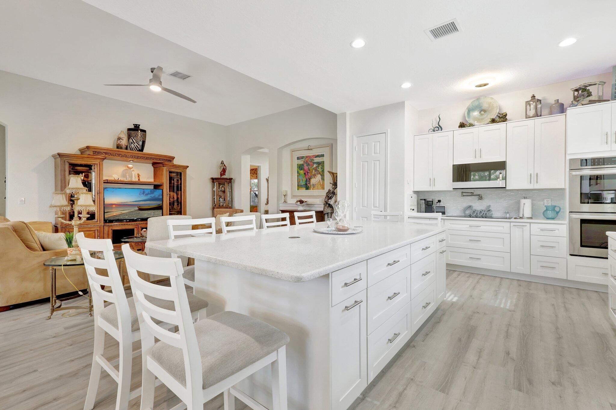 SPECTACULAR Elegant Upgaded 3/2 Rare Open Plan Carlise in Prestigious 55+ Pet-Friendly Resort Style Baywinds. LR DR Open to Huge One-of-A-Kind Remodeled Eat-In Kitchen w 8-Seat Quartzite-Topped Chef's Island. 42'' Cabinets, Double Wall Oven. Access Extended Enclosed Patio from Sliders in LR & DR. En-Suite Prim BR w Lge Walkin & Xtra Storage, MBA w Dual Vanities, Jetted Jacuzzi, Sep Shower. 12' Ceilings, Custom Window Treatments, many Remote Controlled Devices. Complete Hurricane Impact Windows, Remote Controlled Hurricane Roll Down Screen on Patio. 100% Carpet Free. All Upgrades 3 or less Yrs. AC, HW. Central Vac. Custom Metal Diamond Plate Cabinets & Rubberized Flr in Garage. Custom Landscaping, Furn neg.