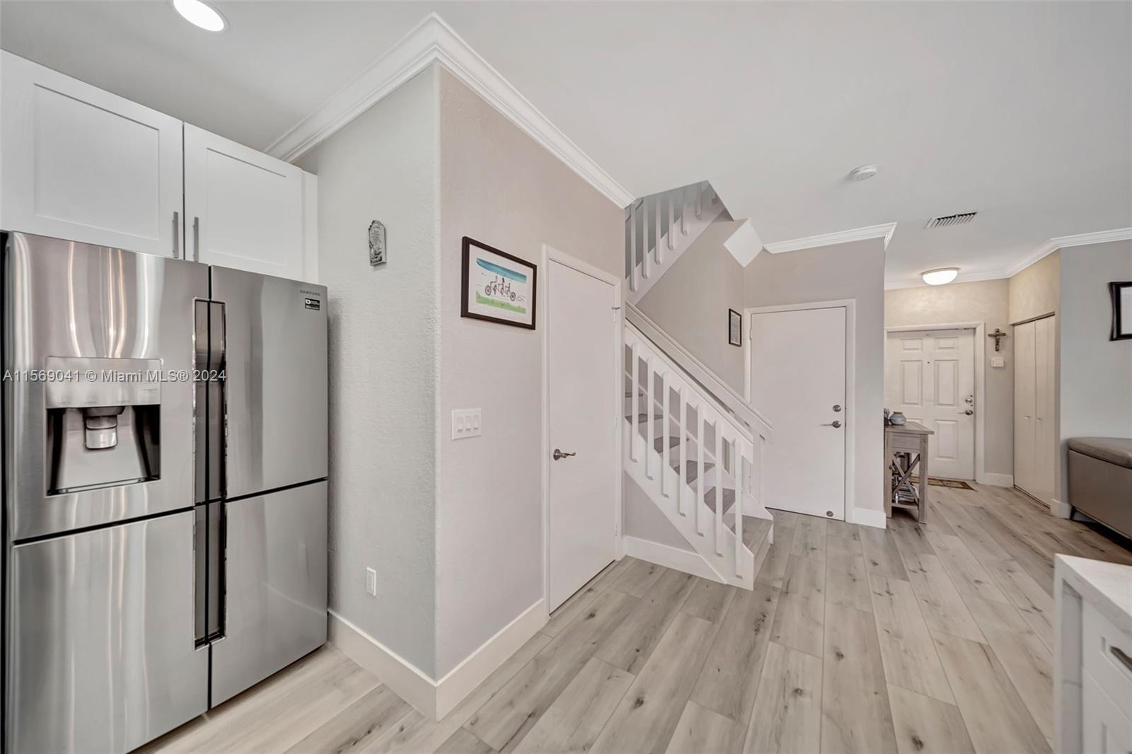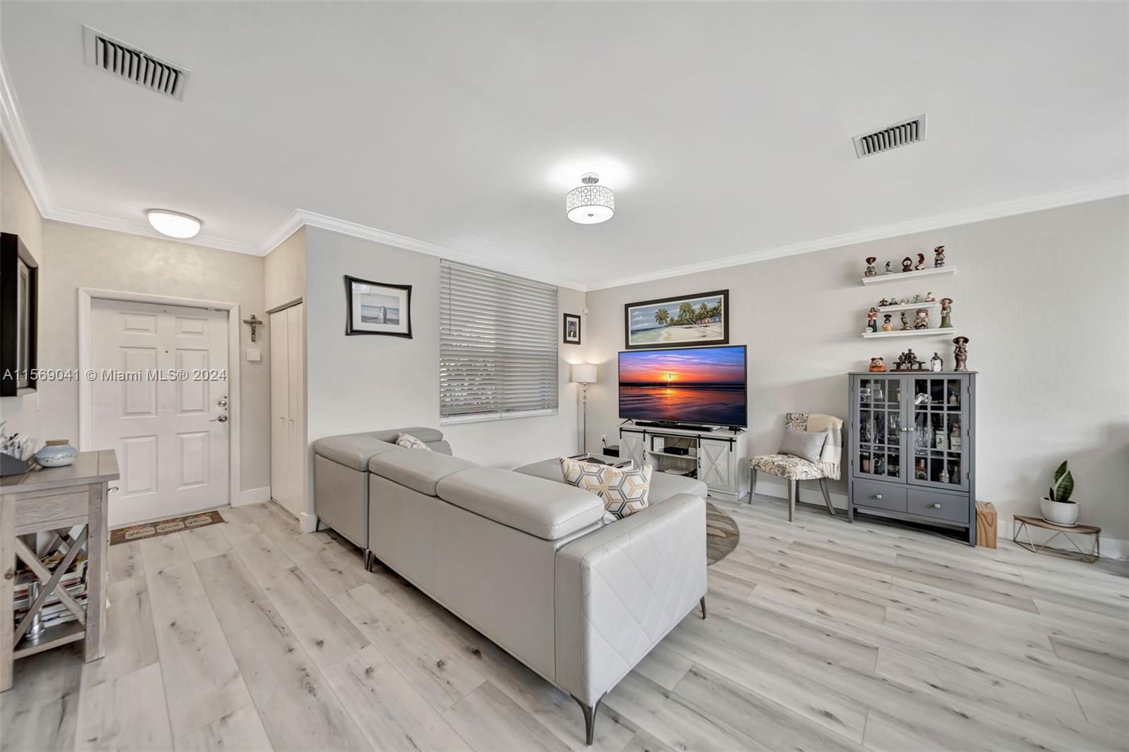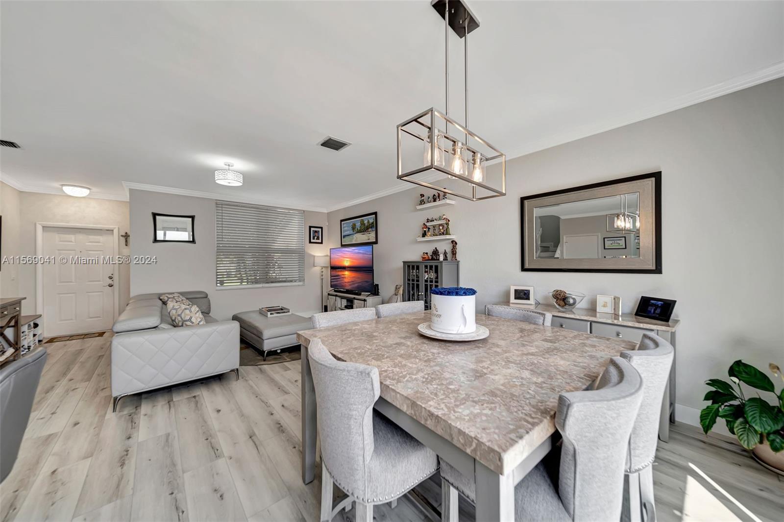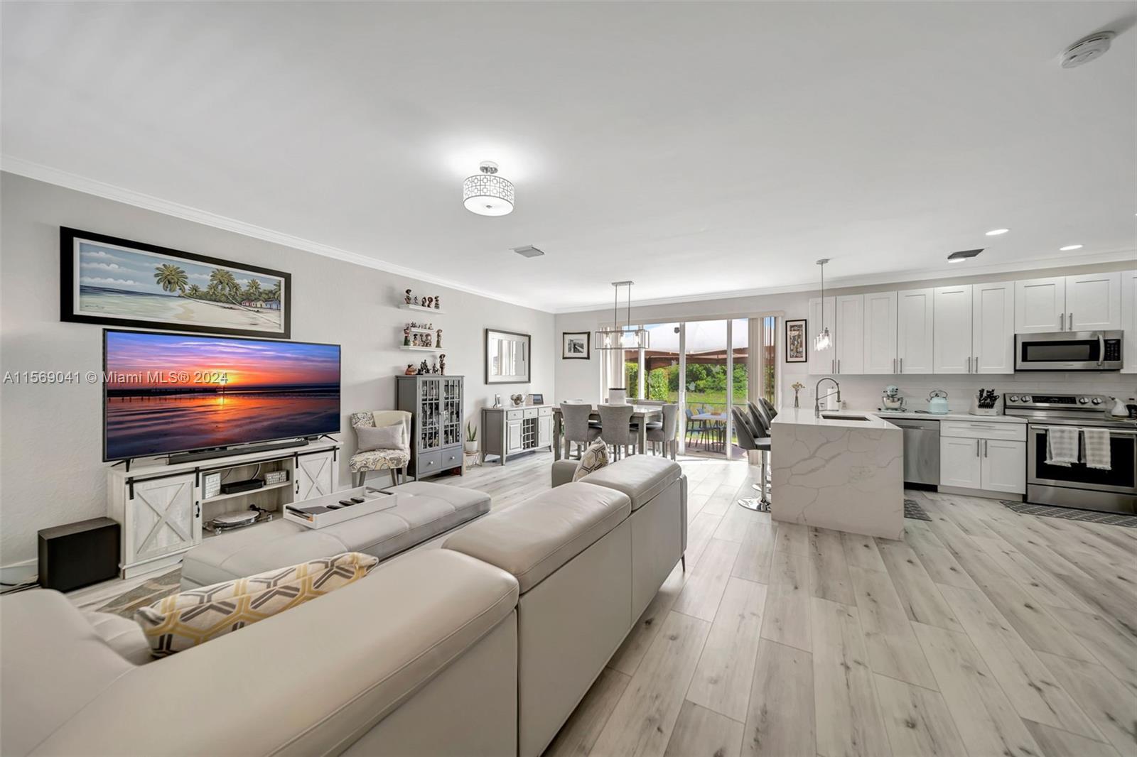 Welcome to this stunning home which features an open floor plan with a modern kitchen, sleek appliances, custom cabinetry, marble countertops and breakfast bar. The Living Room and Dining area boasts plenty of natural light which makes this an inviting space for relaxation and gatherings. This home exudes elegance and charm with every detail: crown molding, baseboards, wood laminate flooring, modern light fixtures. Relax on your patio and enjoy the serene surroundings and waterfront views. Park Crossing installed new roofs in 2023. Towngate offers many recreational options with community pools, tot lots & picnic areas. The city park has tennis courts, basketball courts, a soccer field, a baseball field, and pool. Silver Palms Elementary school is conveniently located within the community.