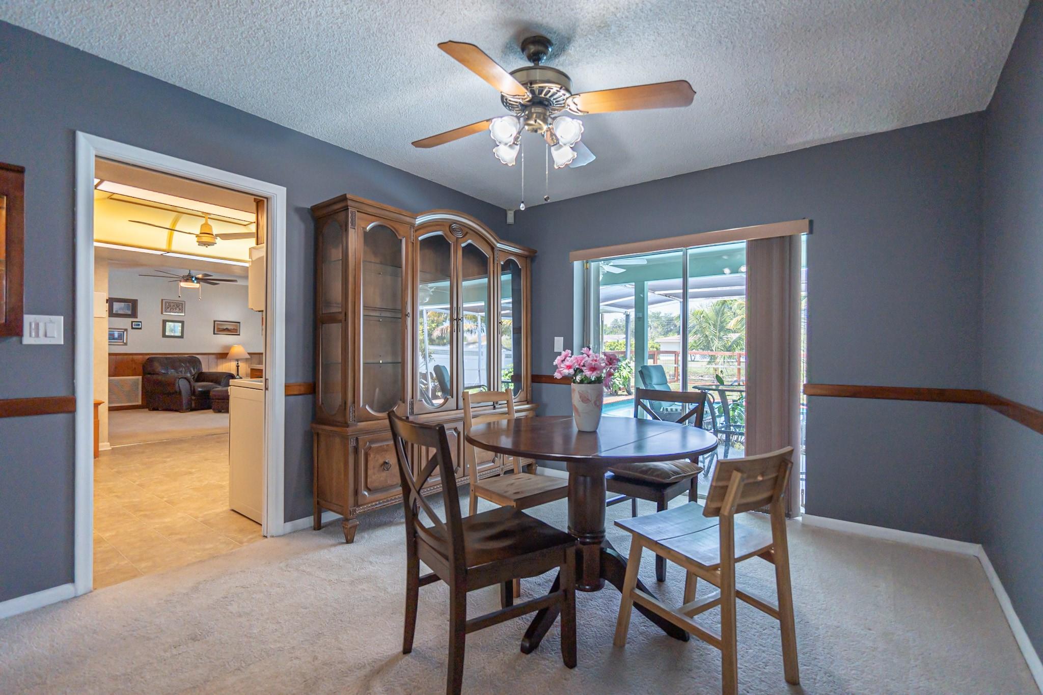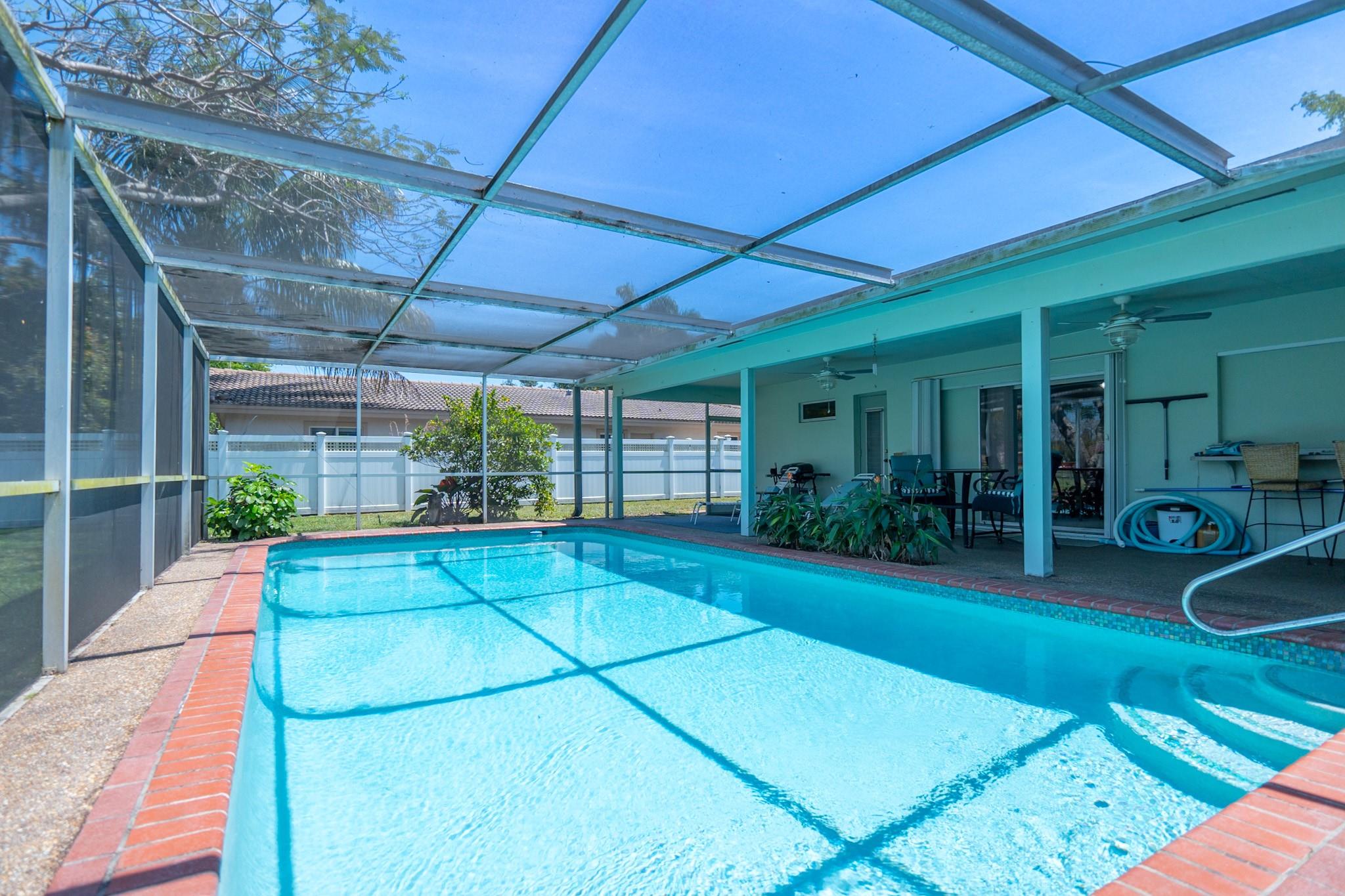 This is a fantastic property! The split floor plan with four bedrooms and two bathrooms offers both space and privacy, while the formal dining room and living room provide elegant settings for entertaining guests. The spacious family room is perfect for casual gatherings or relaxing evenings at home. The custom solid oak kitchen cabinets add a touch of luxury, and the impact windows with accordion shutters provide both safety and peace of mind during storms. The built-ins offer added convenience. The large yard and screened-in pool offer plenty of opportunities for outdoor activities and family fun, while the canal provides beautiful views and refreshing breezes. And with its convenient location close to everything, this home truly has it all!