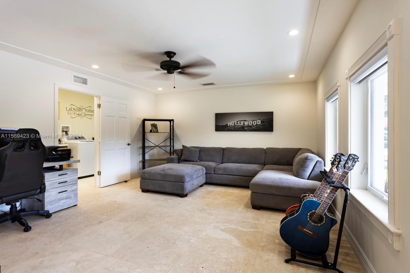 Gorgeously updated picturesque family home on super quiet and desirable central Pinecrest street! Large open white kitchen-family room area with high ceilings, marble and wood floors, mostly impact glass (plus a few windows with shutters), 2020 flat tile roof, gas water heater and newer generator, second family room or playroom (formally the garage converted by Hollub Homes), indoor laundry room, 2 ACs, beautiful pool-yard and landscaping, pavered driveway, and more! Palmetto elementary, middle, and high school.