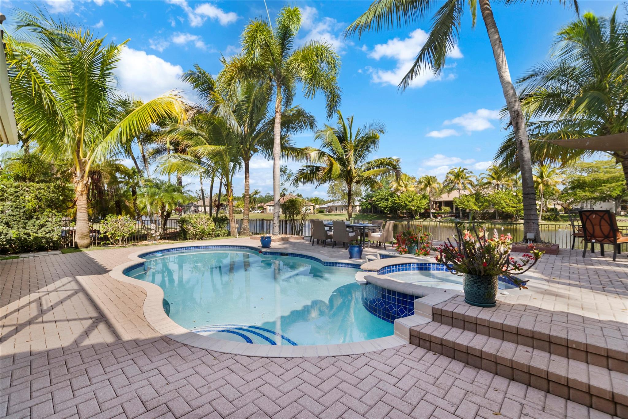 Former Builder Spinnaker Model Home In Parkland Isles w/Newer Roof & Updated Auxiliary Baths! 5 Beds (5th bed used as office), + Built-In Loft, 3.5 Baths Waterfront, Home w/Heated Pool & Spa, Cul-De-Sac Lot, Huge Fenced-In Yard Overlooking Serene Water Views, Screened-In Patio, Accordion Hurricane Shutters On Most Windows, Kitchen w/Granite Counters, Stainless Steel Appliances, & Wood Cabinets, Updated 1/2 & Upstairs Baths, Downstairs Primary Bed w/Sitting Area, Walk-In Closets, Upstairs Jack & Jill Beds & Bath, 4th Bed w/On Suite Bath, Low HOA Dues Which Includes Comcast High Speed Internet, Basic Cable, ADT Alarm System, & Walk To Resort-Style Clubhouse From Home, 24-Hour Guard Gated, A+ Schools Boarders Community, Close To Major Highways, Shopping, Dining, & Parks & Recreation.
