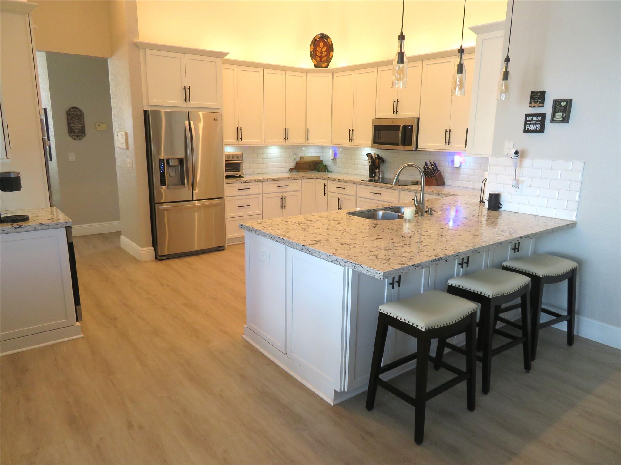 Immaculate 5 bedroom 3 bathroom family home in the gorgeous gated community of Sunset Lakes. The beautiful interior includes remodeled kitchen w/custom cabinets, quartz countertops, double oven, wine cooler, SS appliances, under cabinet lighting, new flooring in main areas, remodeled bathrooms and laundry room, plantation shutters, partial impact windows, accordion shutters for non-impact windows, alarm. Outside you'll find a fully fenced yard w/beautiful lake view to watch amazing sunsets, a multi-level travertine patio, remote controlled retractable awning, and gutters. Community has a beautiful clubhouse full of amenities. This amazing home will not last. It could be yours, but don't wait too long. You have to see it to believe it!