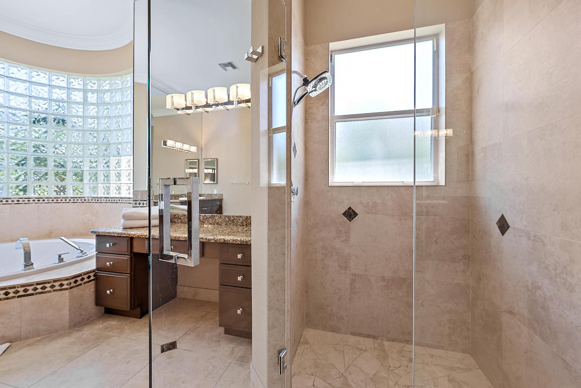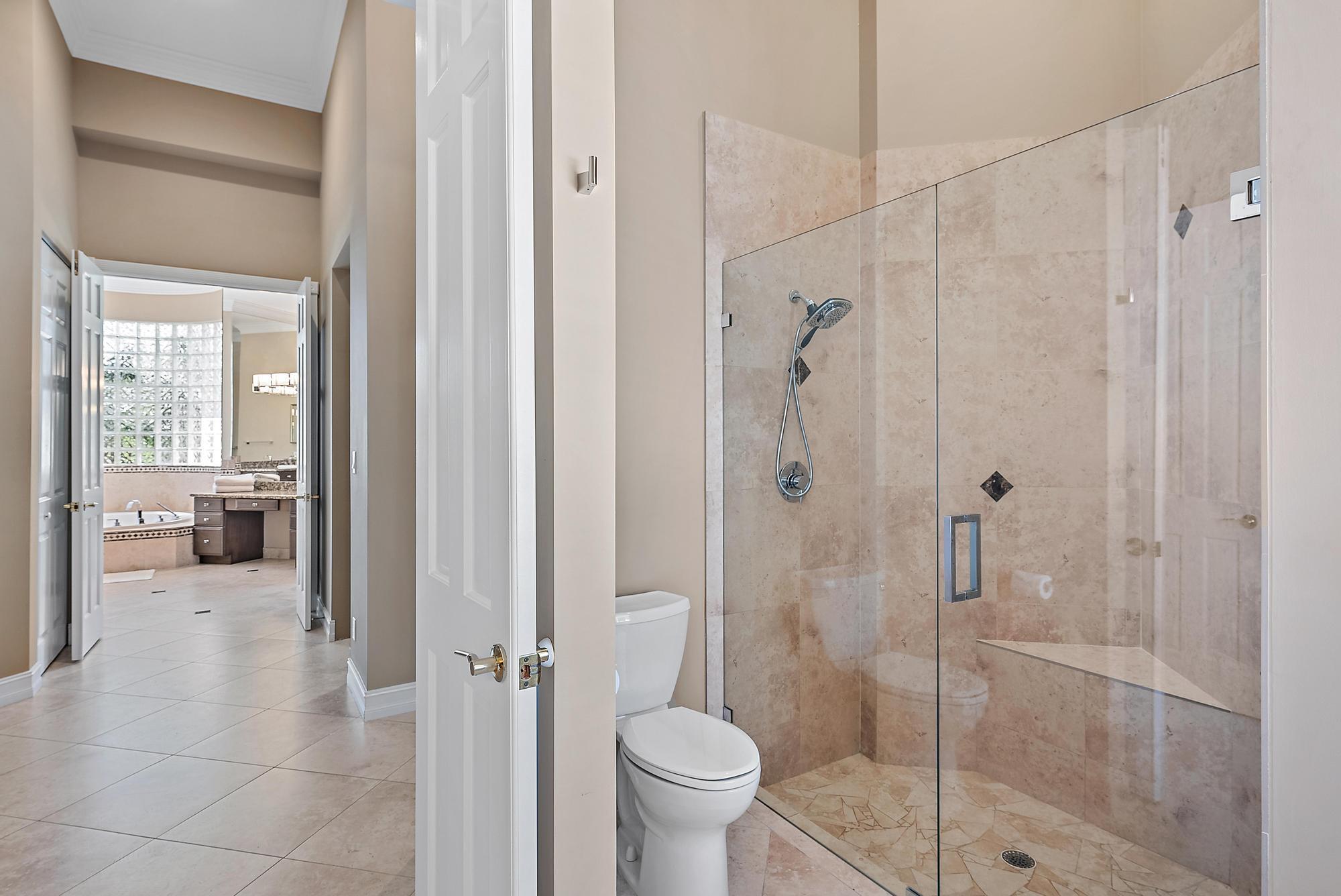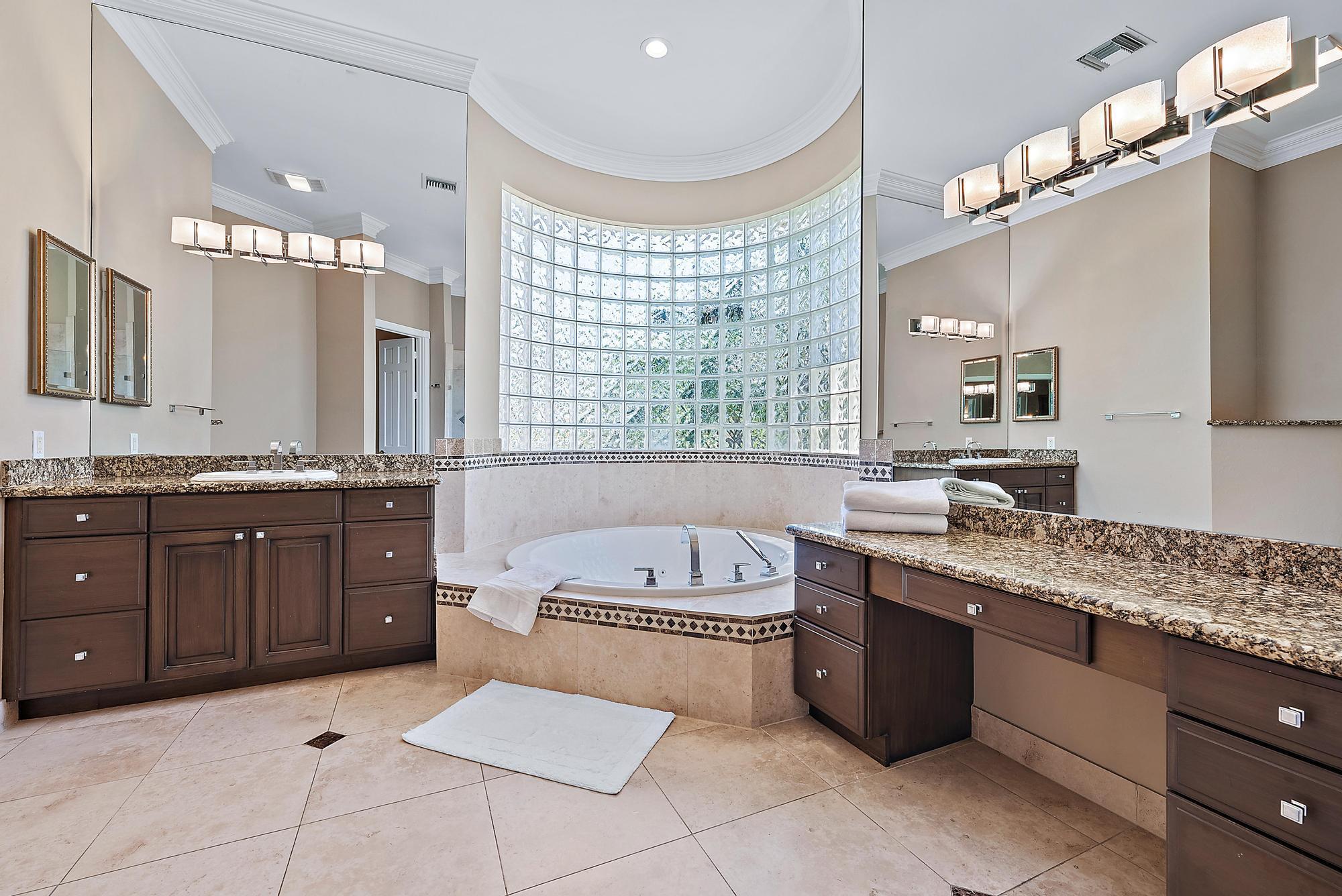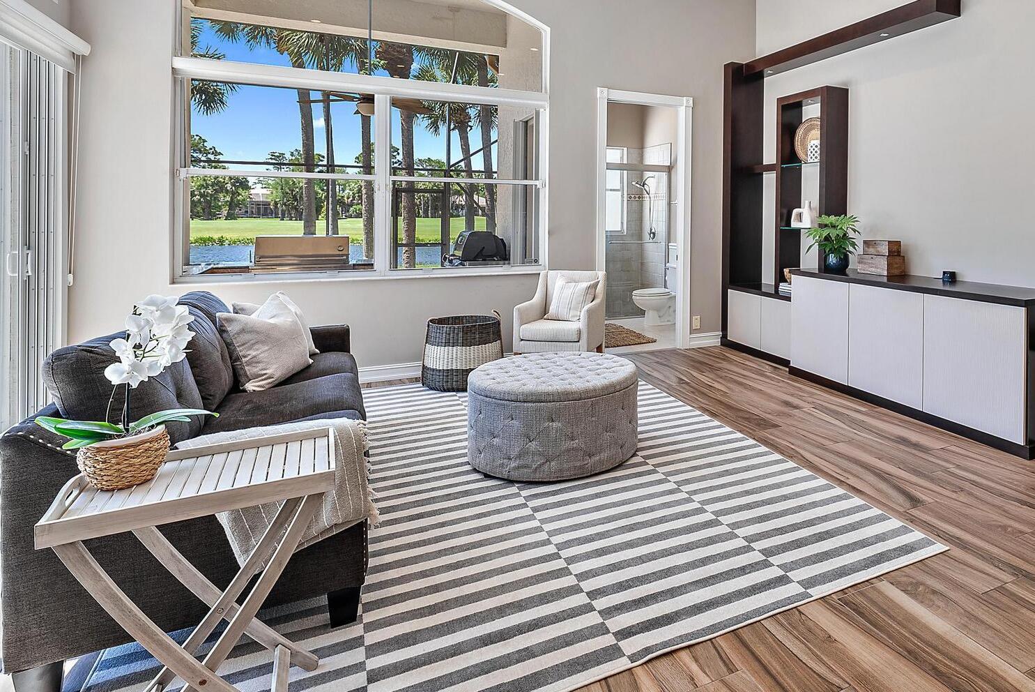 Looking for immediate (but not mandatory) golf membership and an HOA fee of only $300/month? Don't miss this opportunity! This meticulously maintained 4-bedroom home sits on nearly a half acre of lushly landscaped property overlooking the 18th fairway of the newly renovated Arthur Hills golf course. 12' ceilings and an open floor plan offer plenty of natural light and beautiful sunset views. Custom kitchen features a large center island, wall oven, wine fridge, spice drawers, lazy susan, and pantry/cabinet pullouts. Primary suite has 2 full bathrooms and 2 large walk-in closets. On the other end of the house are 2 add'l bedrooms, each with an ensuite bath. The 4th bedroom is used as an office with built-in desk, shelving, and a Murphy bed for the convenience of your guests. Outside, you