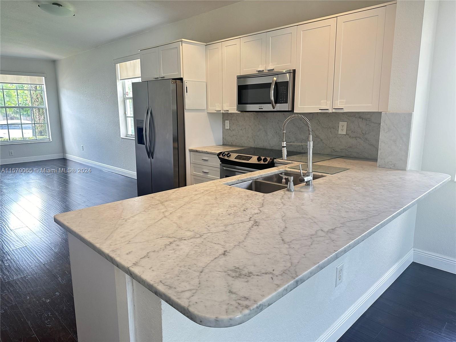 Experience the serene living in this exquisite renovated 3 bedroom 2 bathroom home, plus a den, located in the prestigious Sunset Lakes. This beautiful residence comes with impact patio door, laminated high end wood floors, renovated bathrooms, customs made closets for all the bedrooms, a modern kitchen with beautiful Carrara marble counter tops, newer AC with remote programming, compact water heater and washer and dryer for the perfect blend of comfort and enjoyable lifestyle. Residents will have exclusive access to community facilities including a stunning clubhouse, swimming pools, and tennis courts, all set within a tranquil, beautifully landscaped environment. Perfect for families, minutes from “A” rated schools, Hospital, Shopping and more or for those seeking a peaceful retreat.