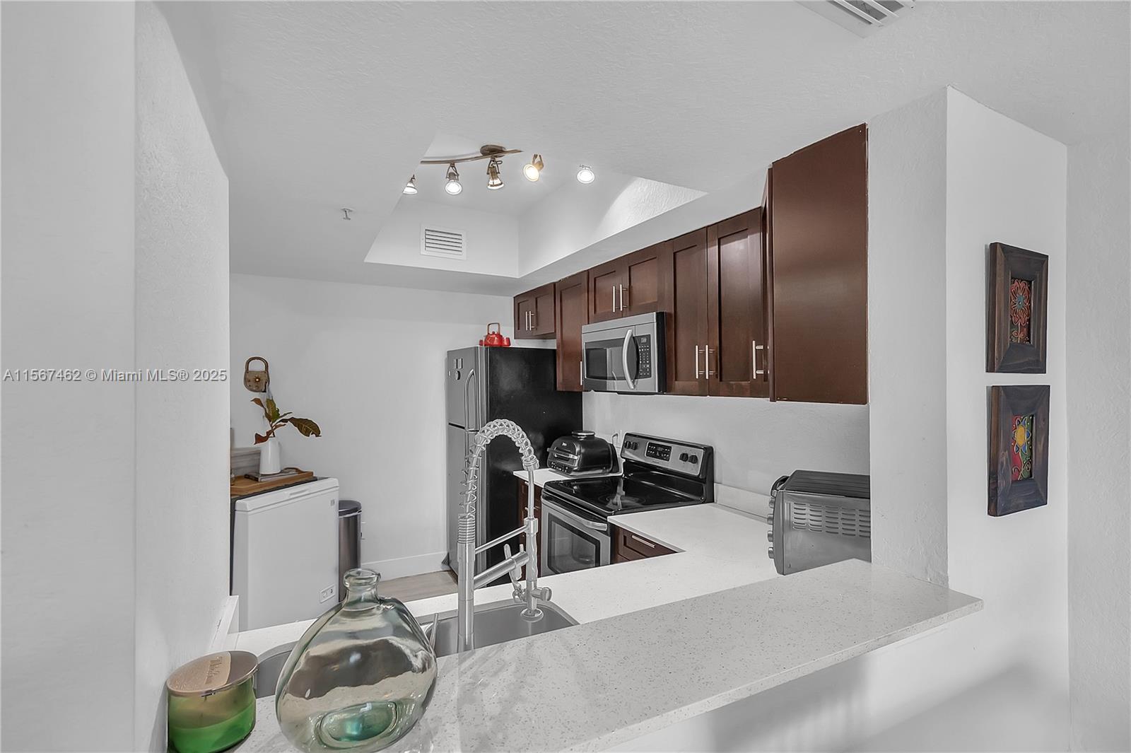 Welcome to this exquisite 1410 sq. ft. residence nestled in the prestigious community of Villas of Tuscany. This townhouse showcases a meticulously crafted floor plan, offering 3 bedrooms and 3 bathrooms. An inviting open layout creates a seamless flow throughout the living spaces. New roof & A/C. The newly installed vinyl luxury plank flooring not only enhances the aesthetic appeal but also ensures effortless upkeep. The heart of the home, the renovated kitchen, features elegant quartz countertops and modern stainless steel appliances, perfect for culinary enthusiasts and entertaining guests alike. Situated in a family-friendly neighborhood,this property is surrounded by lush parks and reputable schools, making it an ideal choice for families seeking convenience and comfort. Move-In Ready
