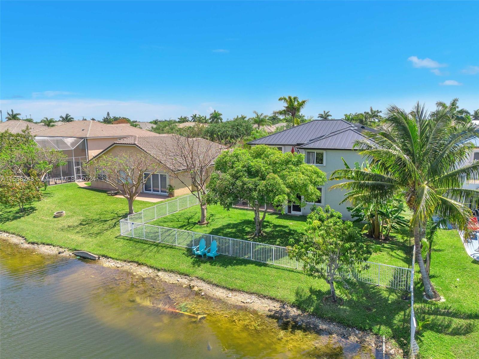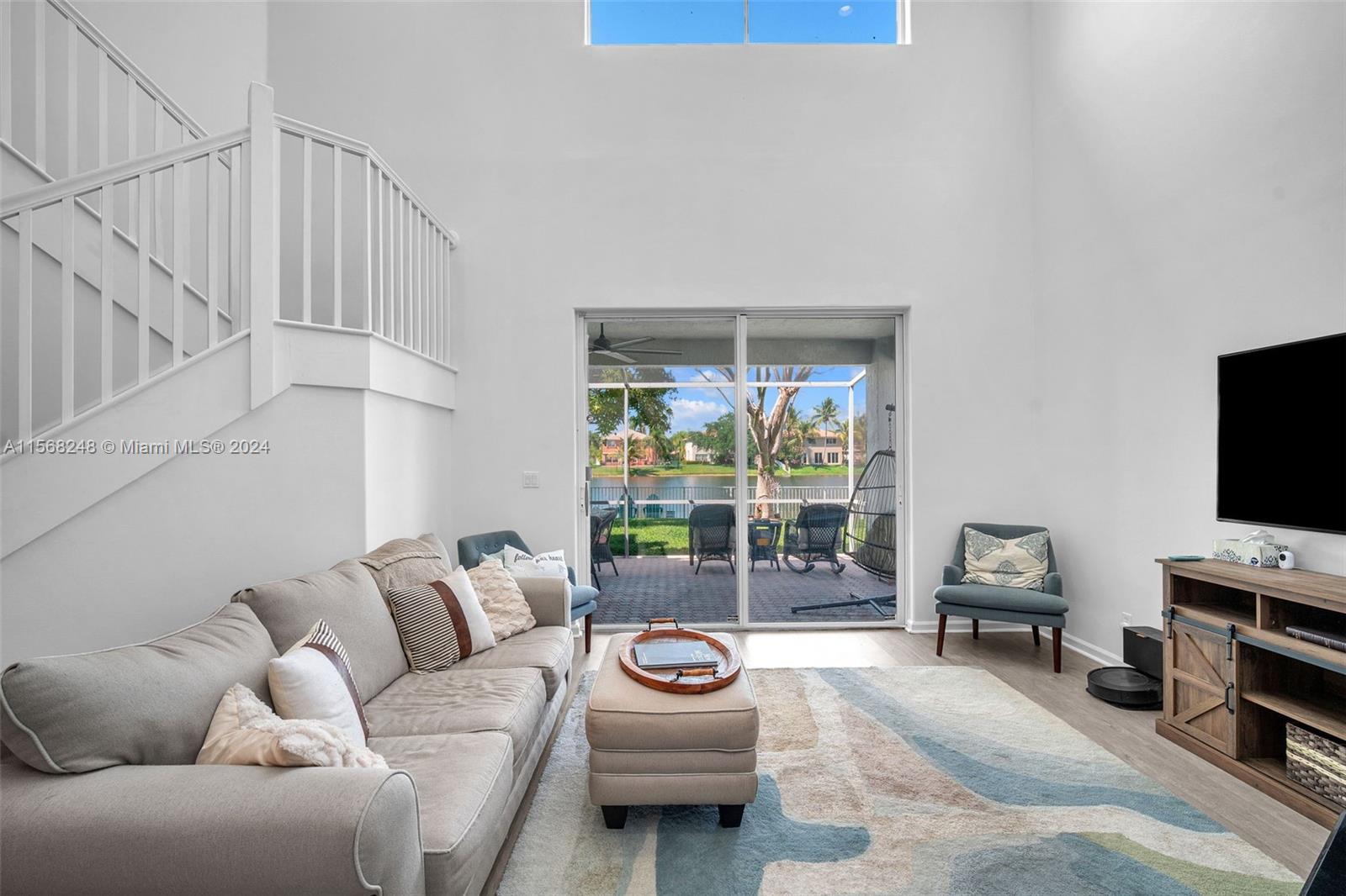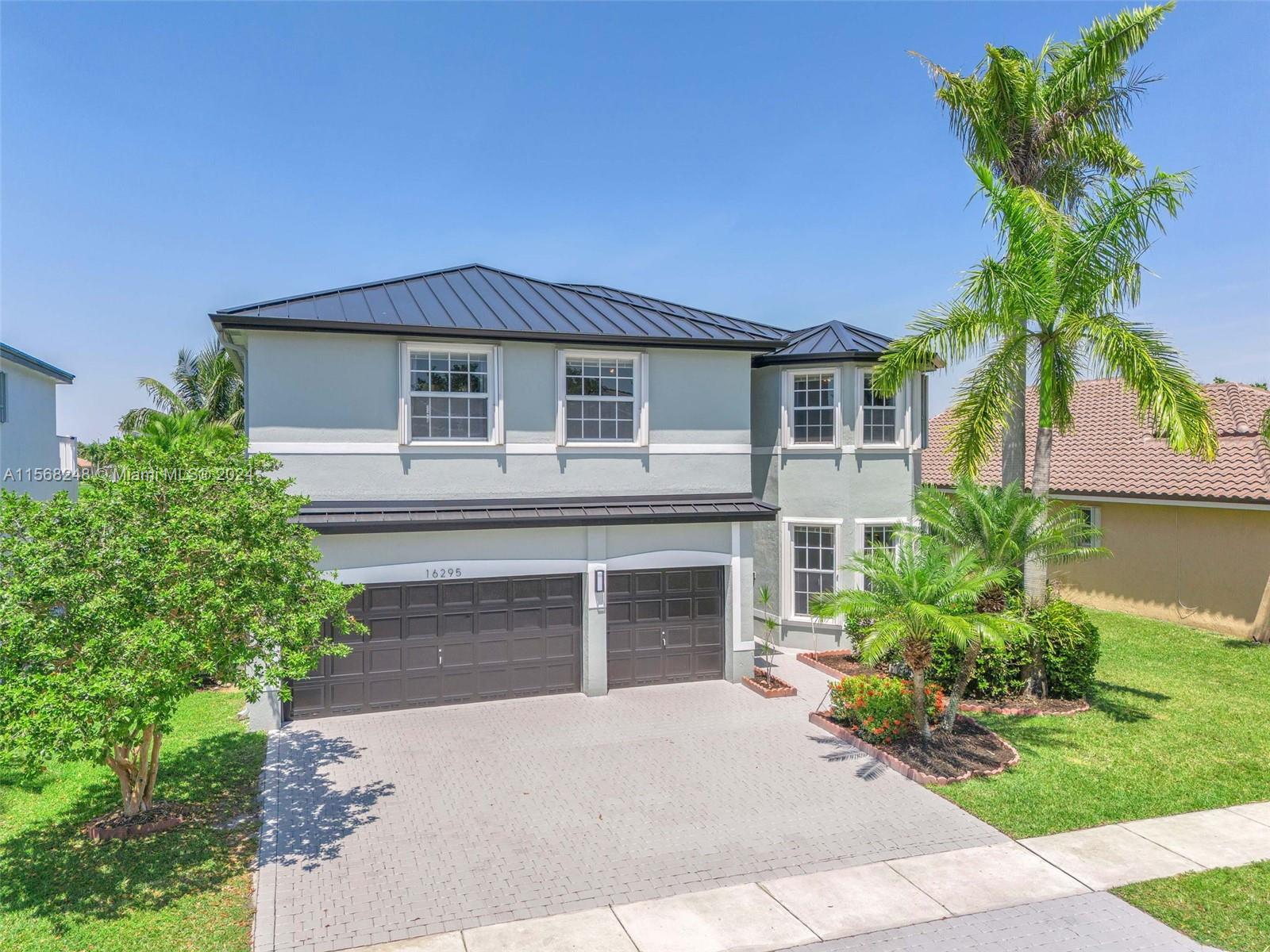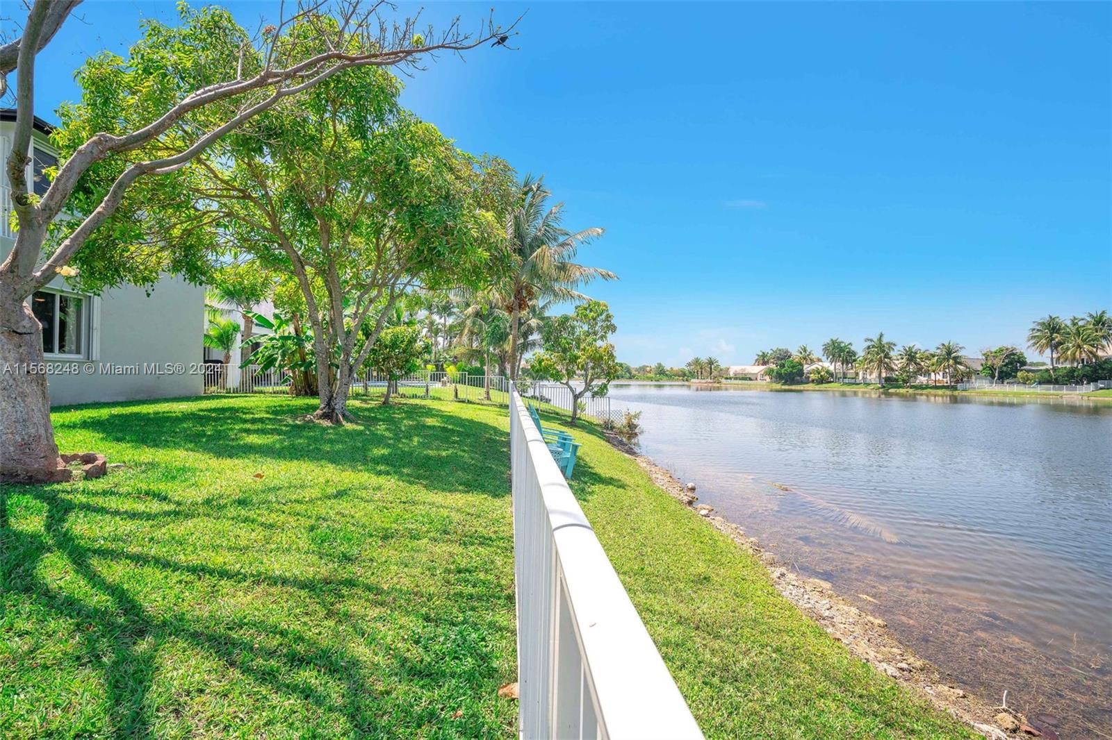 Welcome to your lakefront home. Your home has a brand-new metal roof installed in Jan of 2024! Entertain family and friends in your spacious gathering areas and impress with the soaring 19' living room ceiling. Enjoy relaxing views from the balcony off the primary bedroom and/or under the screened in patio. Snack on your own fruit with established banana, mango, and avocado trees in the oversized backyard with plenty of room for a pool. Additional features include full accordion shutters, 1-full bed/bath downstairs, oversized bedrooms, 2-zone AC units, brick paver driveway and patio, and laundry room with sink. Pembroke Shores is a private gated community located near I-75, parks, golf, restaurants, shopping, and schools.