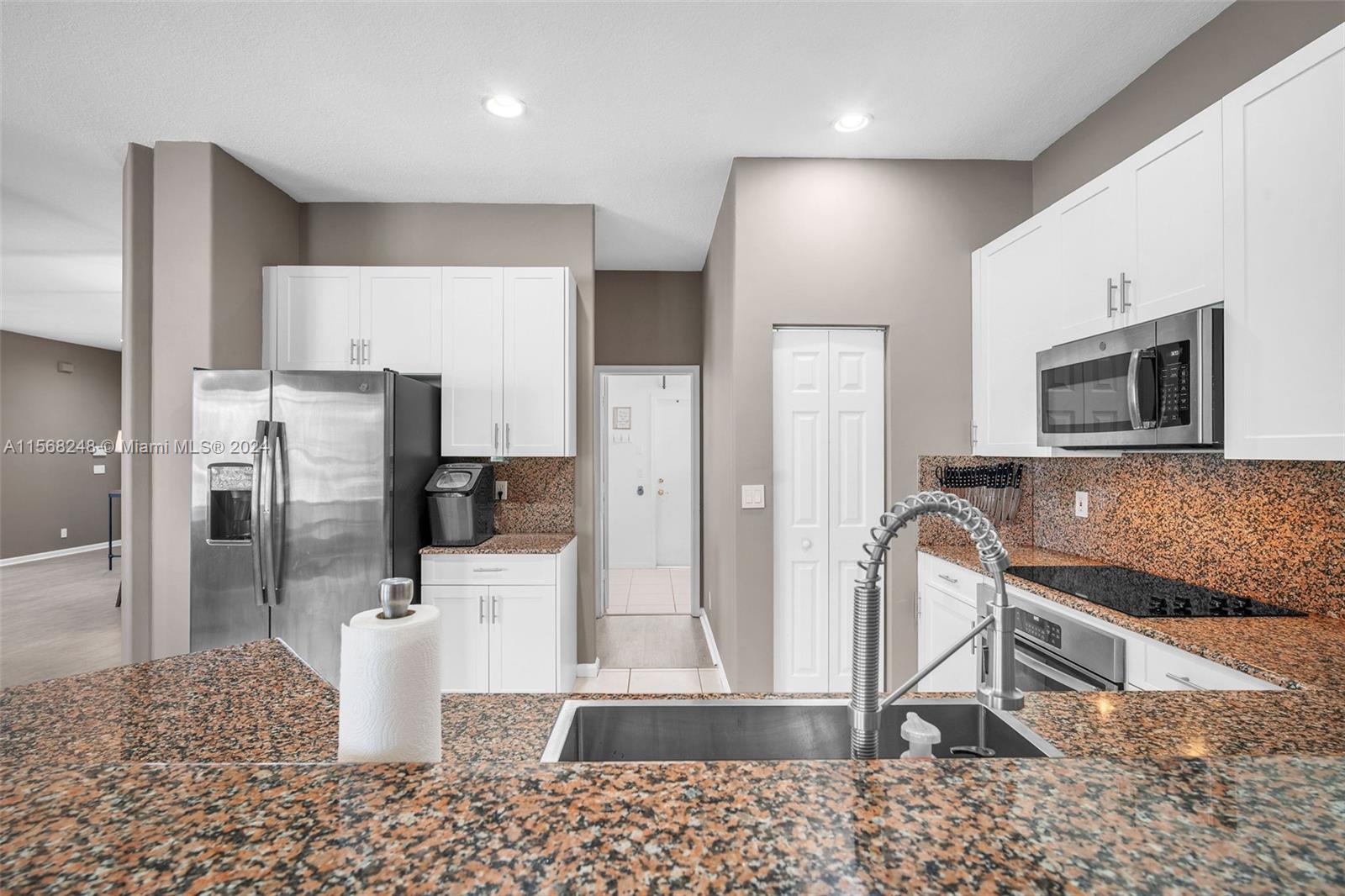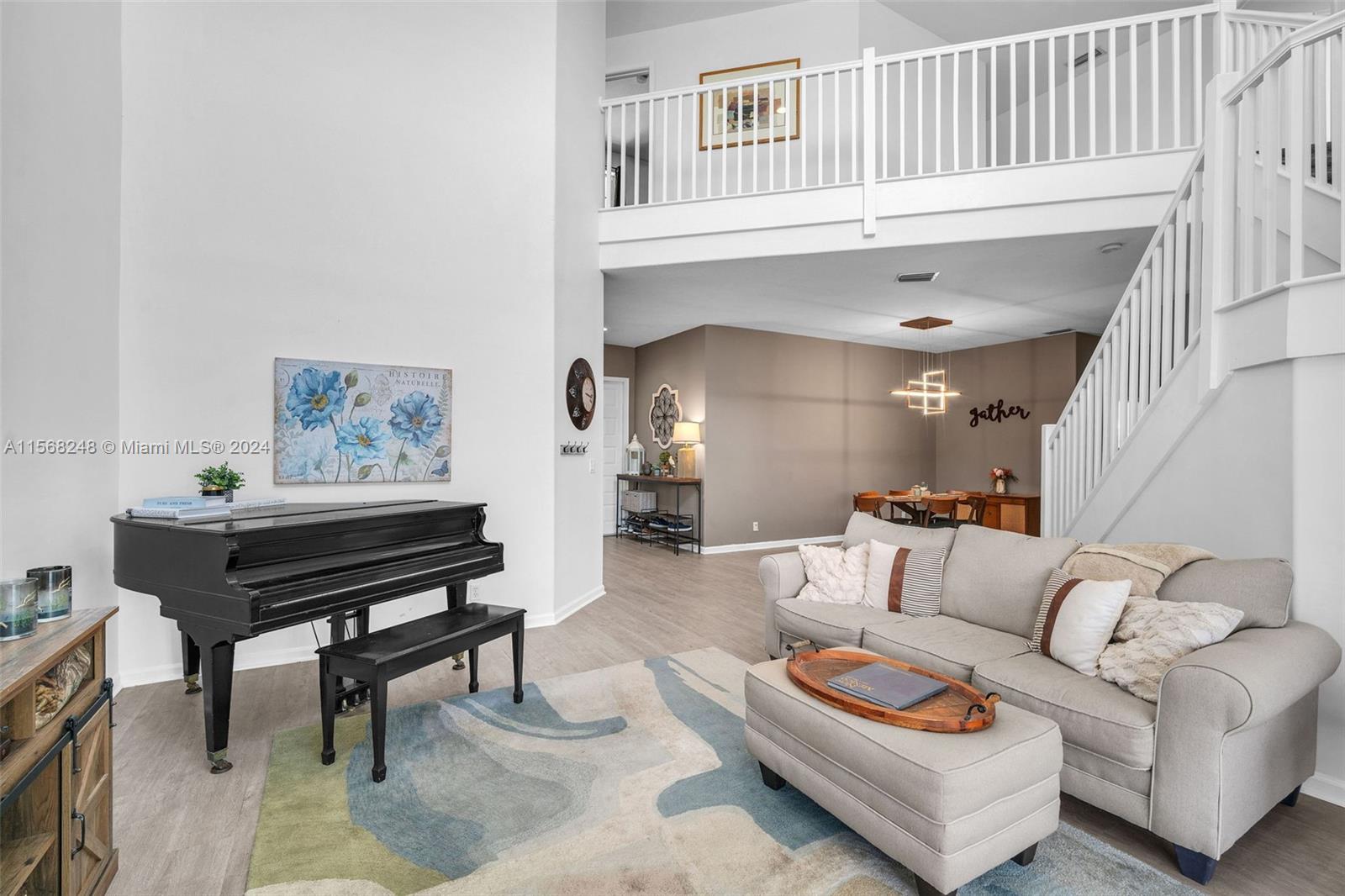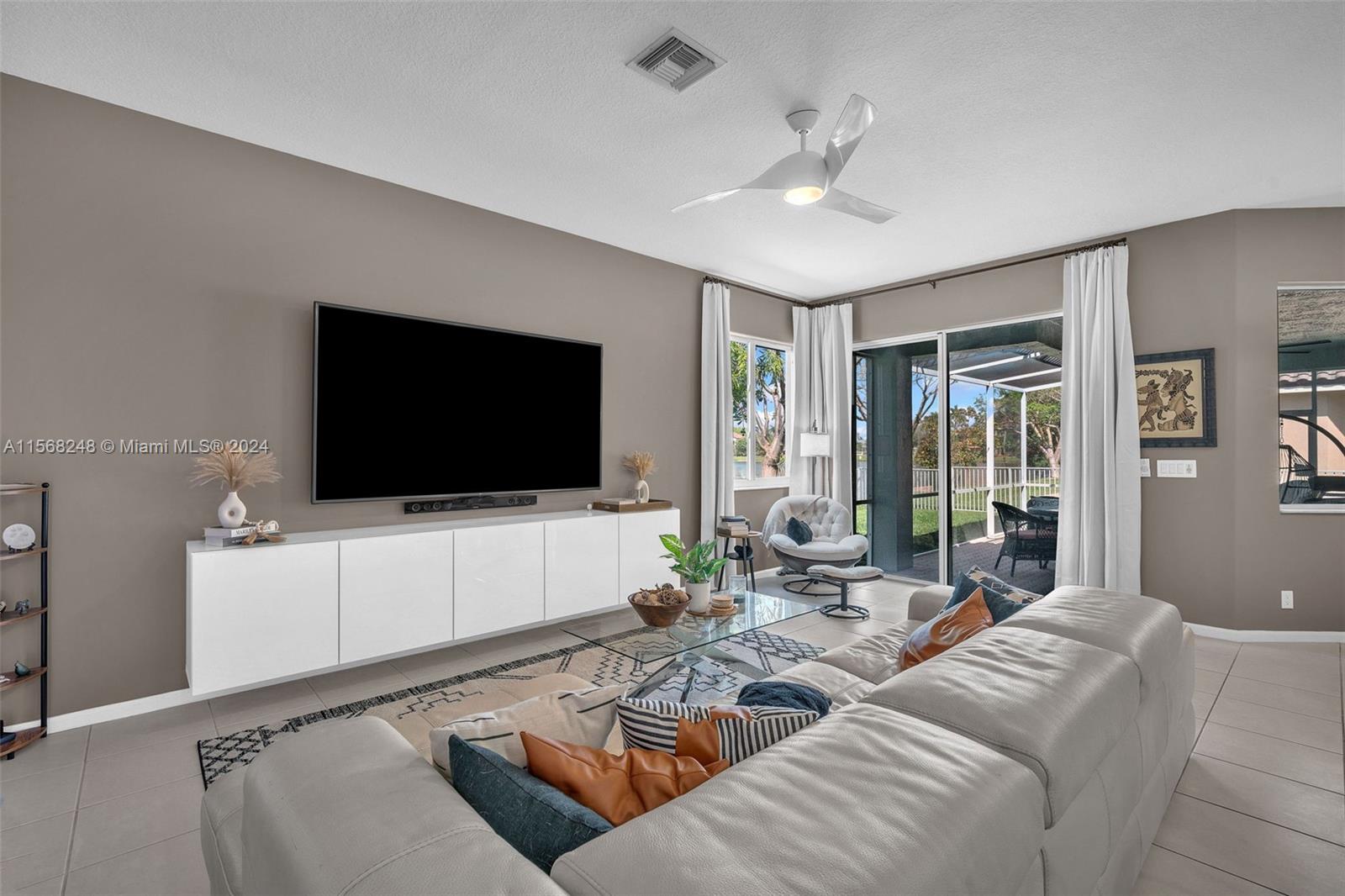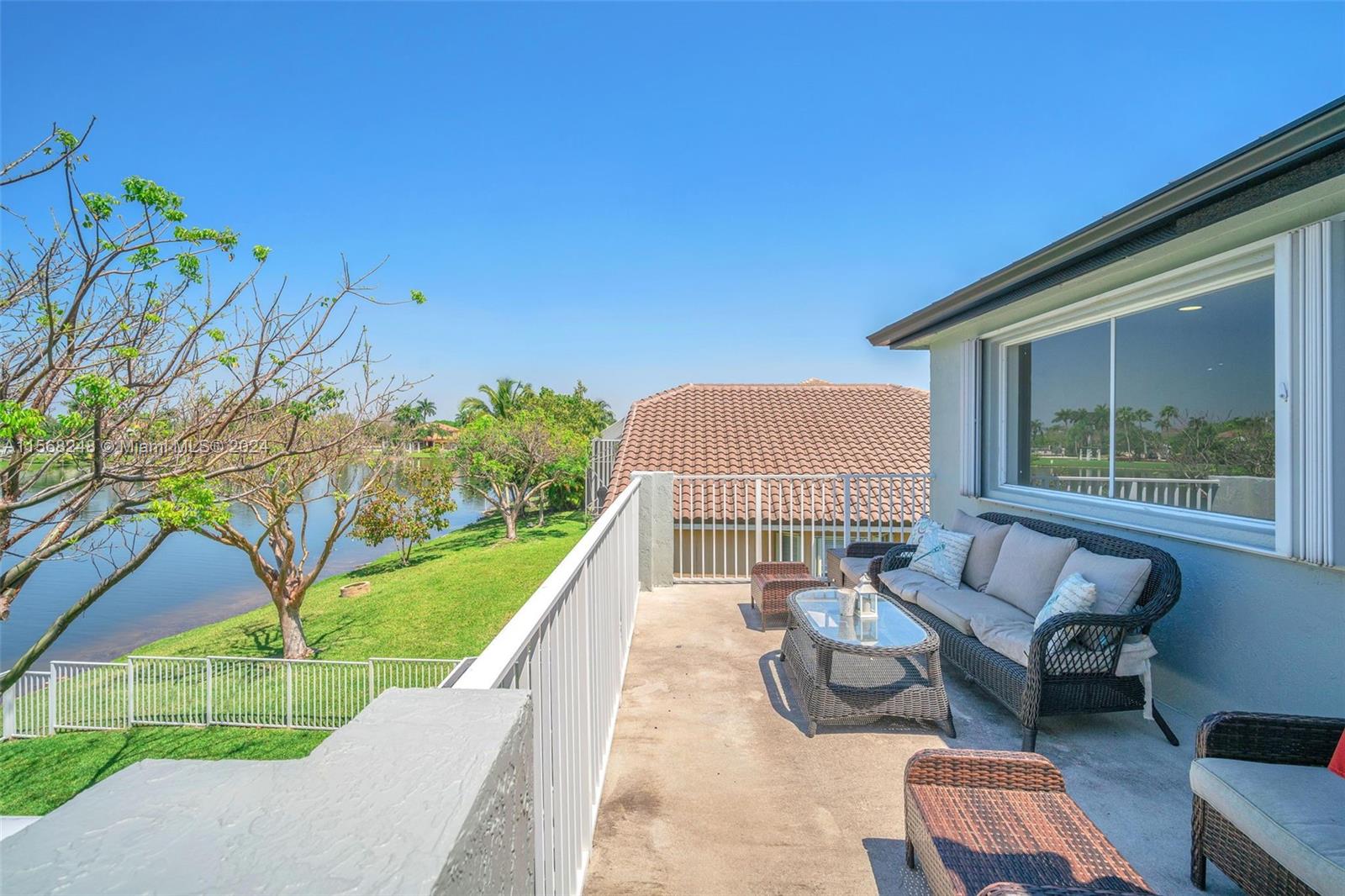 Welcome to your lakefront home. Your home has a brand-new metal roof installed in Jan of 2024! Entertain family and friends in your spacious gathering areas and impress with the soaring 19' living room ceiling. Enjoy relaxing views from the balcony off the primary bedroom and/or under the screened in patio. Snack on your own fruit with established banana, mango, and avocado trees in the oversized backyard with plenty of room for a pool. Additional features include full accordion shutters, 1-full bed/bath downstairs, oversized bedrooms, 2-zone AC units, brick paver driveway and patio, and laundry room with sink. Pembroke Shores is a private gated community located near I-75, parks, golf, restaurants, shopping, and schools.