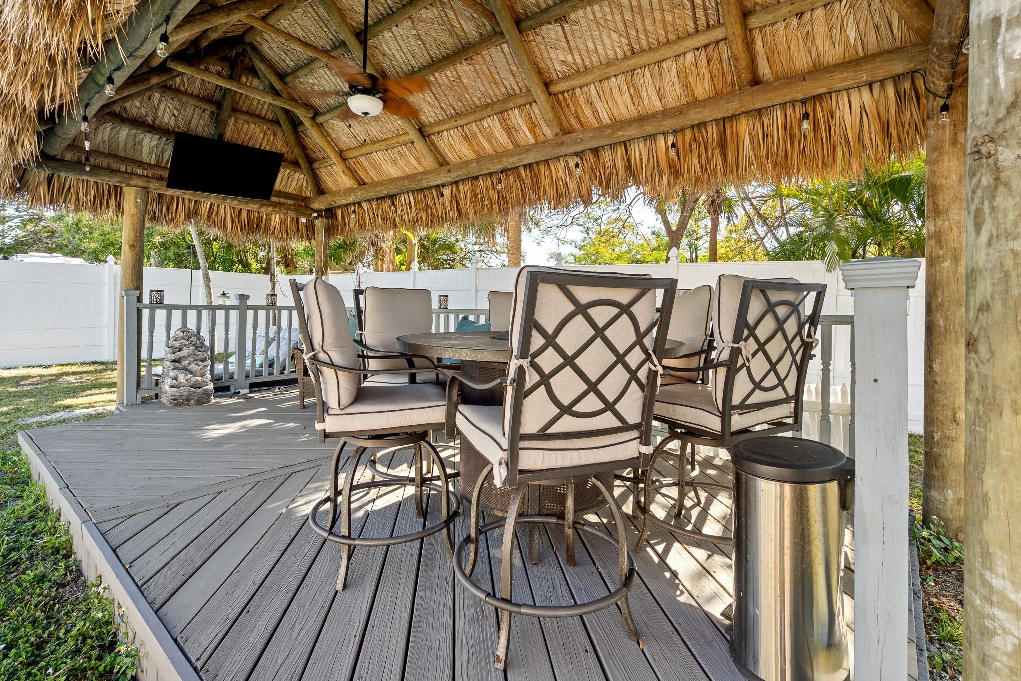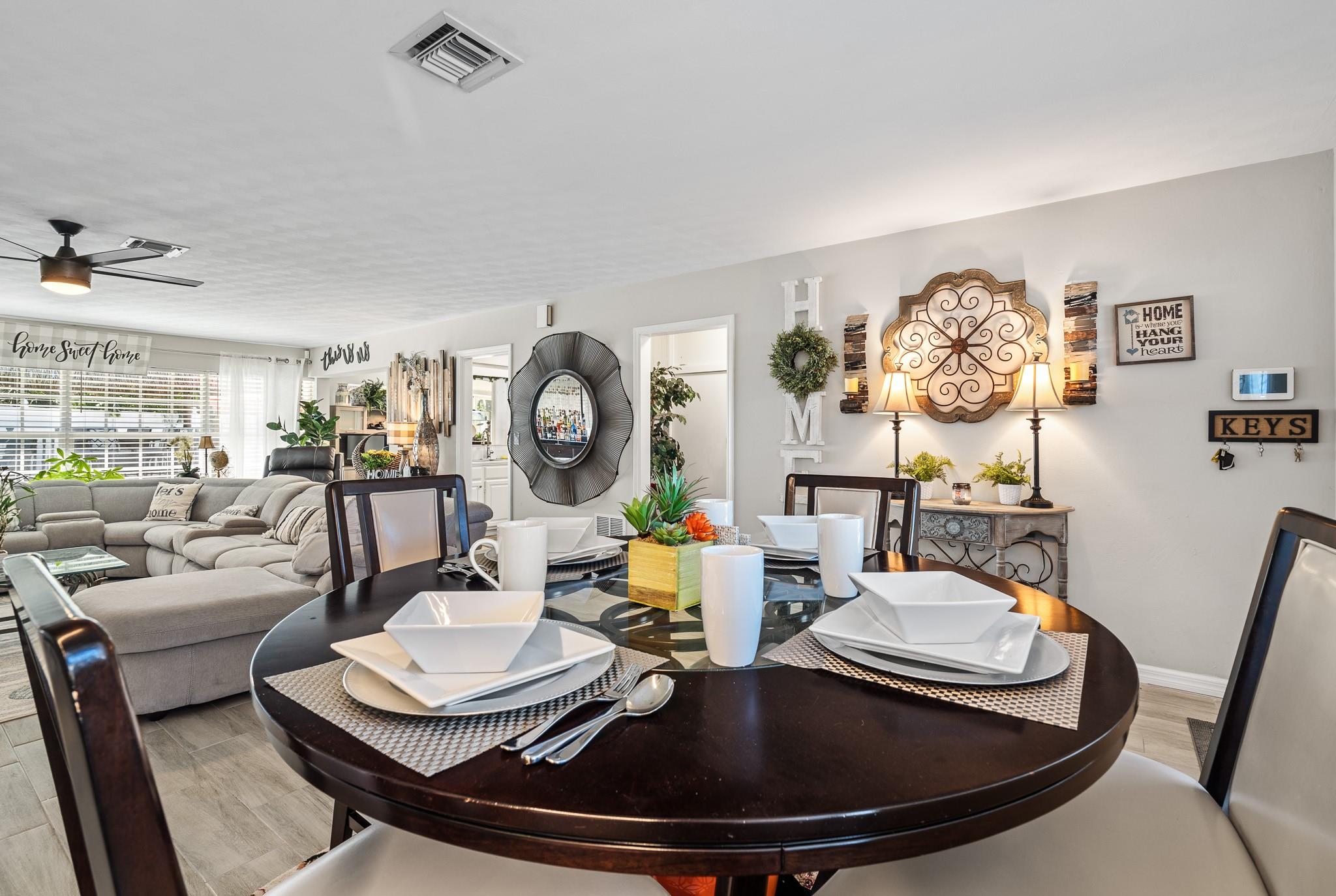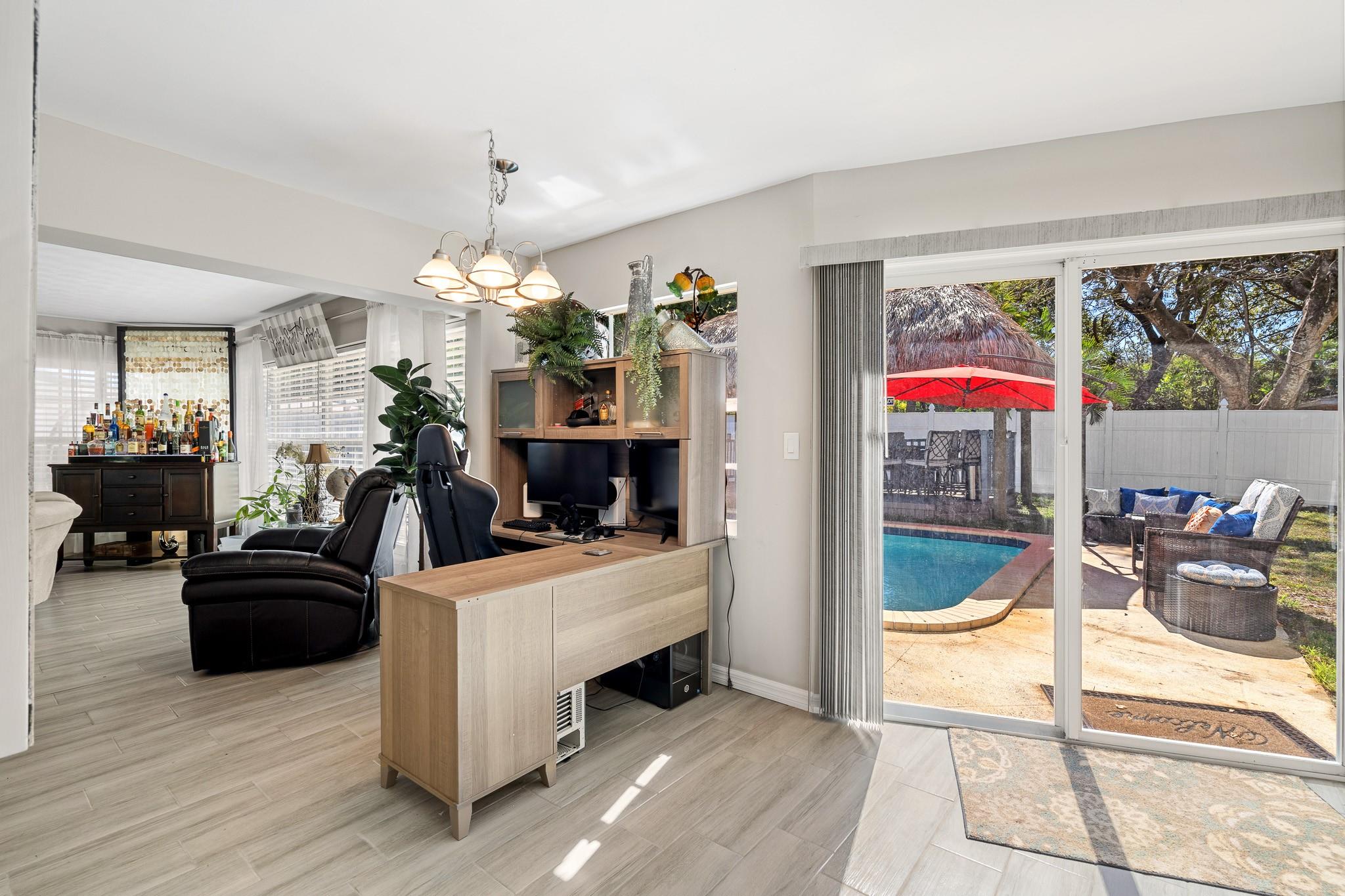 This 4 bed/2 bath pool home is conveniently located off Broward Blvd (ideal for I95 turnpike). The open concept layout flows seamlessly. Windows at the back overlook pool and deck - the perfect space for sipping cocktails on those long summer nights. Converted garage (with AC) can be used as office, TV/media room or as a 5th bedroom. Back yard overlooks a green space, so it's very private. The house has been updated with new blinds, ceramic tile floors, appliances, roof, AC, & hot water heater. Other improvements: fence replaced, gutters installed, master bath/vanity/sink, pool pump, ceiling fans in bedrooms (all 2023). Tiki hut w/power, 55-inch TV/ceiling fan, impact windows & doors, 50 amp outlet for camper van/boat, dryer converted from gas to electric (all 2024). Furniture neg.
