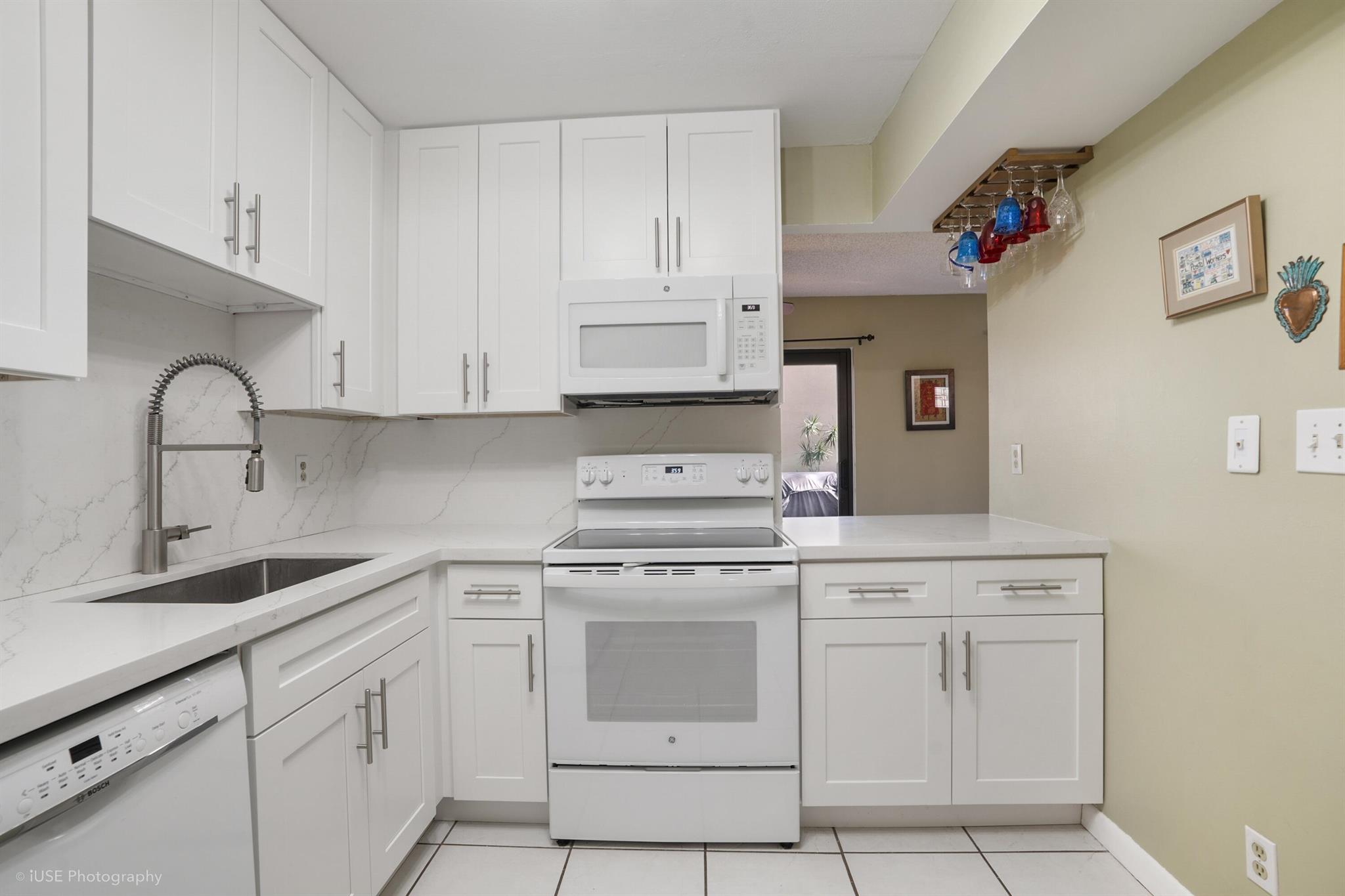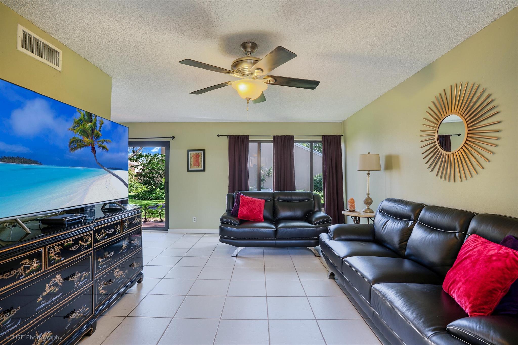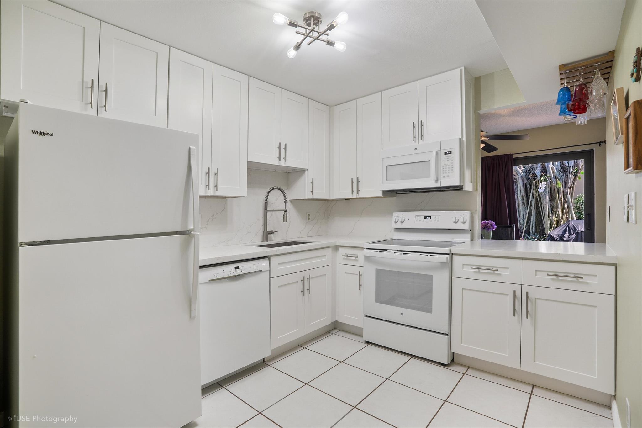 Pristine 3 bed 2 bath townhouse situated in desirable Boca Village. Newly renovated white kitchen with 42'' cabinets, soft close drawers, quartz counters and full backsplash. Spacious open-concept layout. First floor primary bedroom with vaulted ceilings. Full size washer and dryer. Large dining room overlooking the peaceful open patio area. Two generous size bedrooms upstairs with updated bathroom, walk-in closet, and extra storage room. Brand New roof 2024. Complete Hurricane Impact Windows and Doors. Large AC unit less than 5yrs old. Direct upfront parking space. All ages community with Clubhouse, Pool, and Tennis. Investor friendly, no rental waiting period. Great location near Florida Atlantic University (FAU), Town Center Mall, WholeFoods, Mizner Park, Boca's Best dining, and I-95.