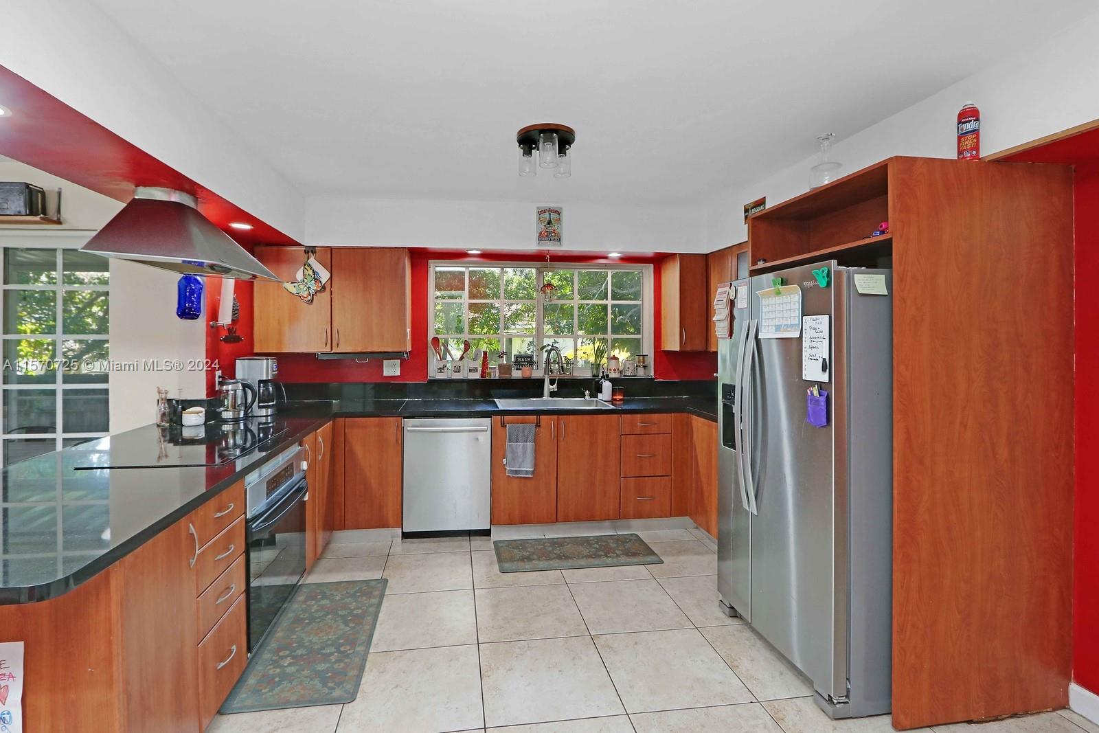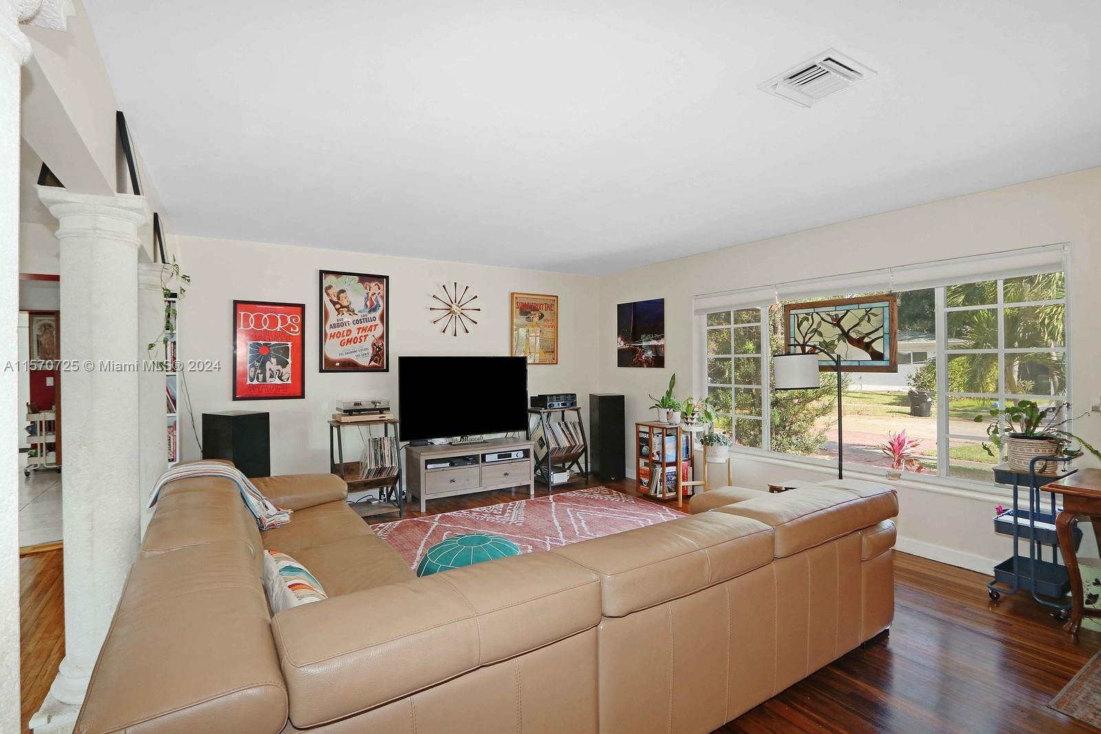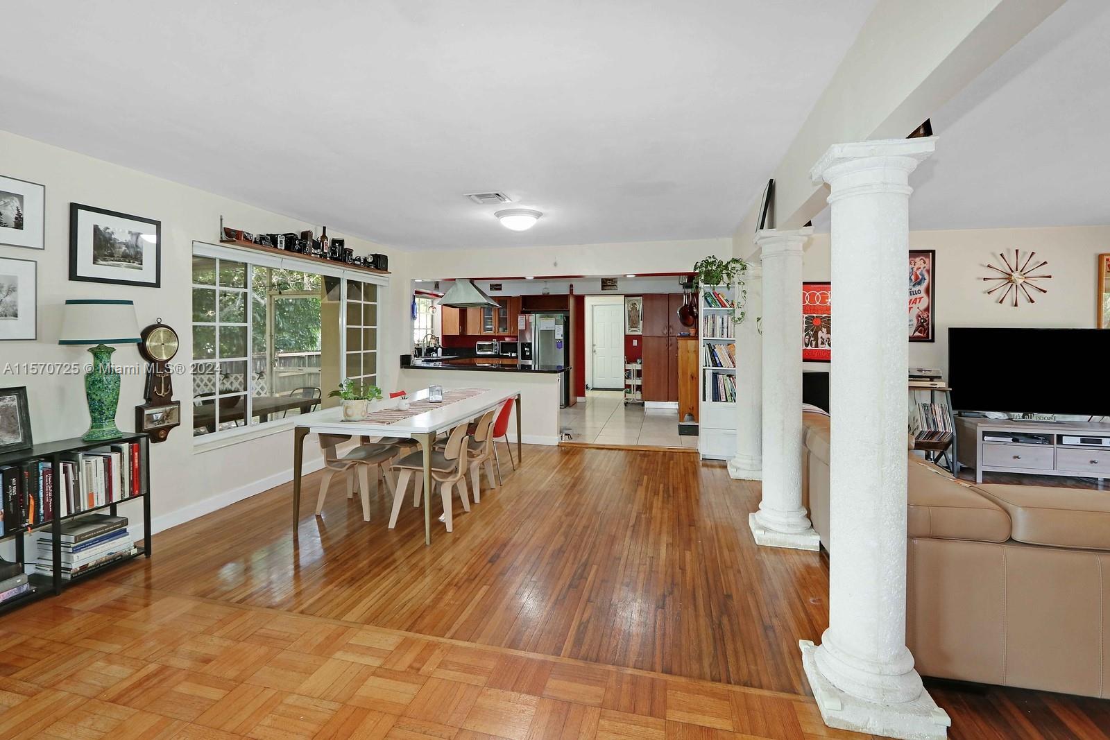 Grand single family boasting spacious open floor plan with covered patio leading to a private, oversize lot perfect for an inground pool! Home offers impact rated windows and doors, wood floors and updated vanities in both bathrooms. Newly installed air conditioner, new ductwork, eat in kitchen, corner lot, two bay garage. Situated close to Oleta State Park with easy proximity to shopping, restaurants, and the beach.