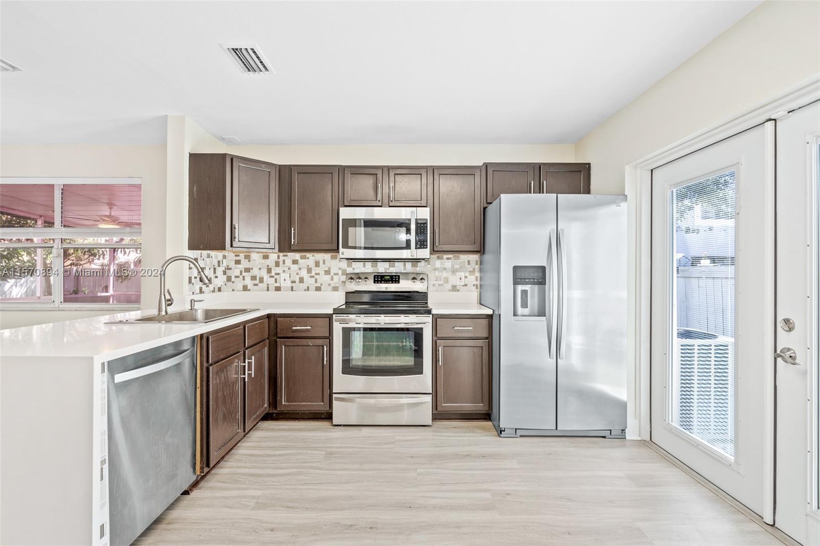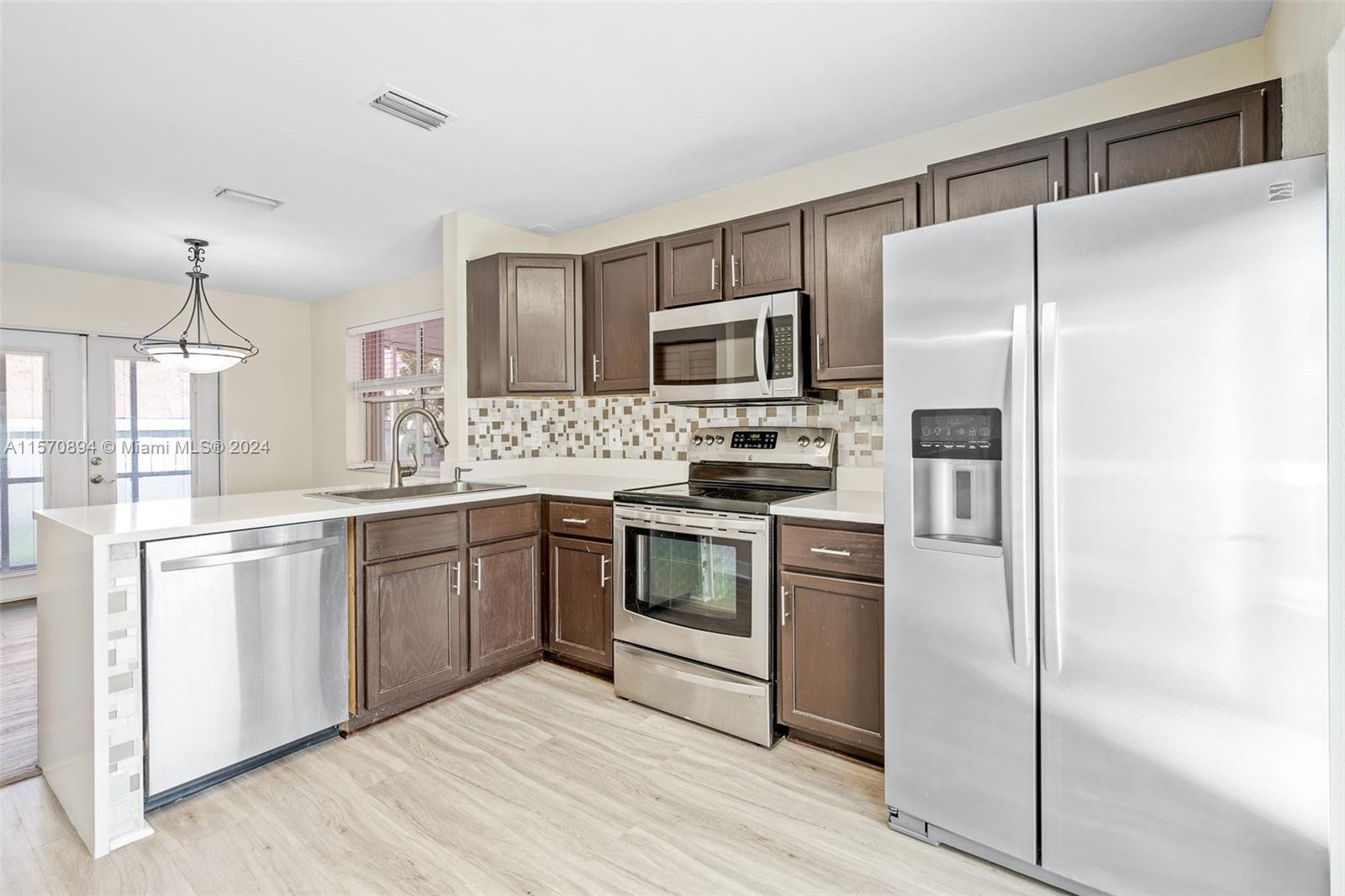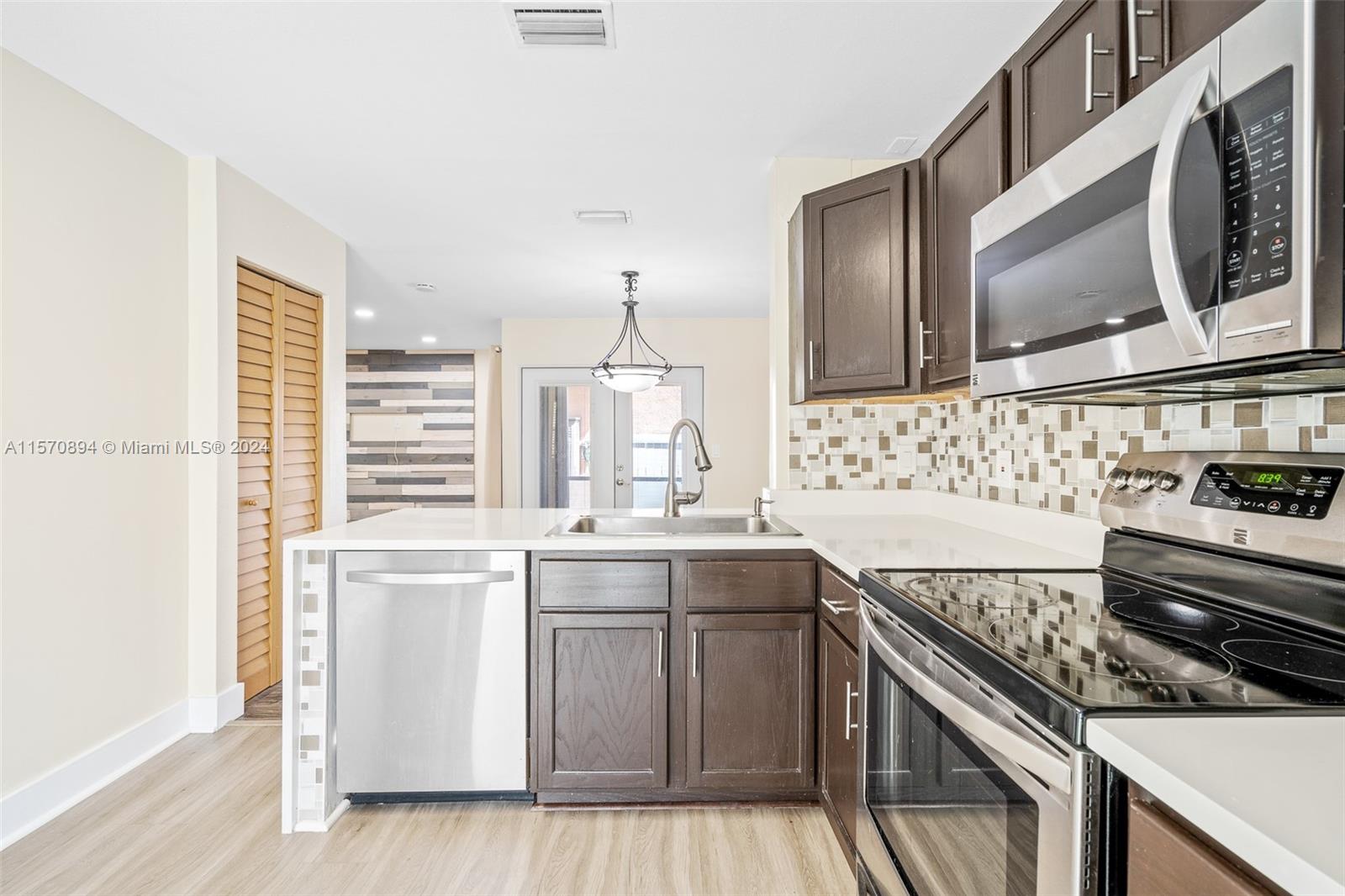 Indulge in modern luxury within this exquisite 3-bed, 2.5-bath residence, boasting a den/office, garage storage and rare ENCLOSED PATIO! NEW ROOF, AC, WATER HEATER. Revel in the array of upgrades, from waterproof laminate flooring to scratch-resistant finishes on the second floor. The kitchen is a focal point with its stainless steel appliances and quartz countertops, seamlessly blending with the updated bathrooms. 2 driveway parking spots and ample guest parking! Outside, the fenced backyard adorned with fruit trees invites outdoor relaxation. Nestled in a secure community, this home embodies both comfort & style. Conveniently situated near Pembroke Lakes Mall, CB Smith Park, Memorial Hospital, I-75, accessibility to amenities is unparalleled. Don't miss out on this turnkey gem!