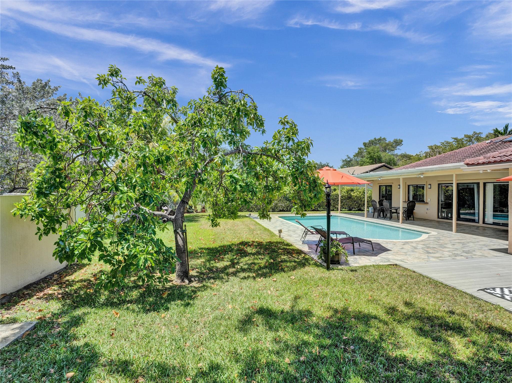 Motivated Seller has reduced the price! Beautifully updated with leveled flooring, (no step-down) updated kitchen cabinets, new countertops, new electric box wiring, replaced plumbing pipes. New exterior paint, new vanity in guest bath. Thermal fan in hallway, wired generator, solar water heater BRAND NEW A/C and refrigerator!! Come see this lovely pool home with circular driveway, hurricane rated decorative entry doors, impact windows. Sliders have panels. Vaulted ceilings. Big kitchen with tons of storage overlooks open pool and covered outdoor sitting area. Flat roof installed 2019. 3 patios make the most of outdoor living! Appliances new within the last few years -AND American Home Shield warranty free to buyer! You'll fall in love with this gorgeous, well maintained home.
