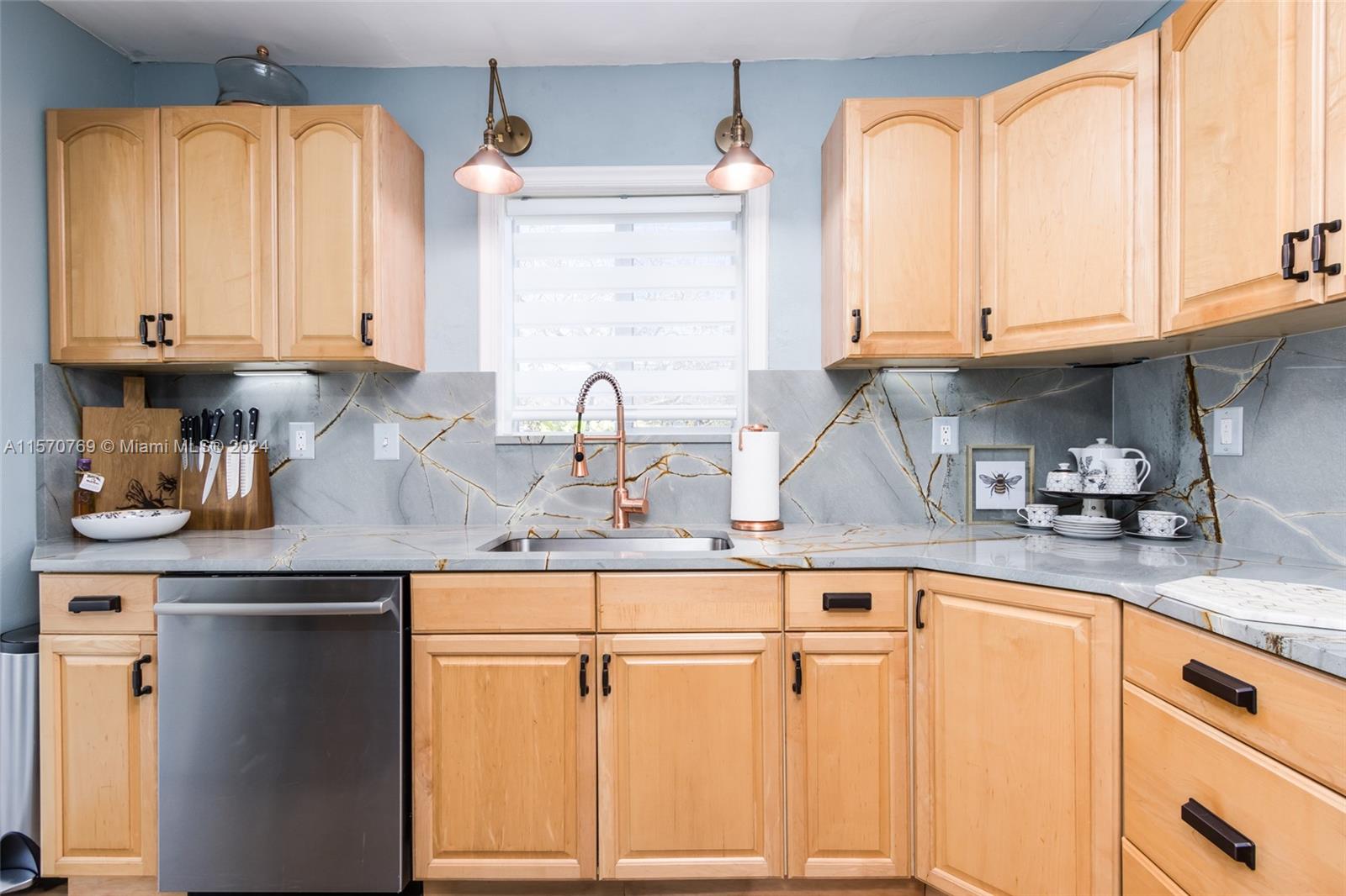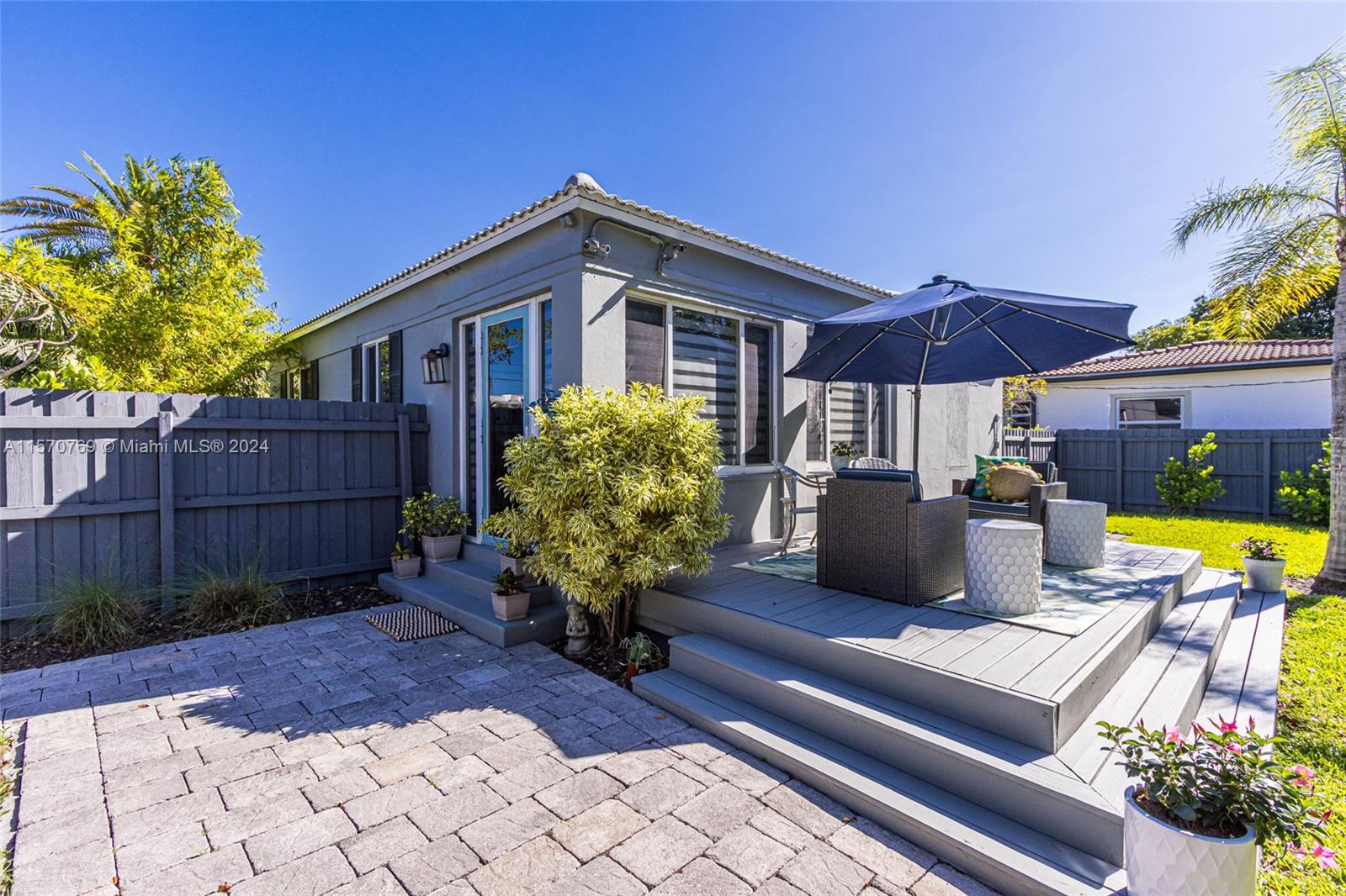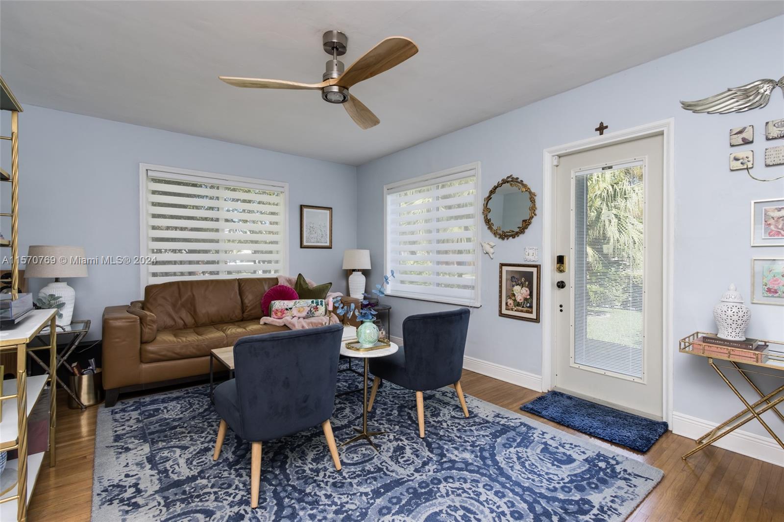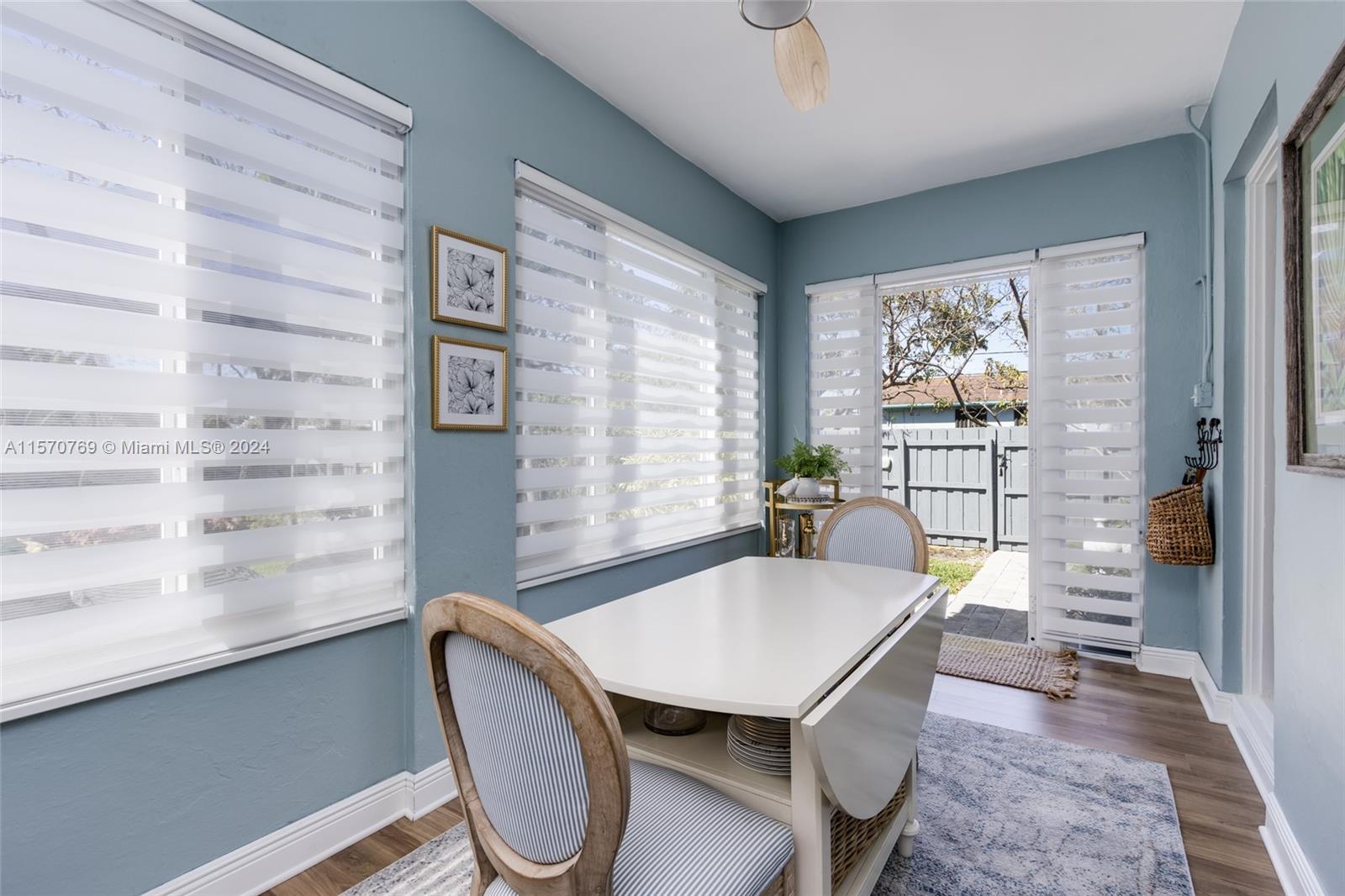 Step into this charming 1956 residence that offers the perfect blend of comfort, style, & convenience! This home is a true gem, with an abundance of natural lighting & original wood floors in the living room, dining room, and both bedrooms. An enclosed private driveway and a spacious fenced-in backyard, you can enjoy the Florida sunshine in peace & privacy. The gallery-styled kitchen is newly updated, featuring a unique polished quartzite countertop & matching backsplash, all new appliances. The stunning copper lighting over the newly installed sink & faucet set adds a touch of elegance. In addition to the polished wood floors, the living room features a wall of shelving that includes a beautiful faux fireplace that is a must-see. This home is truly a dream come true!