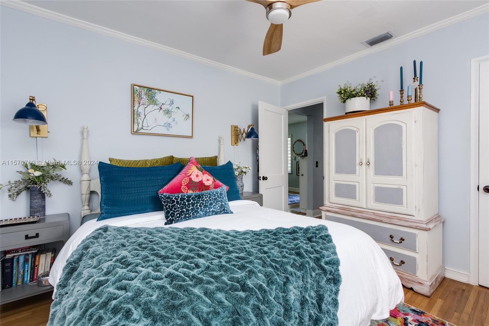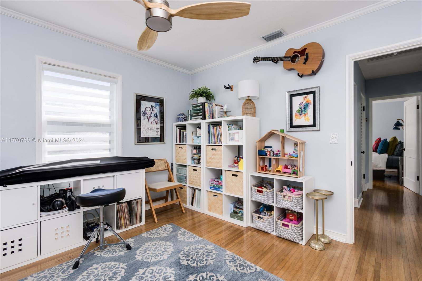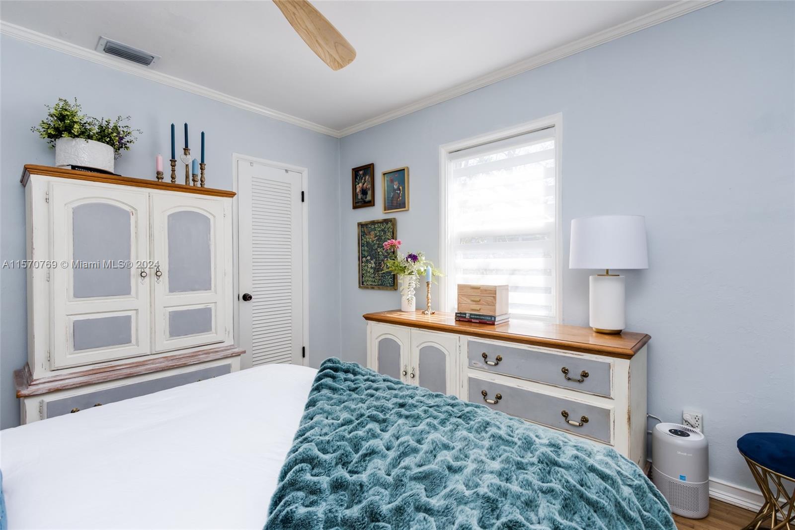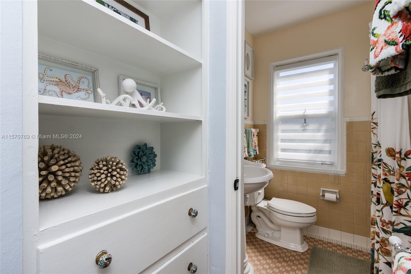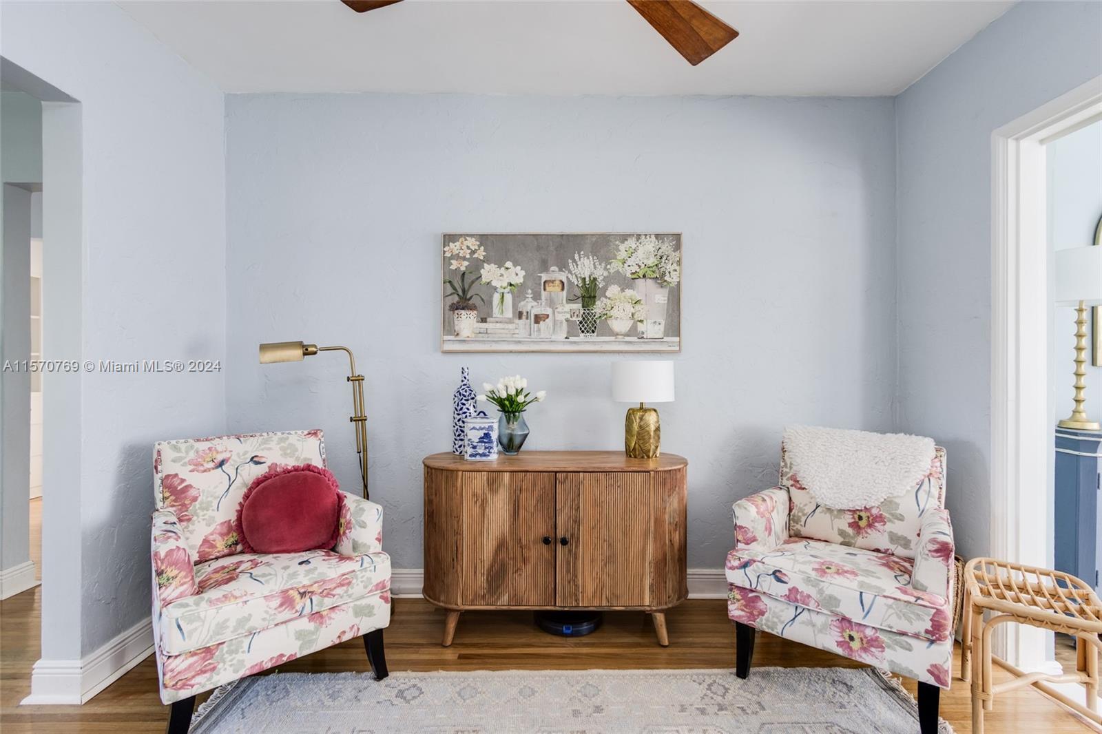 Step into this charming 1956 residence that offers the perfect blend of comfort, style, & convenience! This home is a true gem, with an abundance of natural lighting & original wood floors in the living room, dining room, and both bedrooms. An enclosed private driveway and a spacious fenced-in backyard, you can enjoy the Florida sunshine in peace & privacy. The gallery-styled kitchen is newly updated, featuring a unique polished quartzite countertop & matching backsplash, all new appliances. The stunning copper lighting over the newly installed sink & faucet set adds a touch of elegance. In addition to the polished wood floors, the living room features a wall of shelving that includes a beautiful faux fireplace that is a must-see. This home is truly a dream come true!