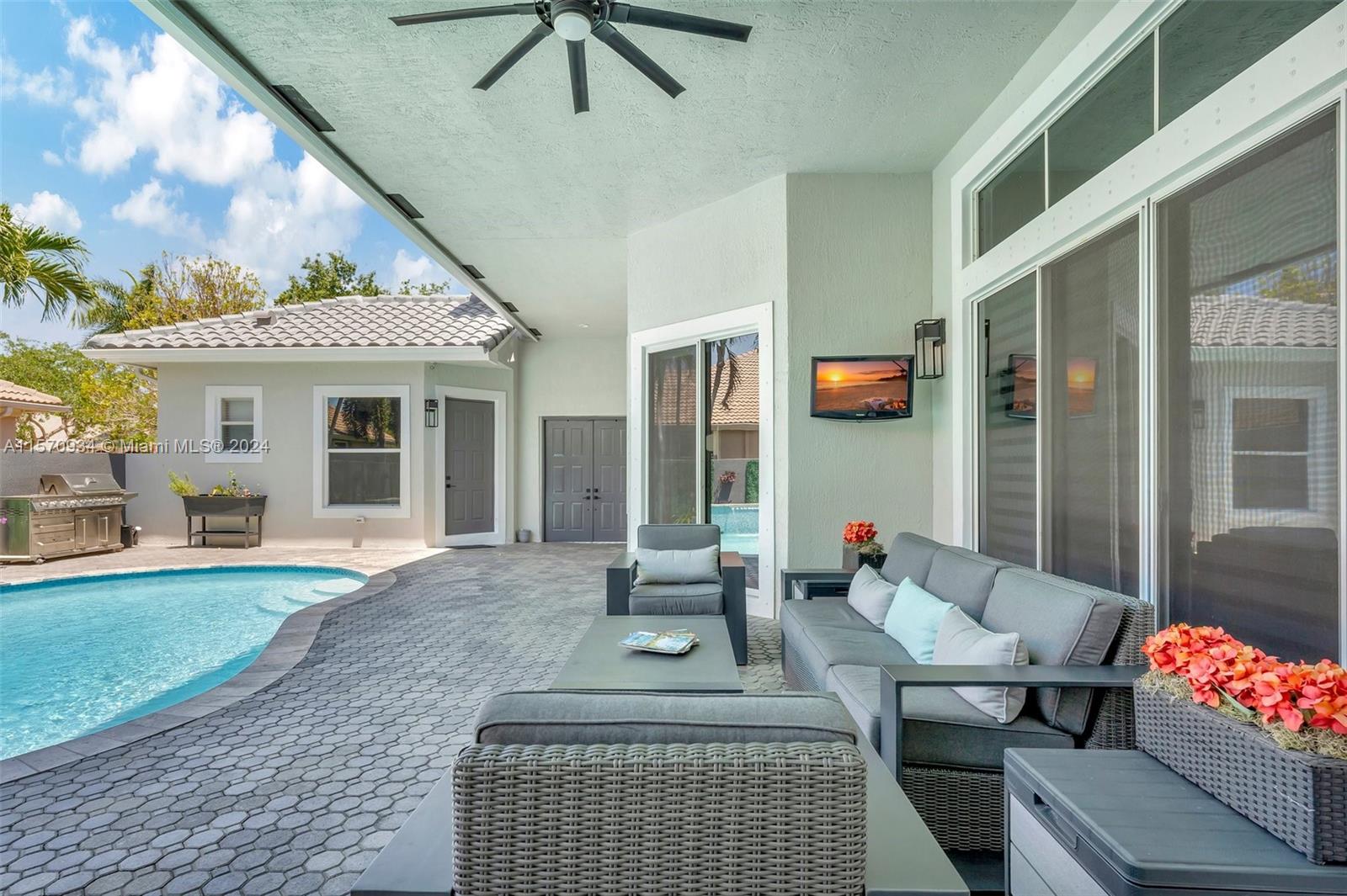 Brand NEW Roof 2024! Step into Highly Desirable Rarely Available floor plan. Enjoy your sparkling pool in your own private courtyard, detached In-Law Quarters. This Majestic 5 Bed, 4.5 baths, Waterfront property is Priced to Sell! Welcoming Soaring Ceilings and Oversized bedrooms with Private bathrooms, 2 remodeled to perfection Savor the serenity of waterfront living, complemented with Mahogany trees, New Silver Travertine patio, fenced ideal for children & dogs. Entertain in the Open Space Kitchen, Formal Dining Room, Breakfast nook, High-End LG Studio series SS appliances. Meticulous Owner upgraded the pool, new salt system & filter, New Exterior paint, new gutters, LED Lights Int/Ext & more Heron bay is known for its resort style amenities, clubhouses, fitness centers. A-rated schools!