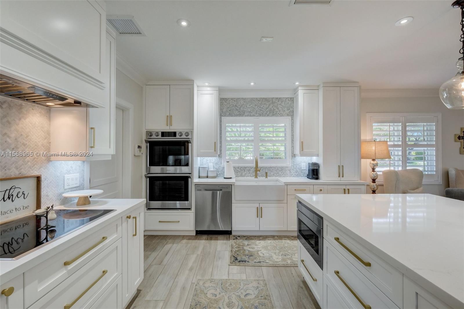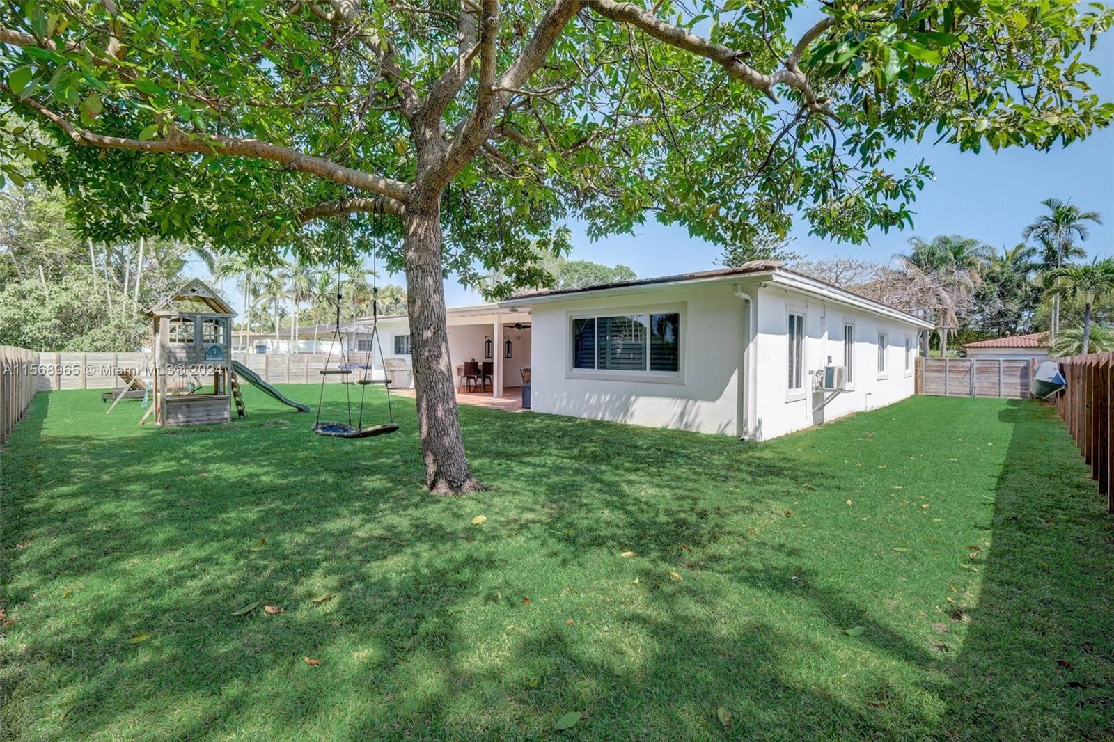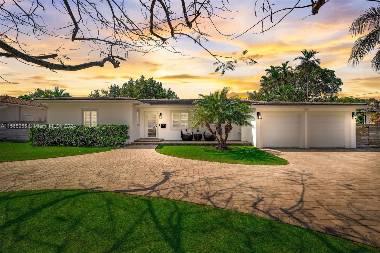 Welcome to YOUR forever home in the community of Miami Shores. This 3 bedroom & 2 1/2 bathroom Mid century modern house was completely renovated to perfection with high end finishes. It offers a great layout with a split floor plan. Open concept kitchen area & living room with an adjacent family room. Both rooms lead to a covered patio with a bar area to entertain family & friends. The almost 10,000 sf lot offers a nice backyard ready to add a pool. High impact doors and windows through out offer peace of mind and lots of natural light in all the rooms. A large two car garage complements the features this house offers. Amazing location on a quiet cul de sac. The backyard leads into the Miami Shores country club and swimming pool. Newer roof, AC unit and all electrical and plumbing updated.