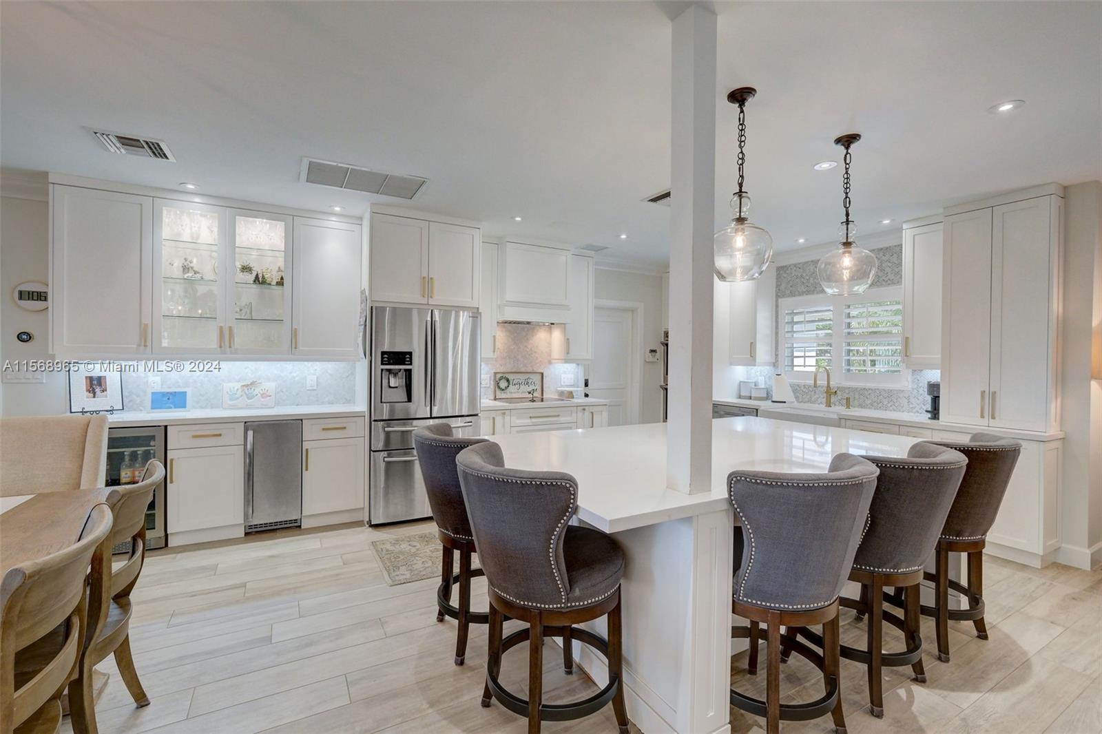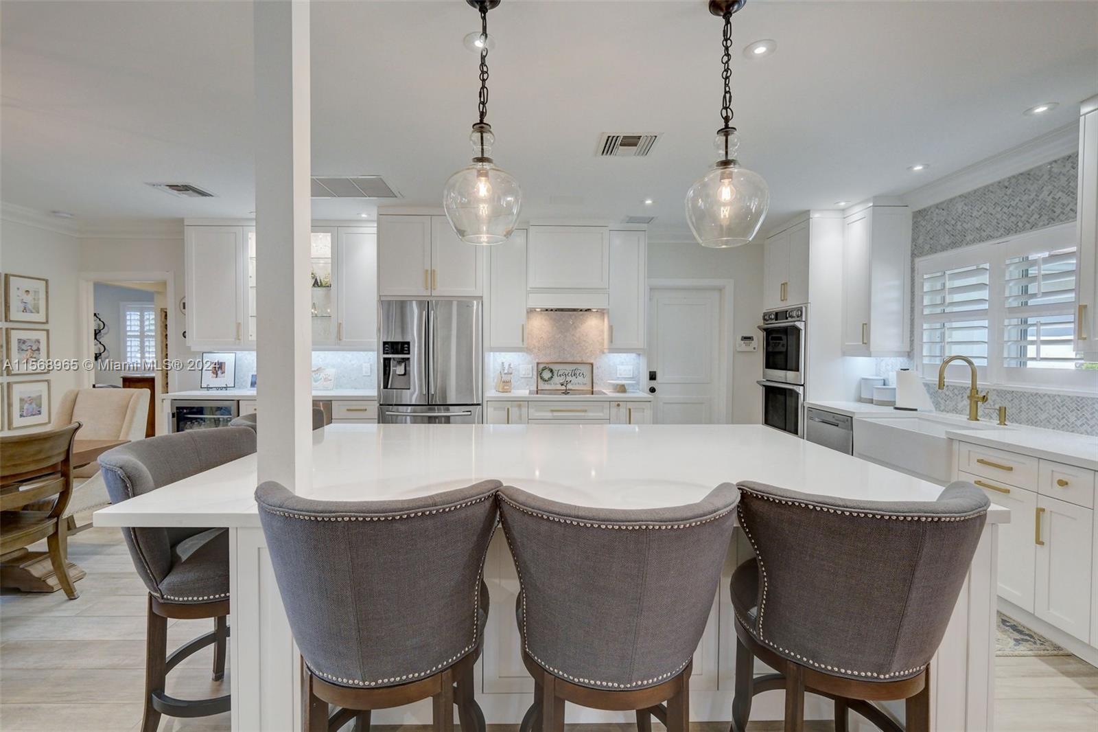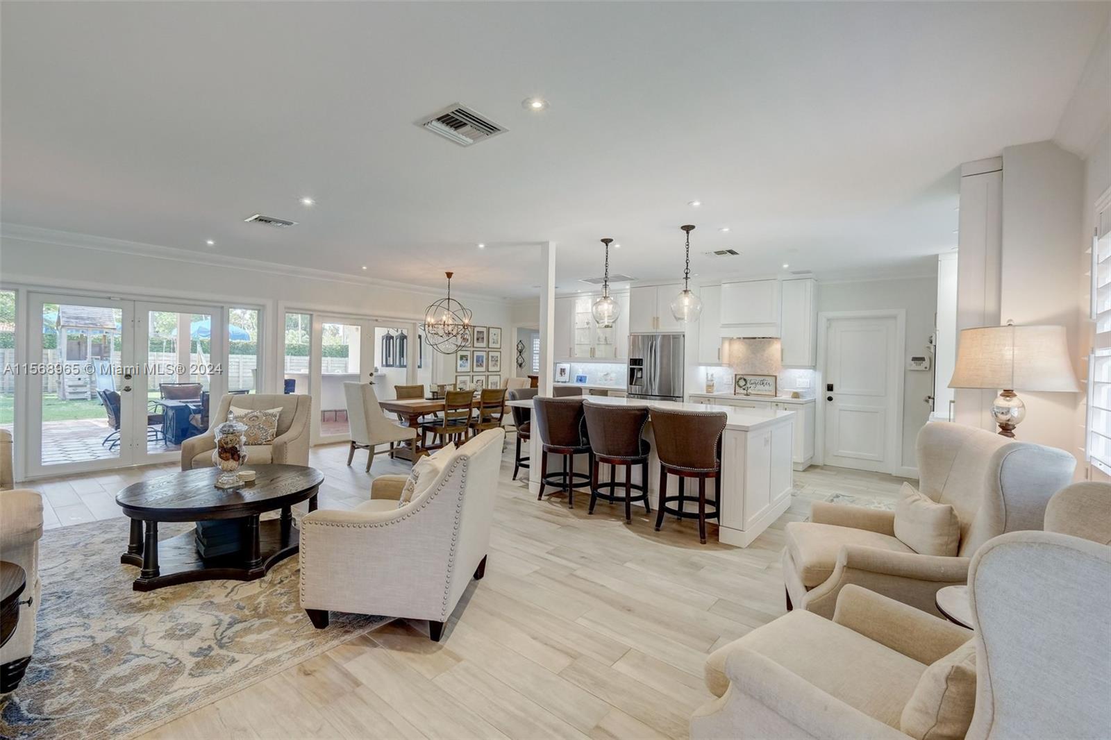 Welcome to YOUR forever home in the community of Miami Shores. This 3 bedroom & 2 1/2 bathroom Mid century modern house was completely renovated to perfection with high end finishes. It offers a great layout with a split floor plan. Open concept kitchen area & living room with an adjacent family room. Both rooms lead to a covered patio with a bar area to entertain family & friends. The almost 10,000 sf lot offers a nice backyard ready to add a pool. High impact doors and windows through out offer peace of mind and lots of natural light in all the rooms. A large two car garage complements the features this house offers. Amazing location on a quiet cul de sac. The backyard leads into the Miami Shores country club and swimming pool. Newer roof, AC unit and all electrical and plumbing updated.