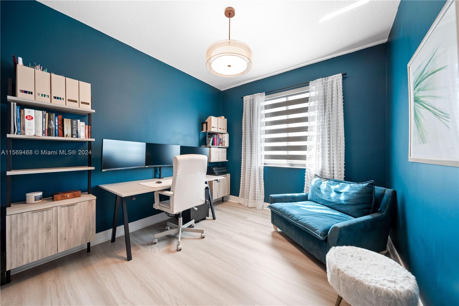 Introducing a stunning 3-bedroom, 2.5-bathroom townhome with a 2-car garage nestled in Urbana at Downtown Doral. This smart home boasts an open floor plan, impact windows/doors, fresh paint, & new LVP flooring on the second level. The kitchen features stainless steel appliances, soft-close cabinets, and quartz countertops. Upstairs, the washer/dryer is conveniently situated next to the loft. The spacious master bedroom includes a generous closet and balcony, while the master bath offers dual sinks and a stand-in shower. Enjoy the front private porch with synthetic turf yard. The community amenities include a resort-style pool, gym, clubhouse, dog park, playgrounds, and more. Ideally located just minutes from downtown Doral, City Place, major highways, and more. This property is a true gem!