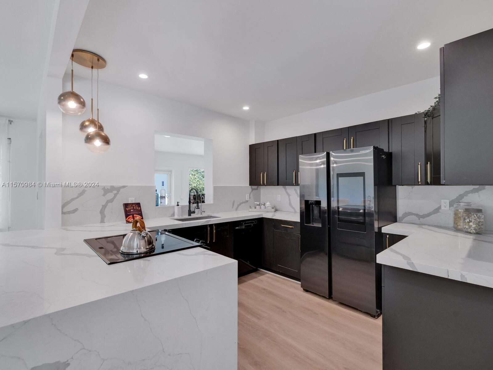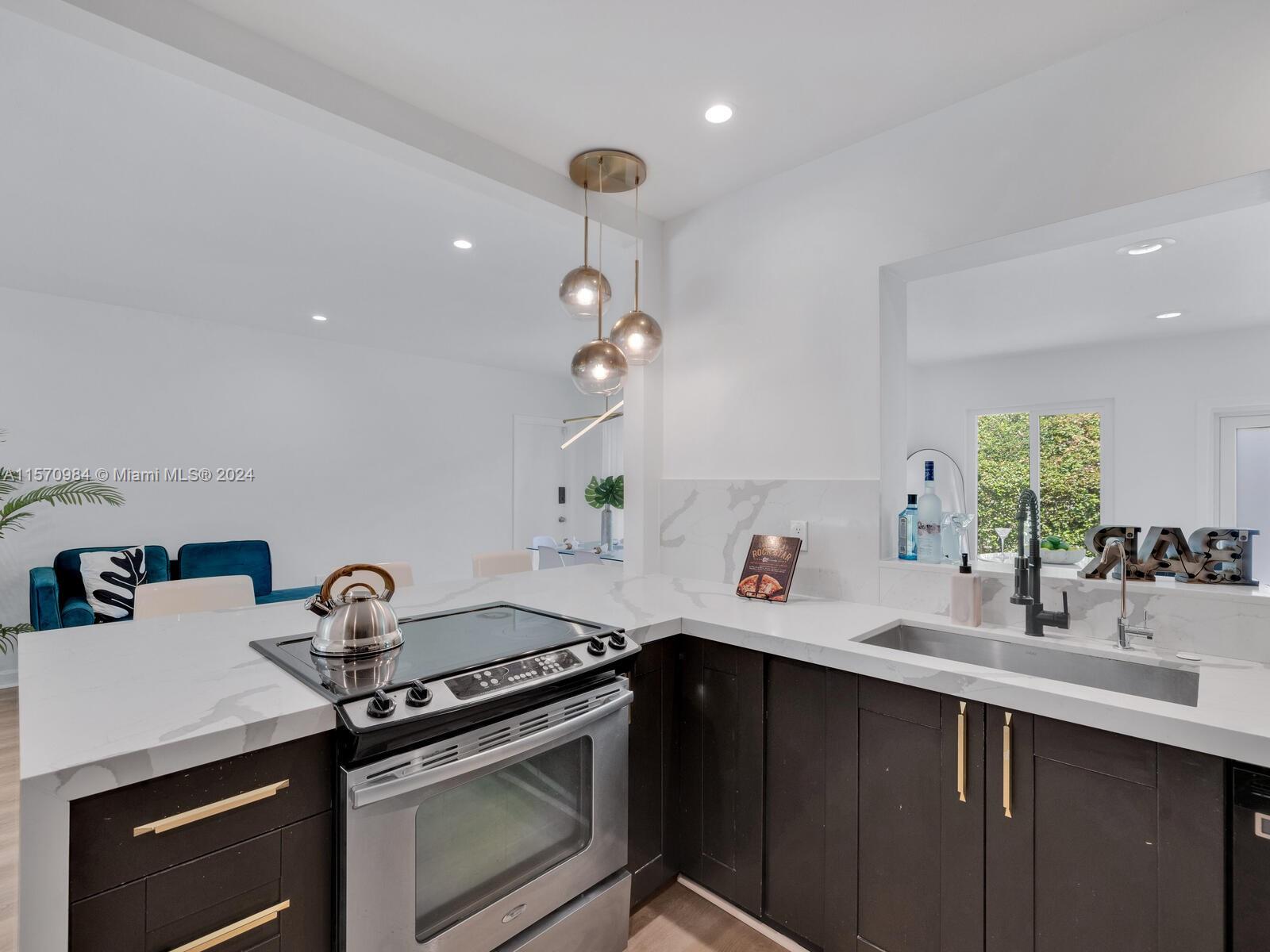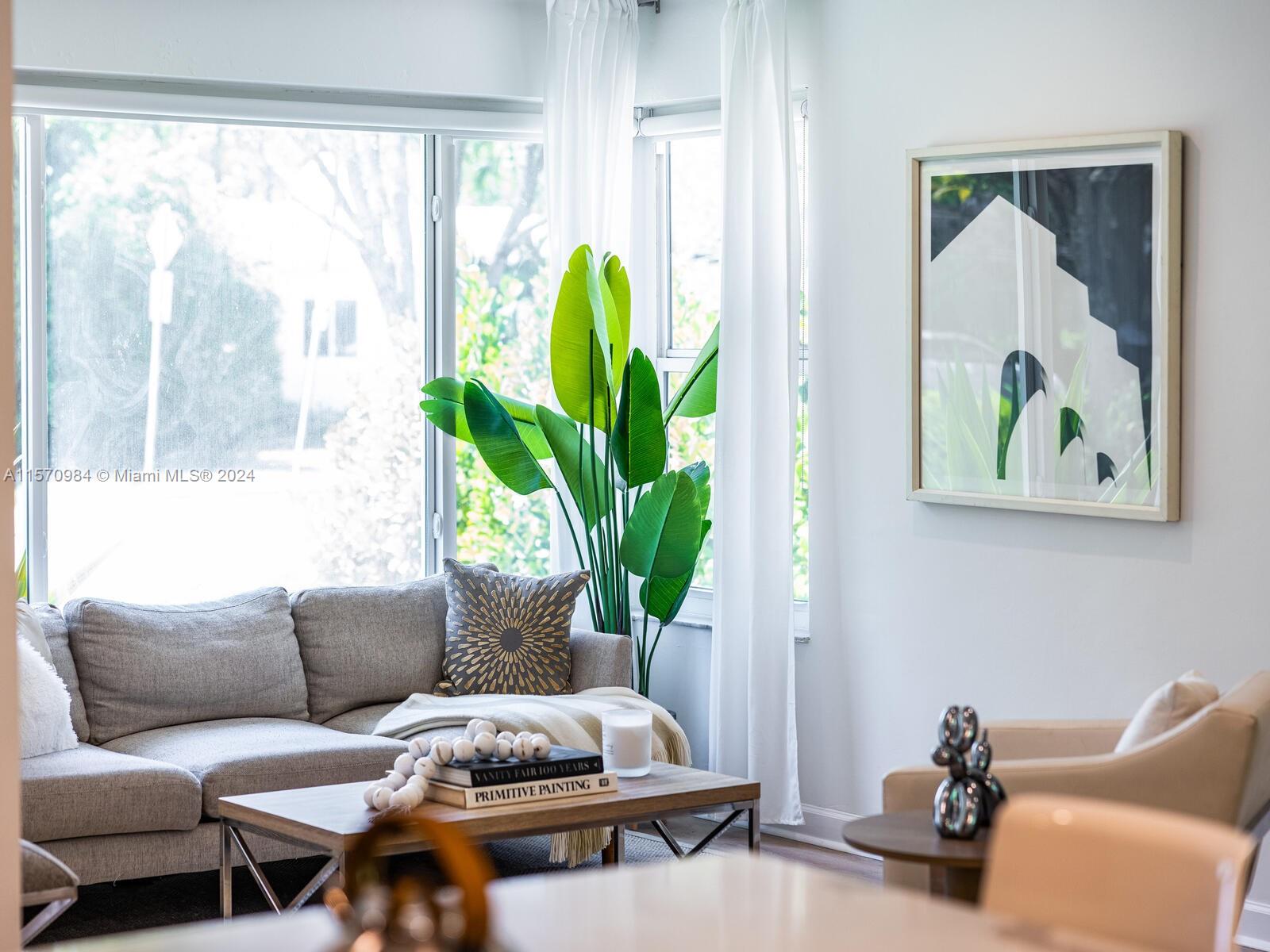 Welcome to the Sunny Modern Ranch! Discover timeless comfortable luxury in this beautifully-updated sun-soaked mid-century modern home. Enter into a fantastic open-flow floor plan with multiple living areas, large updated designer kitchen with breakfast bar, separate dining, and bonus media-sunroom-den flex space with wrap-around windows overlooking the green gardens. Sleep easy in two bright spacious bedrooms with generous closets. Great features: gorgeous brand new “white oak” LVT floors; updated designer double-vanity bathroom; and impact windows-doors. All on a large, non-flood zone corner lot with a private, peaceful two-zone backyard with room for a pool, just a few blocks to downtown Miami Shores shops and restaurants. You’ll agree— it’s always sunny at the Sunny Modern Ranch!