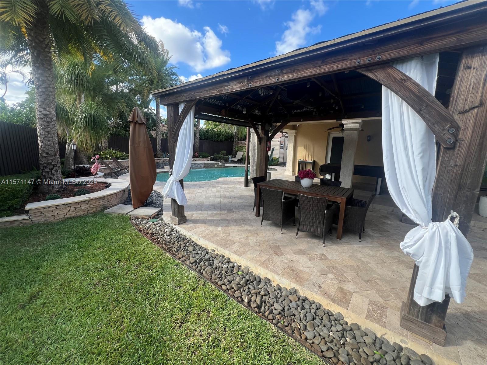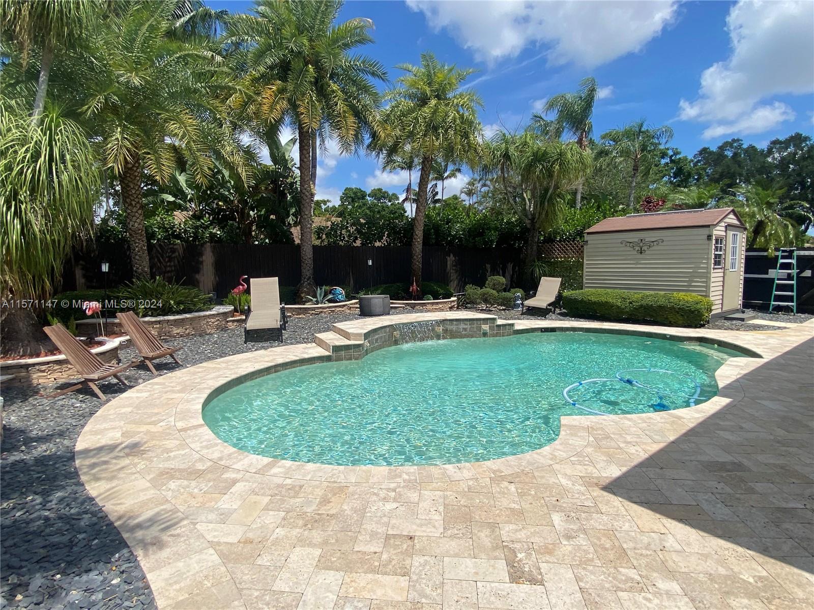 Immerse yourself in luxury living with this designer's dream house. This completely remodeled four bedroom split floor plan home spares no detail, boasting a fusion of elegance and functionality. This immaculate home features complete impact windows and doors, brand new kitchen and appliances, and a spectacularly remodeled garage, all complemented by an 8 year old pool and a comprehensive security system wired throughout the house. Entertain in style within your own outdoor tropical oasis, next to the breathtaking pool with cascading waterfall. The expansive outdoor area is a true entertainer's paradise, featuring a stunning pergola with sound system, perfect for embracing the vibrant South Florida lifestyle. NO HOA FEES! Don't miss the chance to make this exceptional property your own.