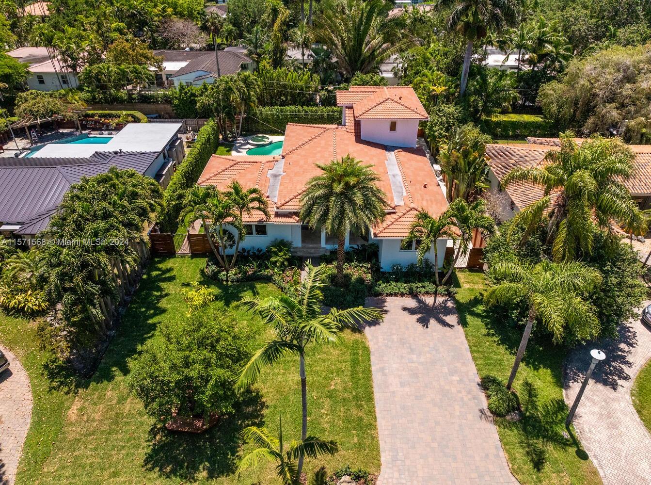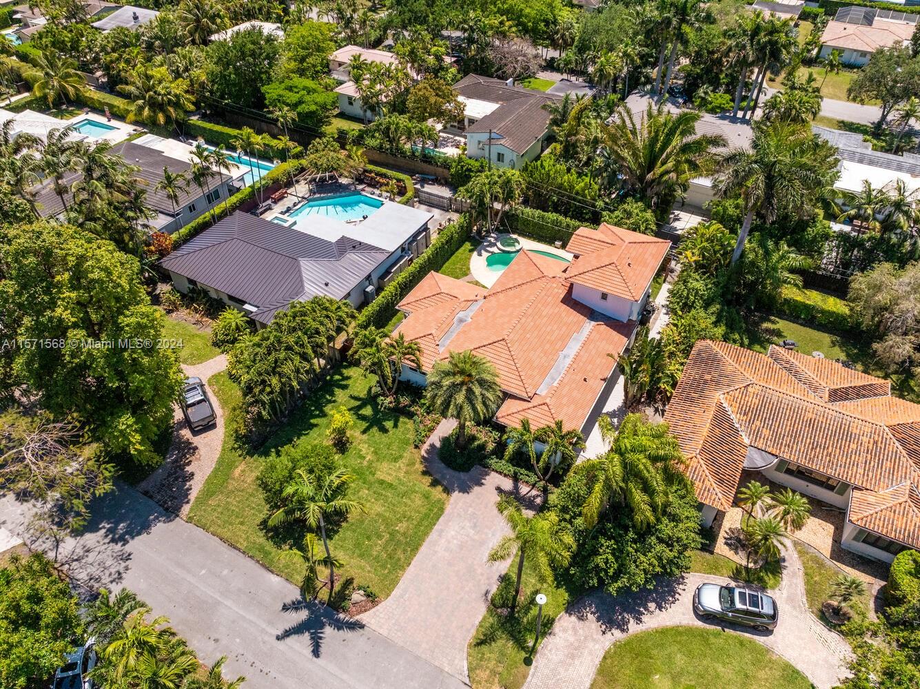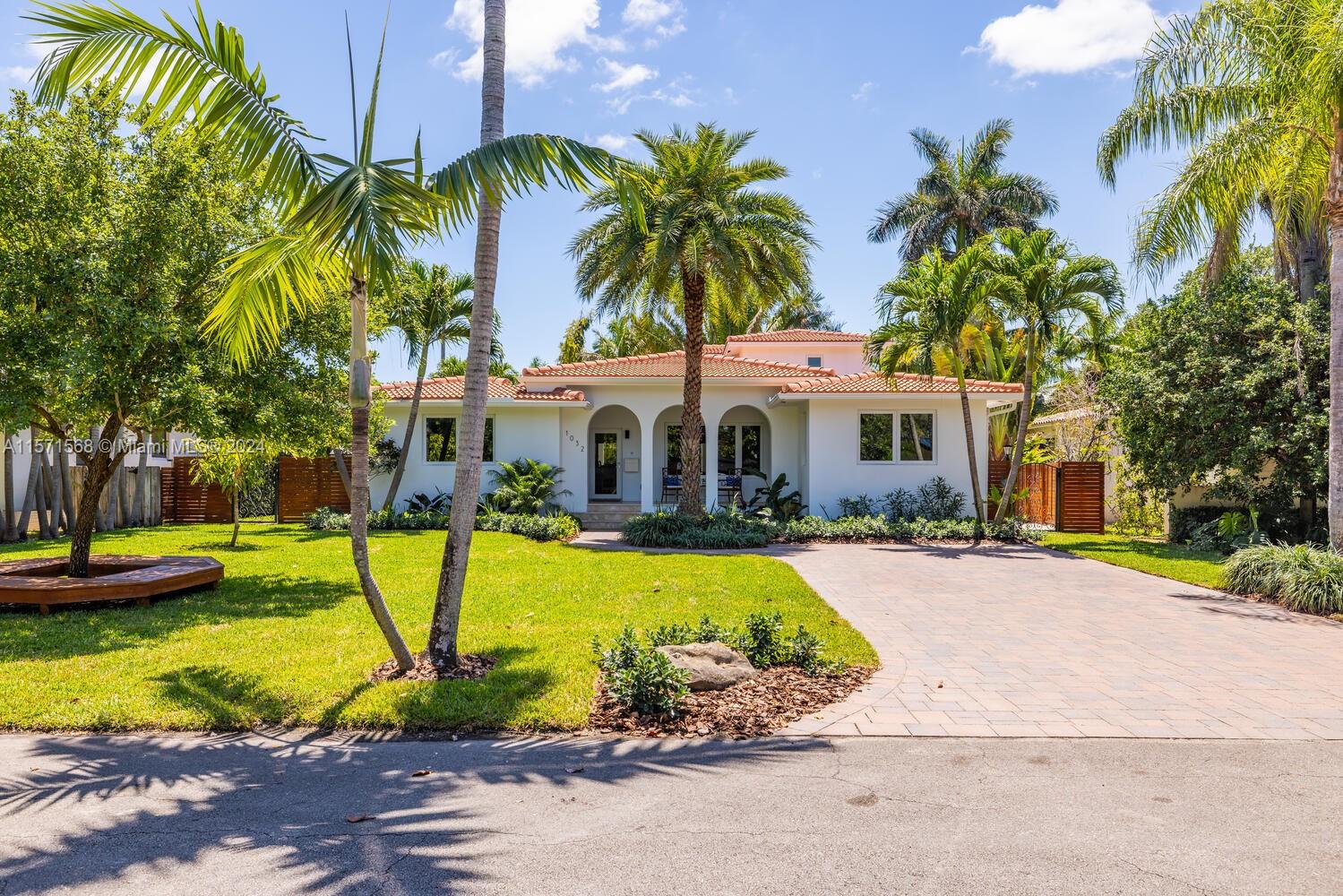 Welcome to Watersong! This magical, rare, five-bedroom secluded East Miami Shores mid-century modern pool home flows like a poem and will be music to your ears! Enter through a welcoming front porch into multiple cascading living areas with high ceilings, a designer eat-in kitchen and dining, opening through sliding doors to a grand vaulted covered terrace, lush fenced private gardens and sparkling pool and spa with soothing fountain feature—perfect for entertaining or relaxing. Great open-flow plan with five split spacious bedrooms (three are full ensuites). Fantastic features: modern designer kitchen and baths; hardwood floors; newer concrete tile roof; impact windows-doors; upgraded electrical-plumbing; and new smart-zoned AC system. All in one of The Shores’ most prestigious locations!