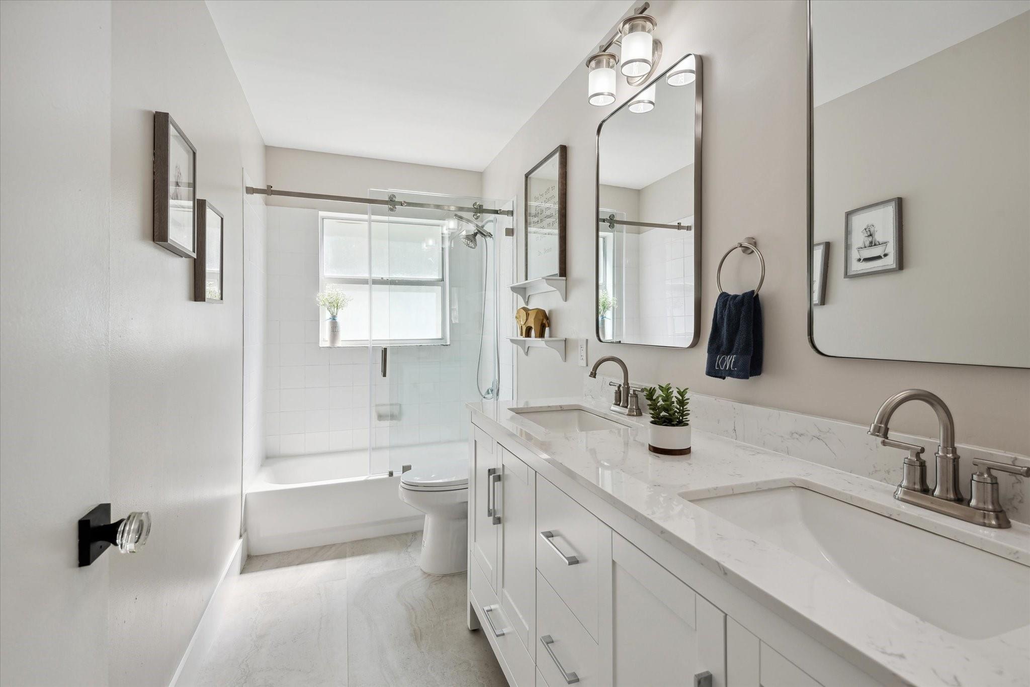 Beautifully updated home in Spring Valley. Spacious 4 b 2 b with open living areas. The kitchen is open to the dining area & family room and boast a large Quartz Island, SS appliances, farmhouse sink, pot filler faucet and beverage refrigerator. Spa bathrooms, built-in closets and cabinetry, plantation shutters and custom front door. Wonderful, fenced patio with built-in BBQ, covered sitting and dining area. The roof and HW heater were replaced in 2022, AC 2019. This is a must-see one-of-a-kind property.