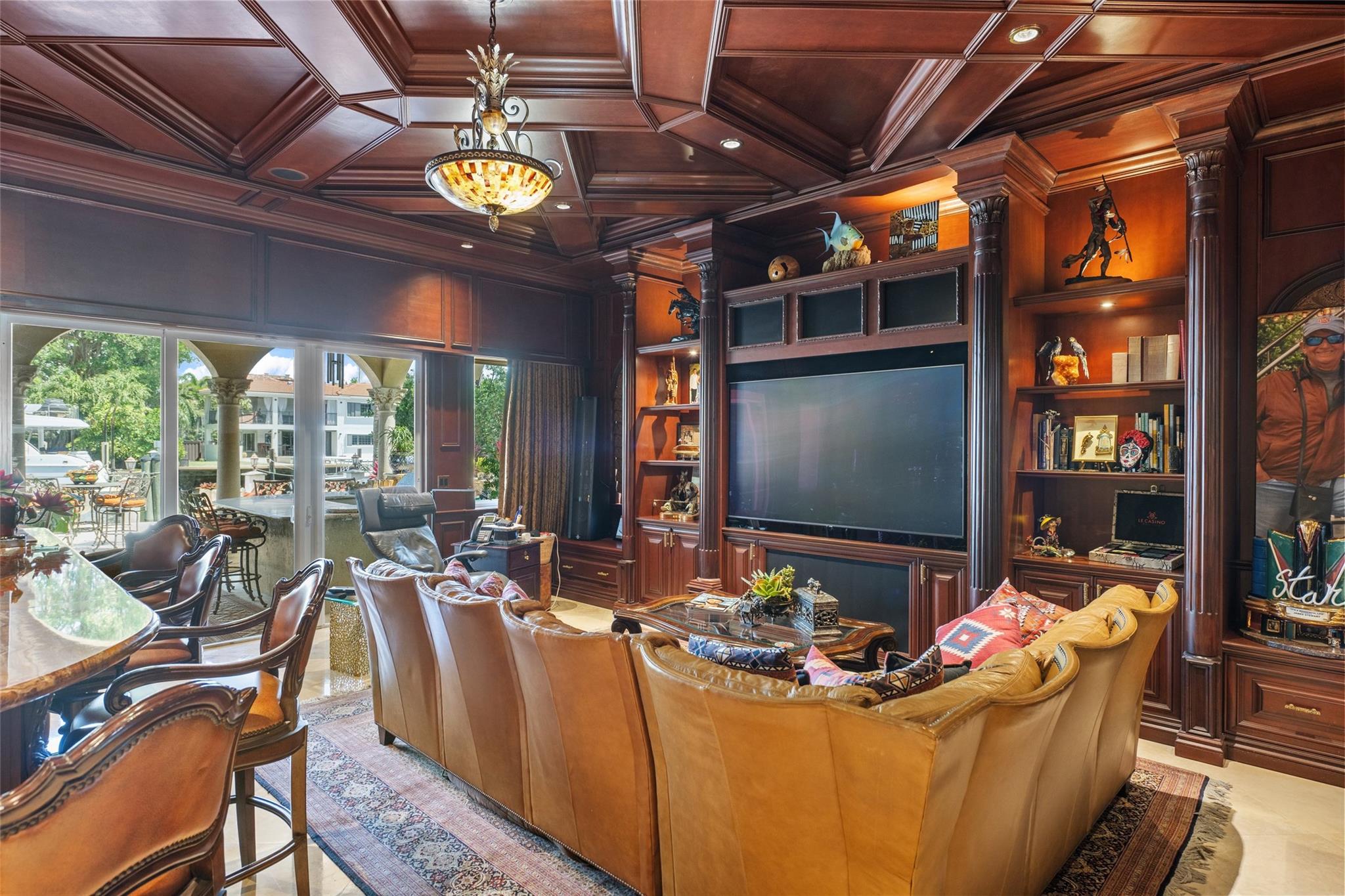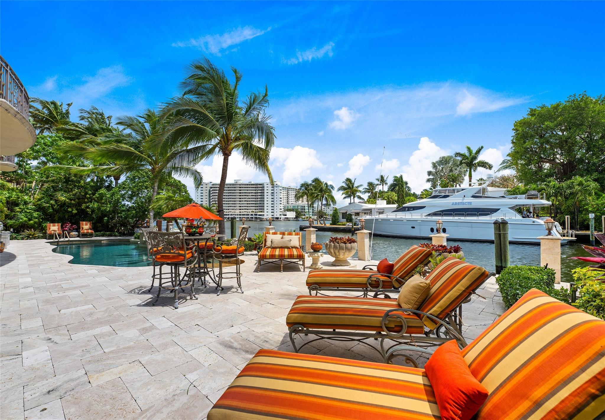 DESIRED SOUTH LAS OLAS WITH WIDE PANORAMAS OF SUNSET LAKE | NAT GAS GENERATOR | ELEVATOR | SAVANT LIGHT AUTOMATION | 2 CAR GARAGE | CONCRETE CONSTRUCTION | CONCRETE DOCK & 100 AMP SERVICE. GREAT RM: WRAP-AROUND BALCONY | BULLNOSE MARBLE & WROUGHT IRON STAIRCASE | ART NICHES | STONE FIREPLACE | LIGHTED TRAY CEILINGS | MARBLE FLOORS | CRYSTAL CHANDELIER | STAINED GLASS. MEDIA PARLOR: ONXY TOPS & WET BAR & ICEMAKER & MAHOGANY PANELING. LANAI: WET BAR SUMMER KITCHEN & DINING AREA & MOUNTED MEDIA. KITCHEN: NEFF KITCHEN & BURL WOOD CABINETRY, VIKING STOVE & RANGE. BUTLER PANTRY: 4TH DISHWASHER & 2ND FRIDGE & FREEZER & ICEMAKER. PRIMARY BR: COVERED TERRACE WITH SEATING & MOUNTED TV, WET BAR, STEAM SHOWER, ETCHED GLASS, ISLAND CLOSET & DRESSING RM. 15-MINUTES VIA BOAT TO INLET. 5 MINUTES TO BEACH
