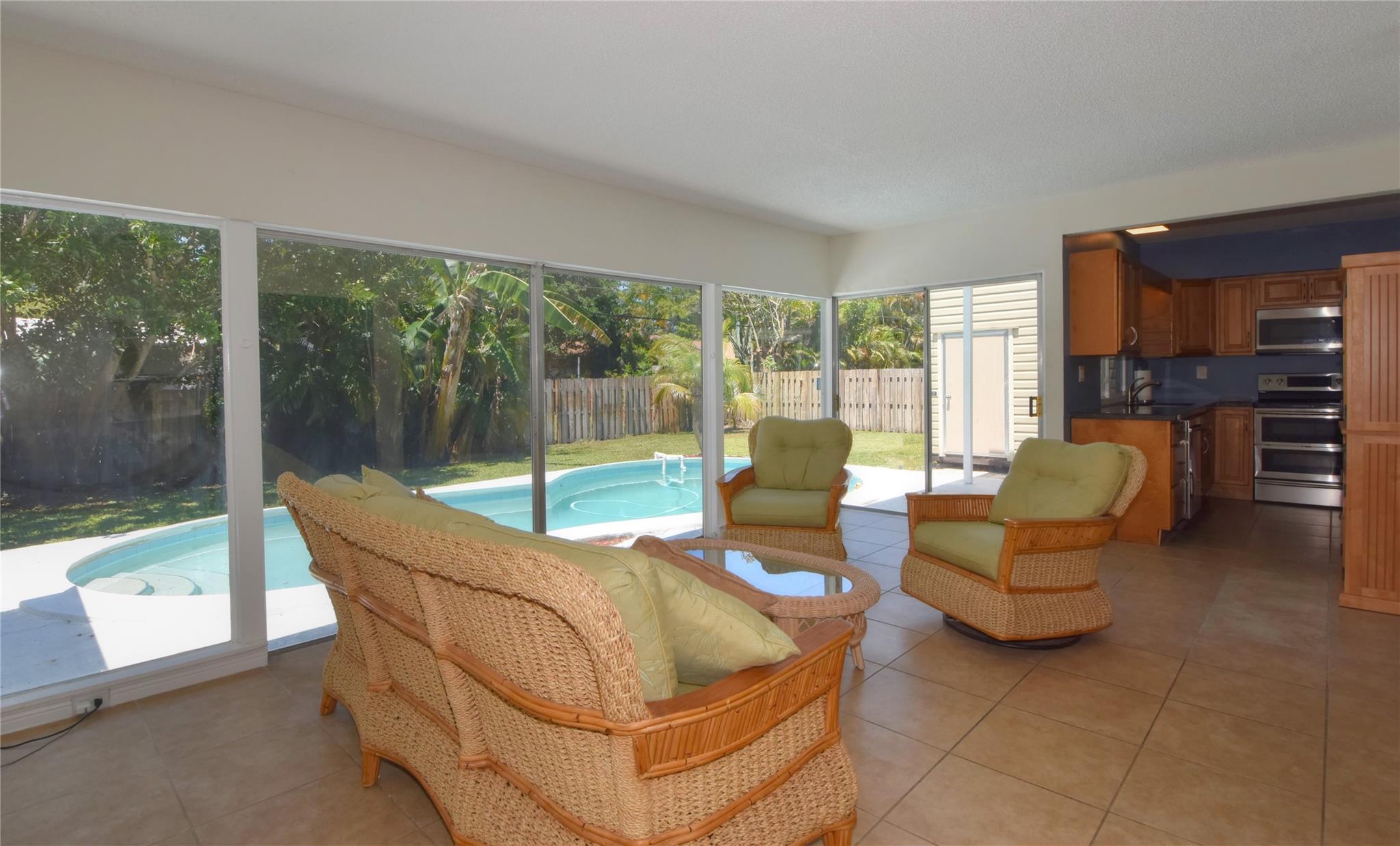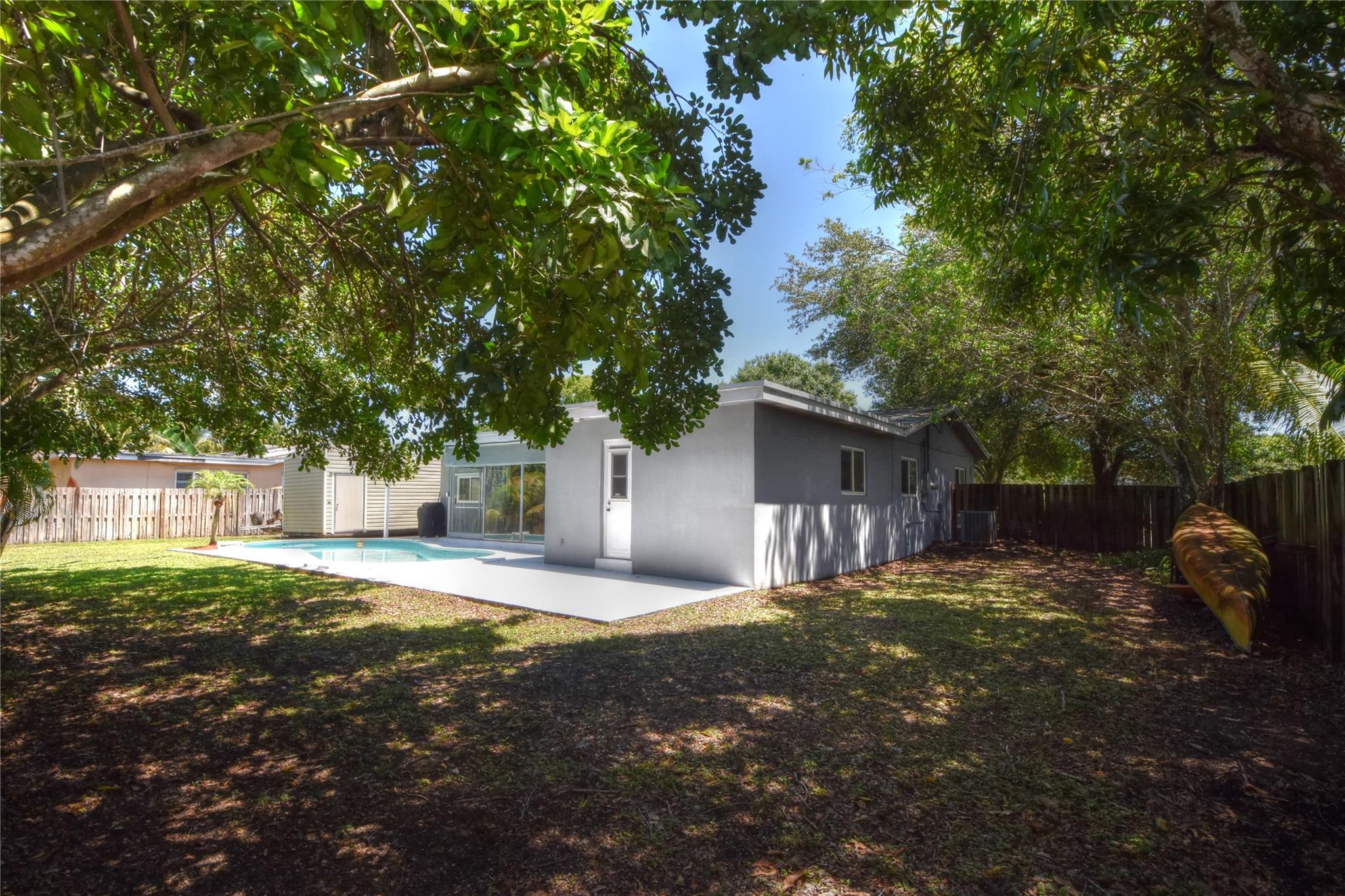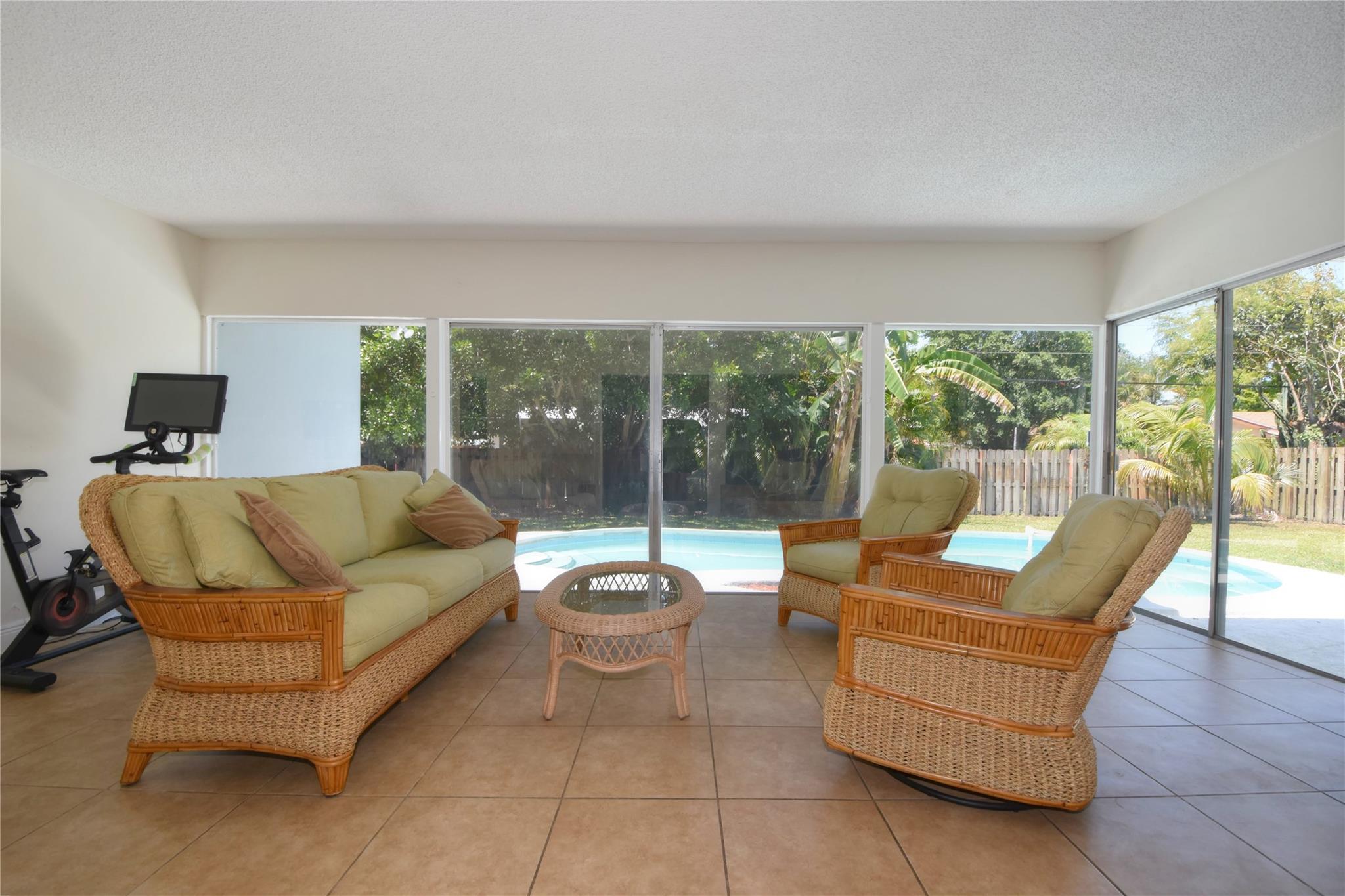 This wonderful ranch-style pool home is nestled on a shady oak tree-lined street in a great neighborhood of Plantation. This lovely updated home features a breezy and bright open concept with lots of windows and a tranquil view of the sparkling, open air pool. The updated kitchen with stainless steel appliances and stone countertops overlooks the living area. The family room has large windows that light up the home and give it a tropical Florida vibe. The roof is only 2 years old and the home has terrific updates including the kitchen, baths, and ceramic tile flooring. This is the sunny home you have been looking for in one of the oldest and most established neighborhoods in Plantation. The yard is spacious, fenced-in and includes a large shed. This fantastic home is a must see!