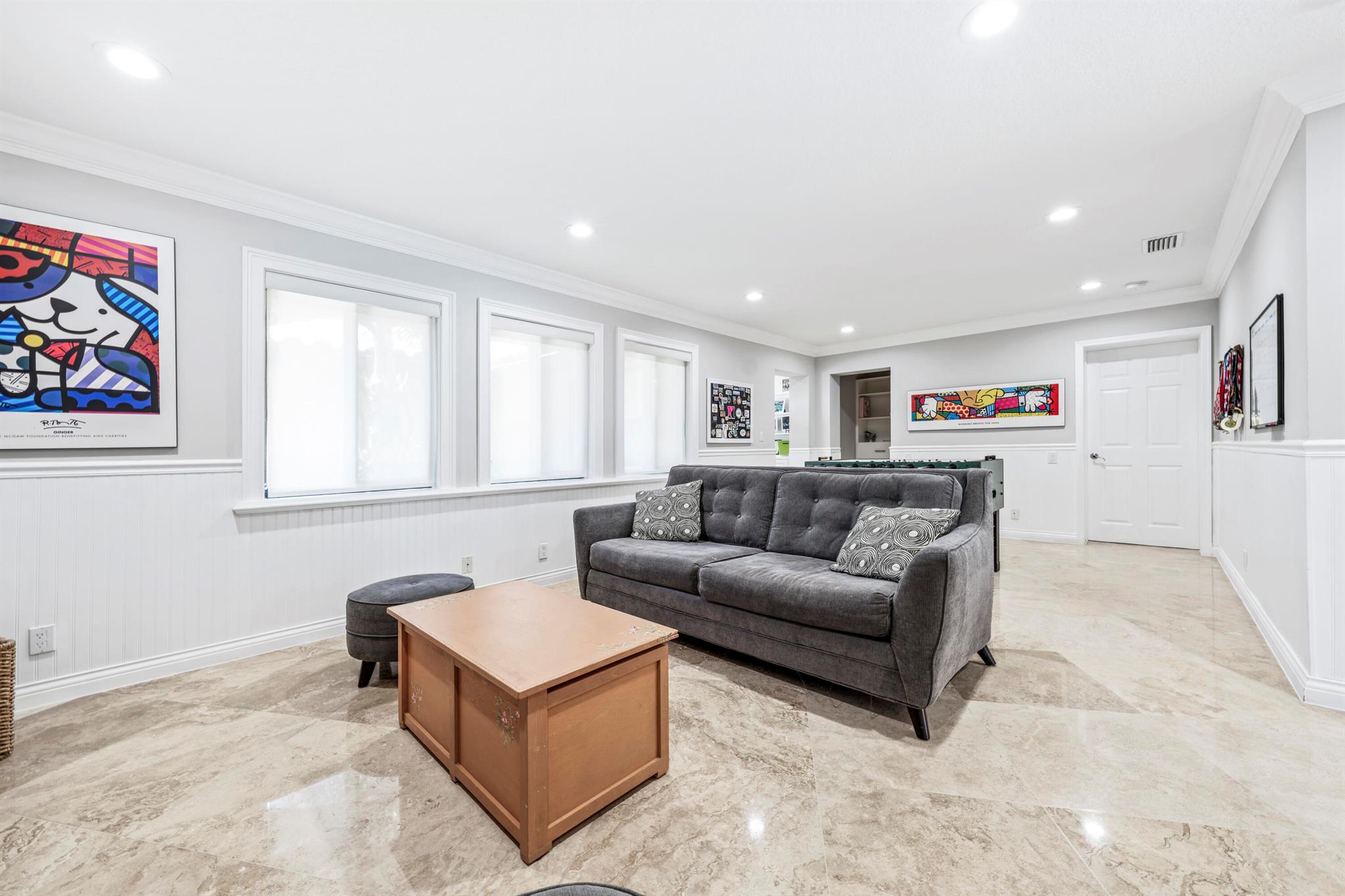 Ideal Family layout with private kids or in-laws wing that has additional separate entrance through enormous mud room. No need to worry about expensive renovations with whole house Impact windows & doors, back up generator, newer roof, huge kitchen and modern finishes throughout. White Shaker Kitchen with enormous island and living area overlook newly screened marble pool deck and covered outdoor kitchen. New top of the line appliances, a gas fireplace , parking for 10 cars and a enormous shaded yard for truly enjoying the Florida lifestyle this home checks every box