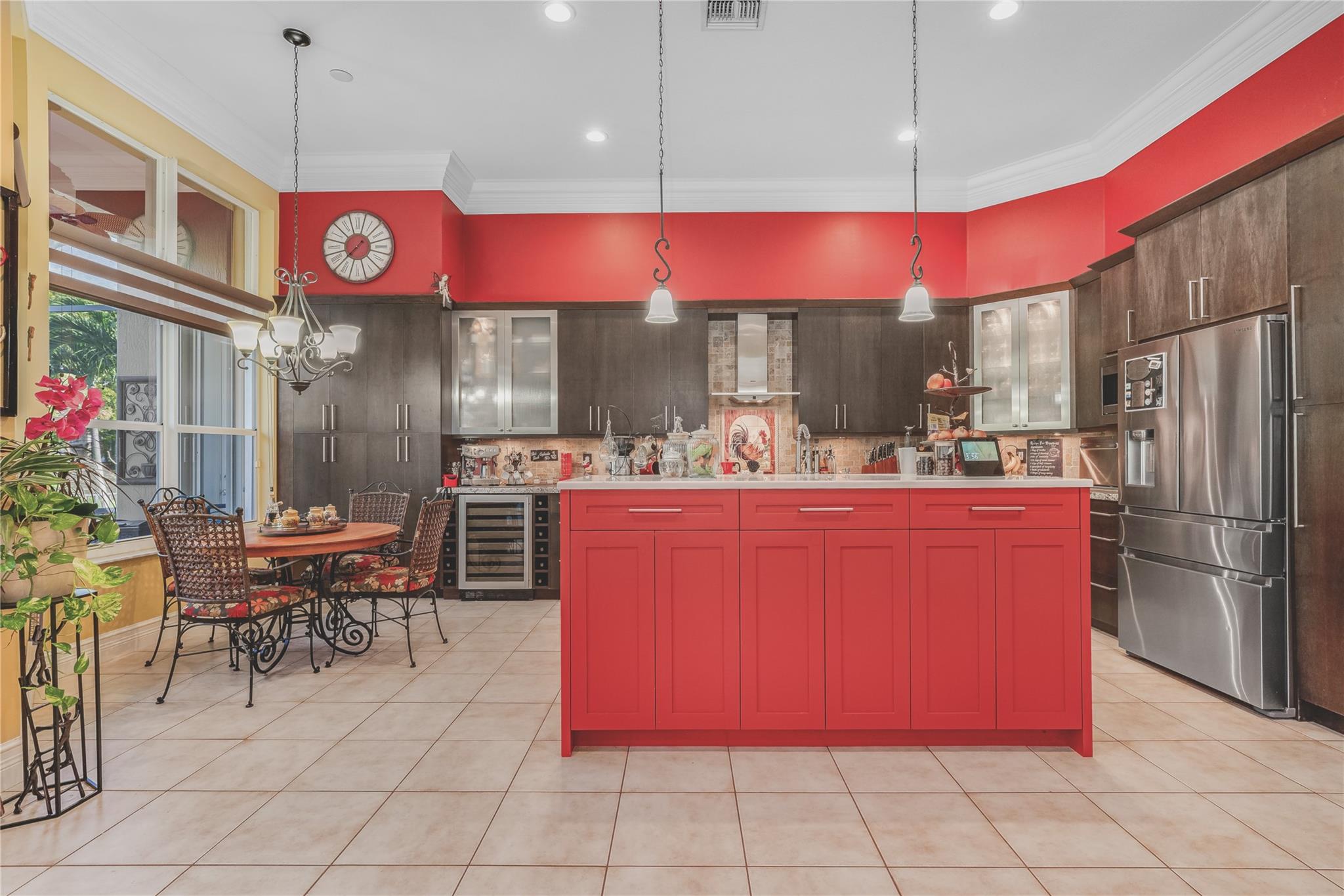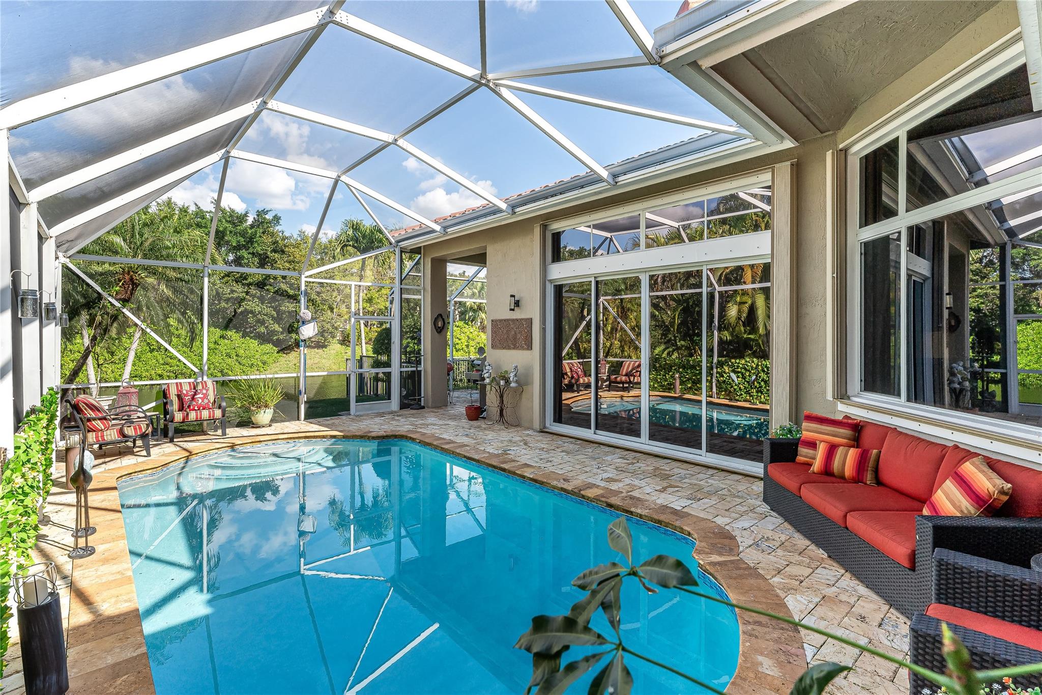 Elegant waterfront living awaits! This luxurious home features 4 bedrooms + a den & 2.5 bathrooms. Spacious chefs kitchen featuring an oversized island & highly sought after gas range. Handcrafted European cabinetry featuring granite countertops & stunning backsplash. Discover a built-in dream closet w/ its own island in the primary suite. Enjoy a spacious bathroom w/ double vanity, walk in shower & bath tub. A fenced side yard provides a safe haven for little ones to play or pets. Enjoy outdoor bliss in your screened in lanai encompassing your newly diamond brite pool taking in serene water views. 2022 roof w/ upgraded double ply waterproofing layer & new gutters. Forgo the concerns of hurricane season with a full house GENERAC gas generator. Gas hookup ready for Pool heater & W/H