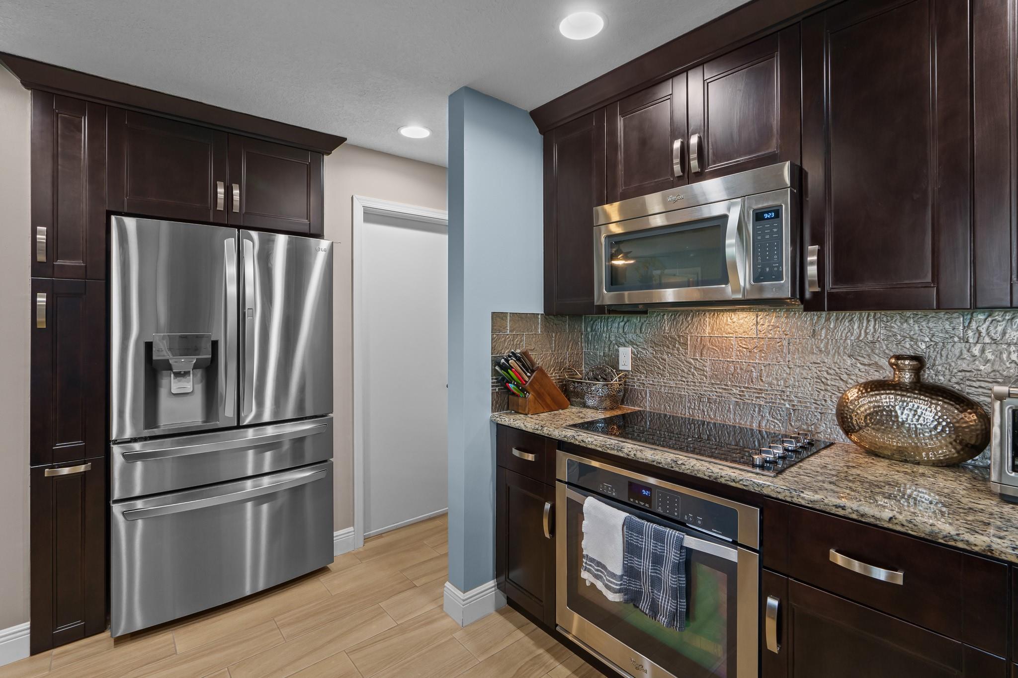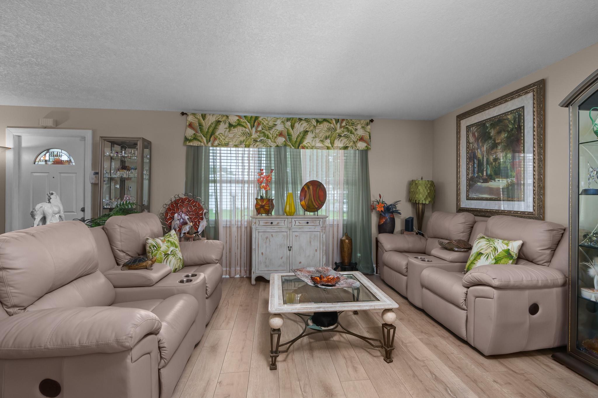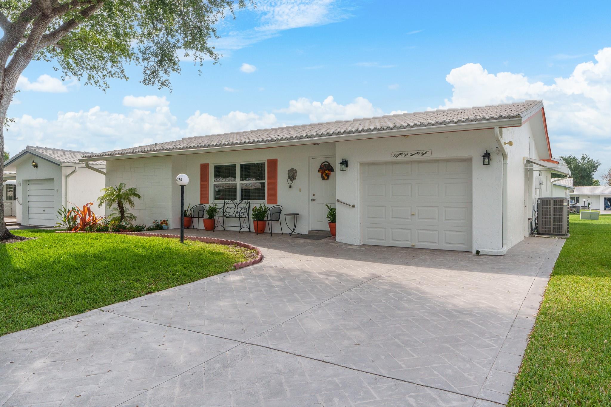 Lauderdale West 2/2 w/garage, Lakeview model. 55+ Community. Beautiful home with extensive updates already done. Double wide, stamped concrete driveway, beautiful screened in rear patio over looks large back yard, Just under 1700sq ft., Impact windows, gorgeous hi-end kitchen & baths, top s/s appliances, New tile roof 2019, New AC 2020 & New hot water tank & New electric panel. Assoc. Fee Includes: Fiber Optic HDTV & Internet, Free community bus at your door, Lawn Service, Exterior painting, Huge Clubhouse, 2 Pools Tennis Courts, Pool Tables, Ping Pong, Card rooms, Professional Shows, Fitness Center & more! This home is a must see!