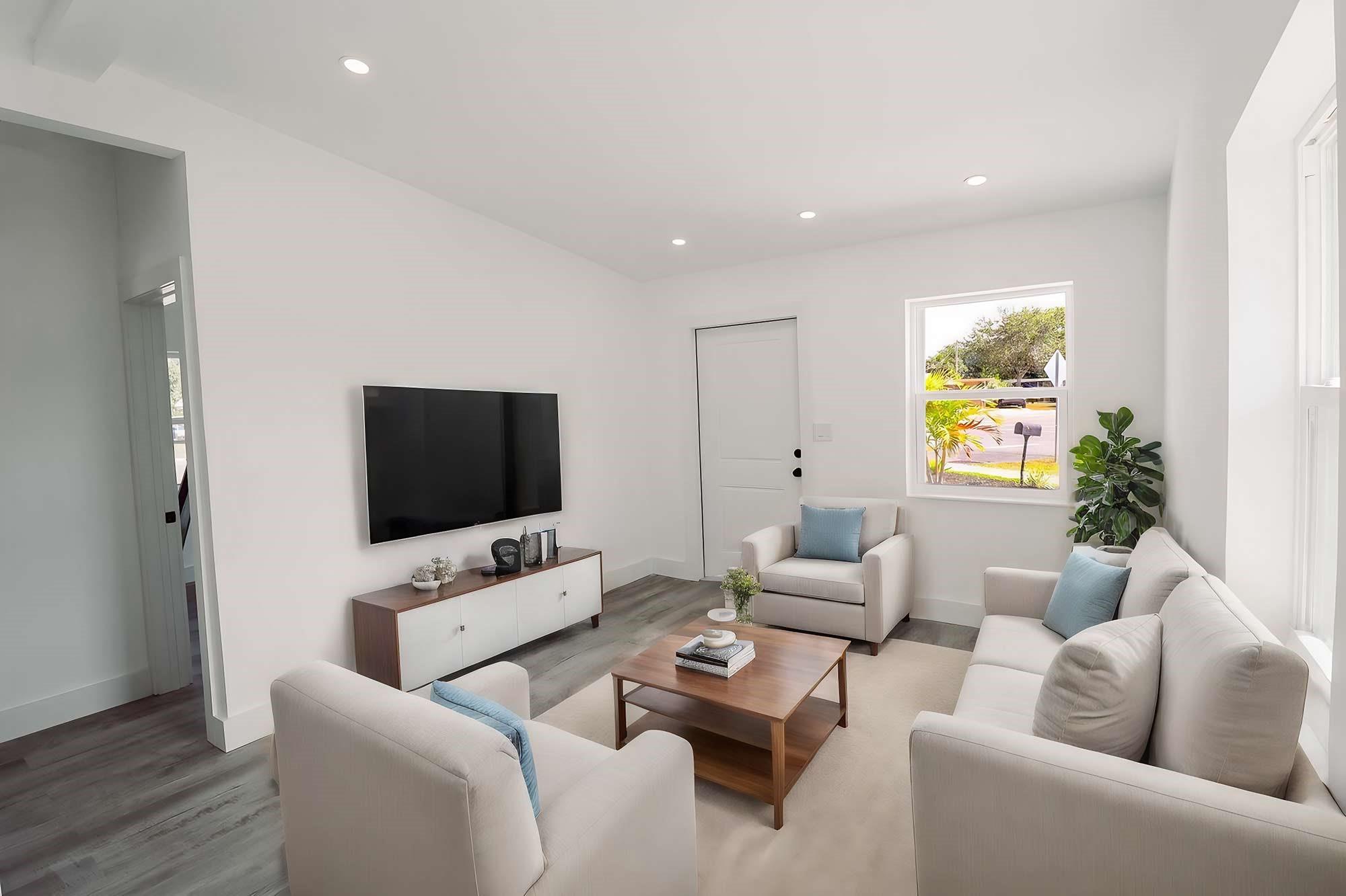Beautifully updated 2 bedroom 1 bathroom home in the heart of Pompano Beach. The stunning kitchen is equipped with all new appliances, a washer/dryer, modern shaker cabinets, gleaming stone countertops and custom mother or pearl backsplash. Both bedrooms have generous closet space. Modern styling throughout with LED lighting in the vaulted ceilings, updated bathroom, newly painted interior and exterior, new doors, A/C, instant water heater and energy efficient windows. Outside, the large 6,166 sqft lot has freshly laid sod, a four-zone irrigation system, and flourishing mature plants. Conveniently located near several parks and schools as well as local shopping, downtown Pompano's vibrant scene and sandy shores beaches. This is the lowest priced 2 bedroom home in the coveted 33060 zip code