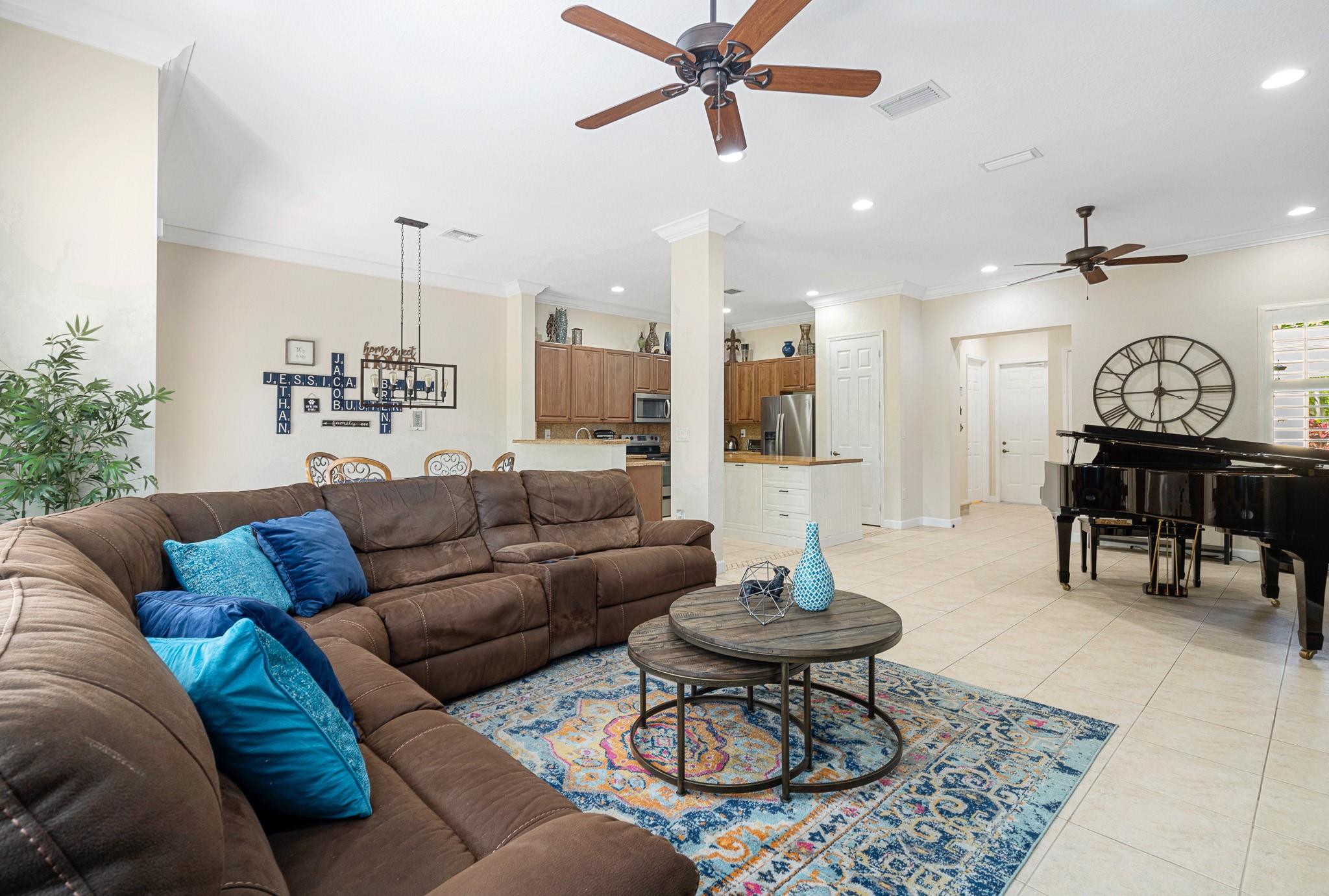A beautiful townhouse in the highly desirable neighborhood of Heron Preserve. This 4 bed/2.5 bath townhouse features an entry hall, crown molding, hurricane impact windows, 10' ceilings (upstairs and down), a large pantry, a new fridge-freezer, dishwasher, and plantation shutters. The primary bathroom has a double sink vanity and a laundry room on the bedroom level. The primary bedroom has a gorgeous view of green space (the TV and closet dresser are staying). There is a loft/office/TV area. AC 2022. The two-car garage is oversized (20x23) with custom shelving. The gated community has a pool and a clubhouse, and the gym has new equipment. All this is in close proximity to shopping, restaurants, and top-rated schools!