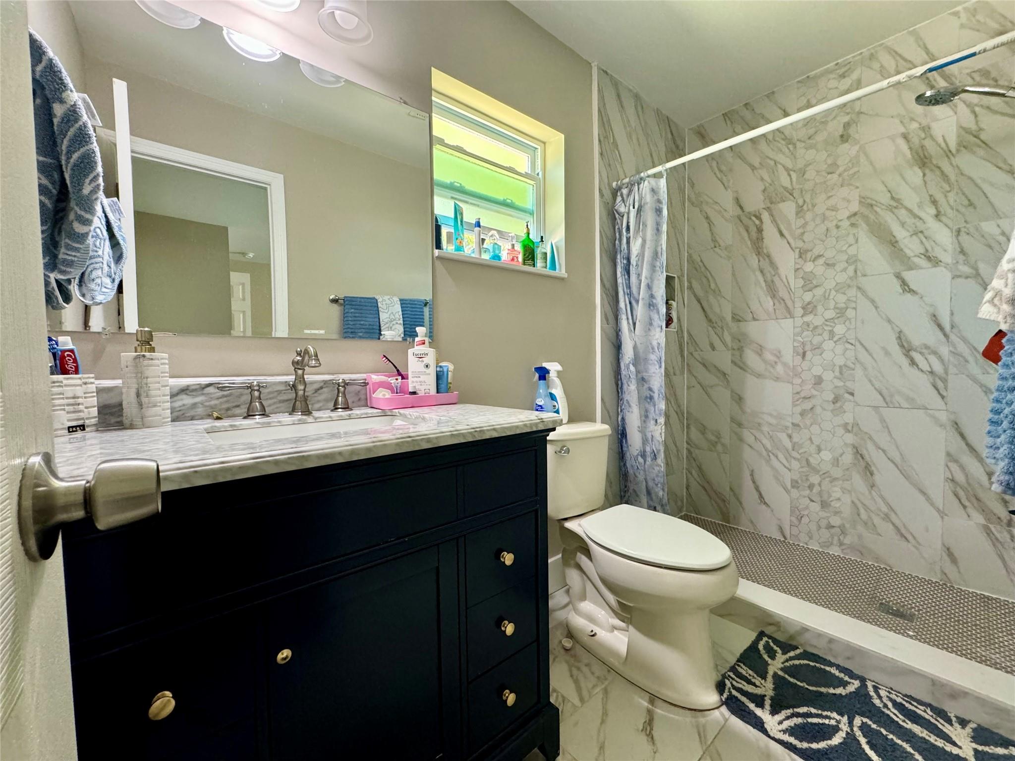 Opportunity is calling on this Royal Palm Acres 3 bedroom 3 bathroom canal front home with private dock, ocean access with fixed bridges, 2 master suites, a 1 car garage, and so many updates. Vinyl Flooring throughout. Impact Windows & Doors throughout. Recessed high hat lighting in living and kitchen areas. Kitchen features stylish 2-tone cabinets with white shaker style uppers and blue shaker style lowers. Mosaic Tile backsplash. Complementing white sparkling quartz countertops with matching middle island for extra kitchen storage. All bathrooms have been updated with marble look tile and vanities to match the kitchen style. Roof installed 2020. AC installed 2021. Mango, Avocado and Banana Trees. The front of the home does face the back of commercial properties.