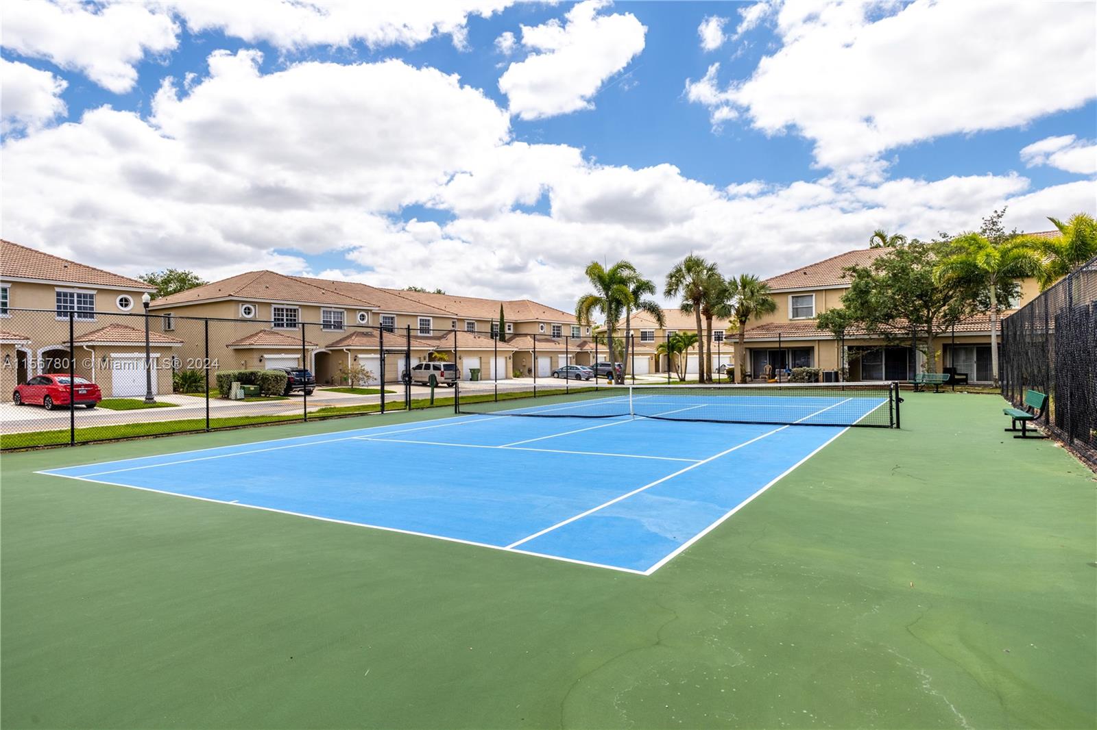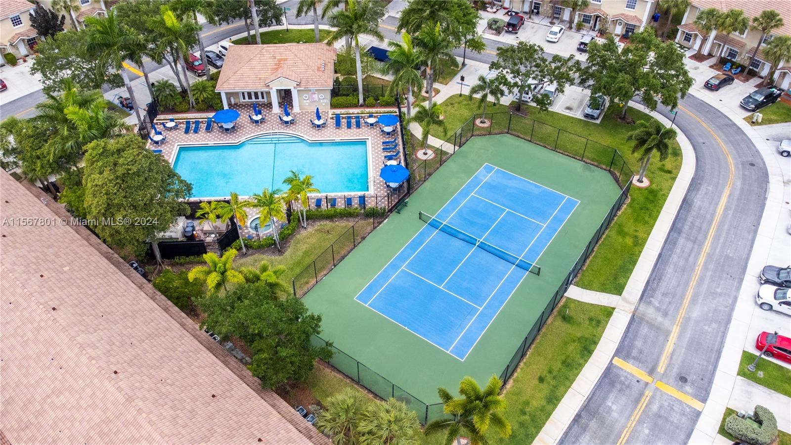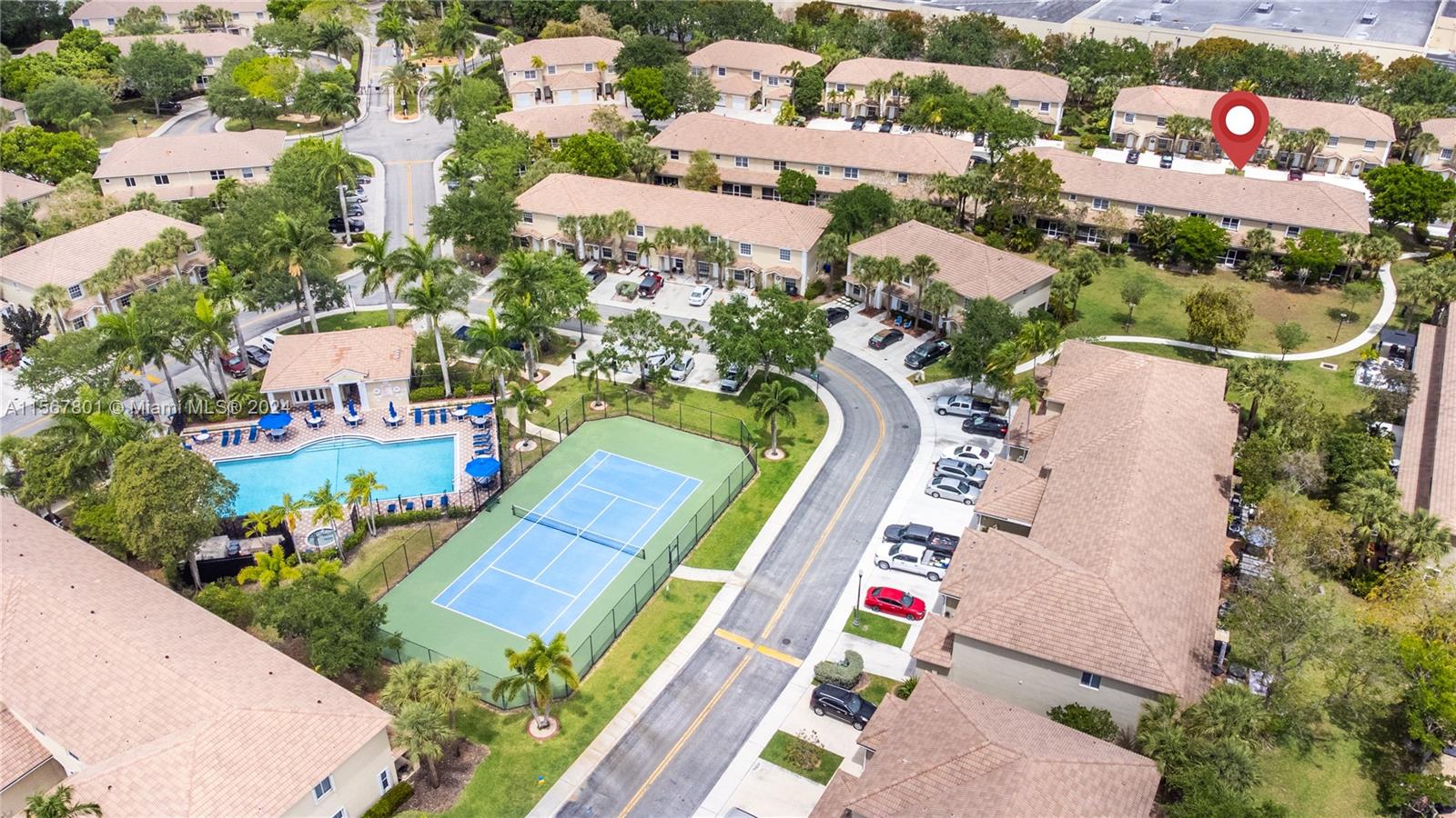Experience the charm of this meticulously maintained 2-bedroom, 2-bathroom townhouse reminiscent of the perfect starter home. Built in 1998, spanning almost 1,400 sqft, it features a 2-car driveway and a 1-car garage. Step into the kitchen boasting white cabinetry, stainless steel appliances, and a convenient serving station. The adjacent dining room and living room offer seamless entertainment flow. Enjoy the screened-in porch for moments of relaxation. Upstairs, the primary room offers a tranquil view, dual walk-in closets, and an ensuite with dual sinks and a stand-up shower. The second bedroom includes its own full bathroom for added privacy. Residents enjoy access to a clubhouse, pool, jacuzzi, tennis court, and fitness room. HOA Includes Cable + Internet!