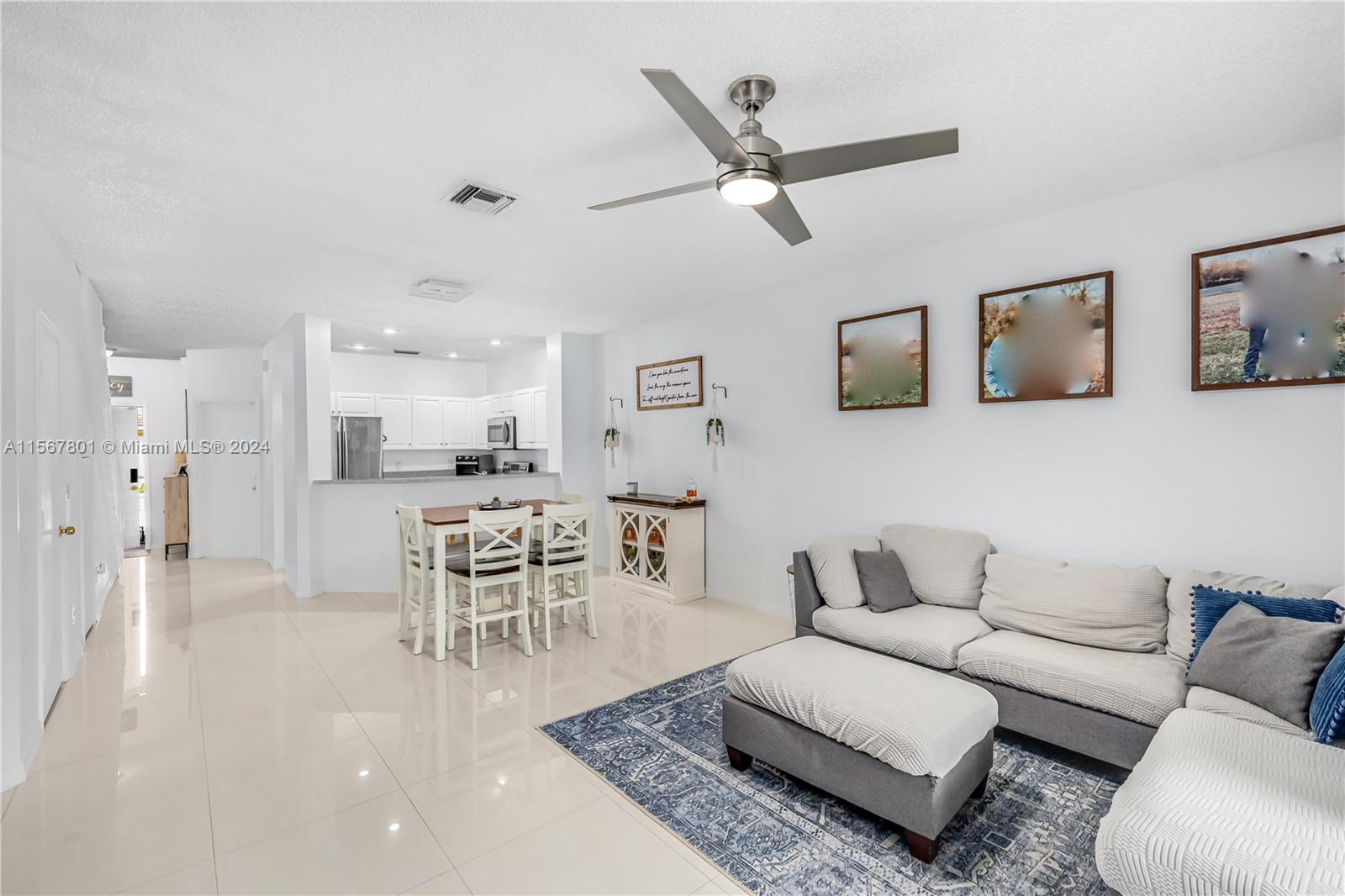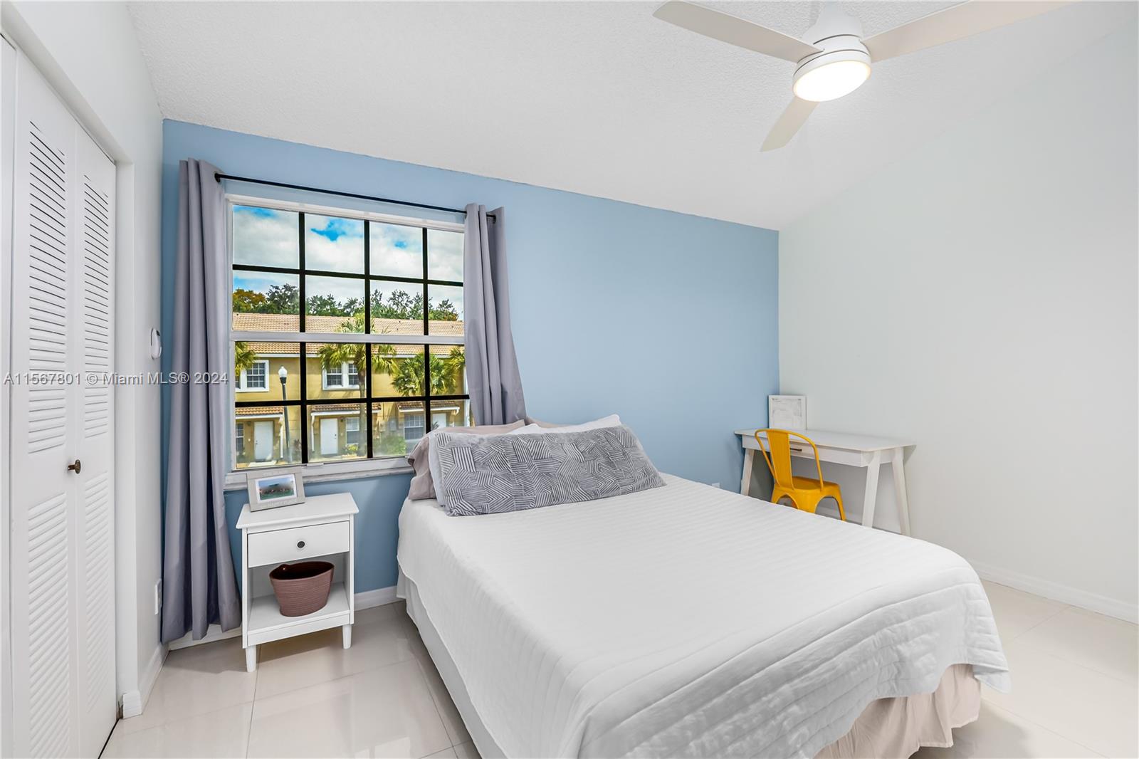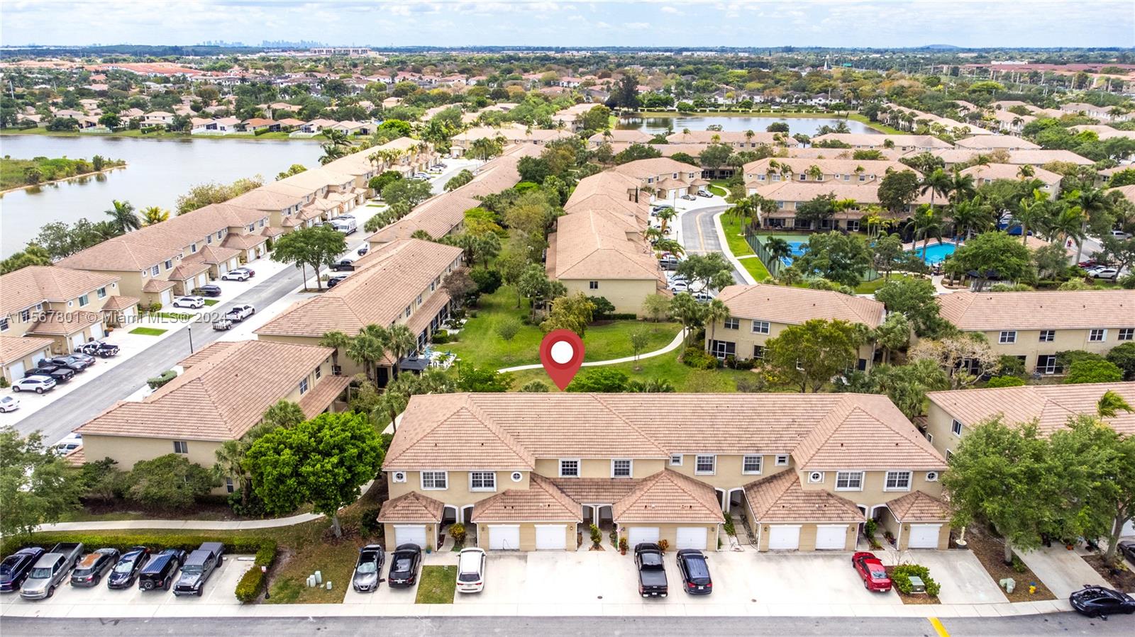 Experience the charm of this meticulously maintained 2-bedroom, 2-bathroom townhouse reminiscent of the perfect starter home. Built in 1998, spanning almost 1,400 sqft, it features a 2-car driveway and a 1-car garage. Step into the kitchen boasting white cabinetry, stainless steel appliances, and a convenient serving station. The adjacent dining room and living room offer seamless entertainment flow. Enjoy the screened-in porch for moments of relaxation. Upstairs, the primary room offers a tranquil view, dual walk-in closets, and an ensuite with dual sinks and a stand-up shower. The second bedroom includes its own full bathroom for added privacy. Residents enjoy access to a clubhouse, pool, jacuzzi, tennis court, and fitness room. HOA Includes Cable + Internet!