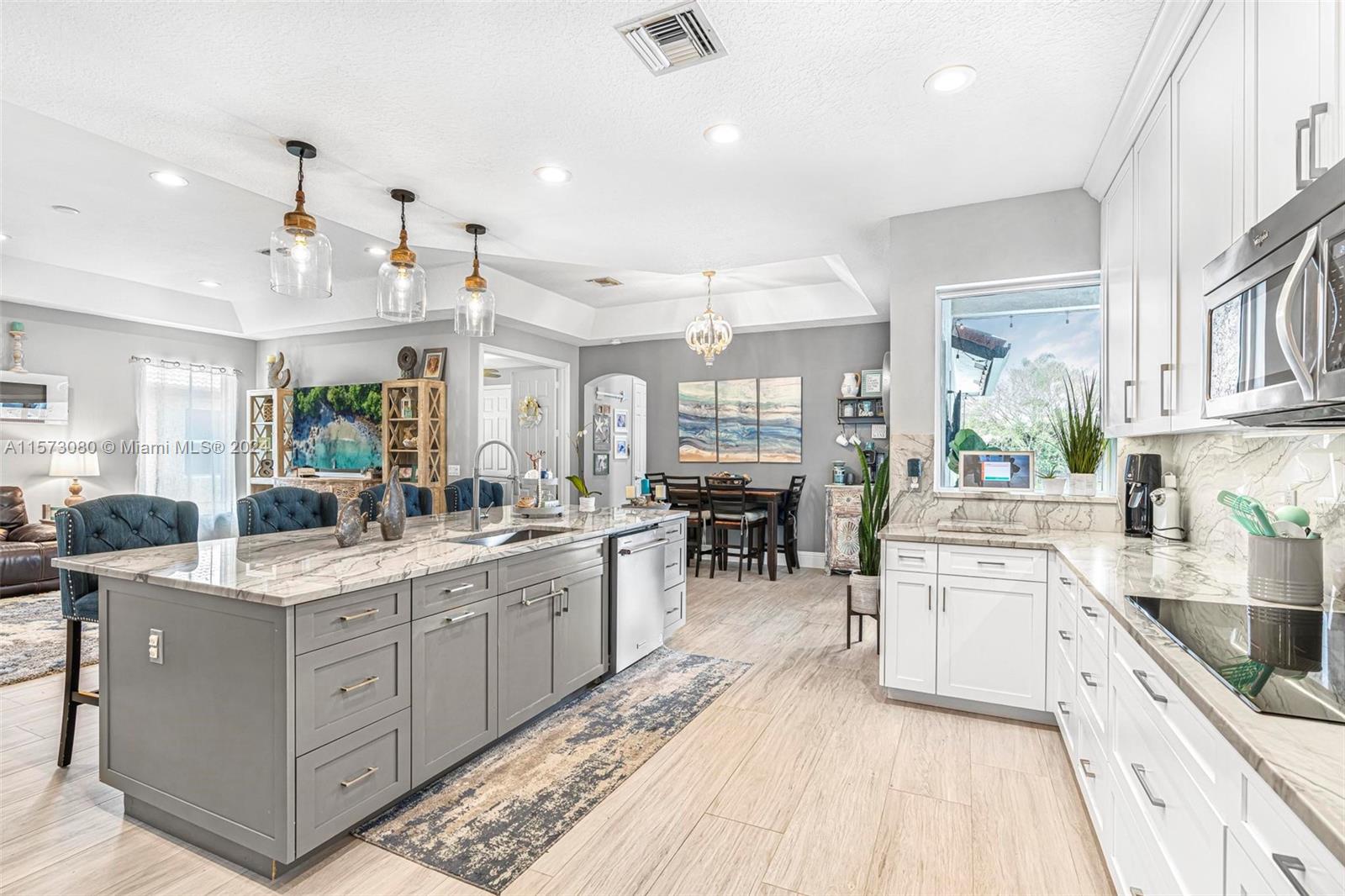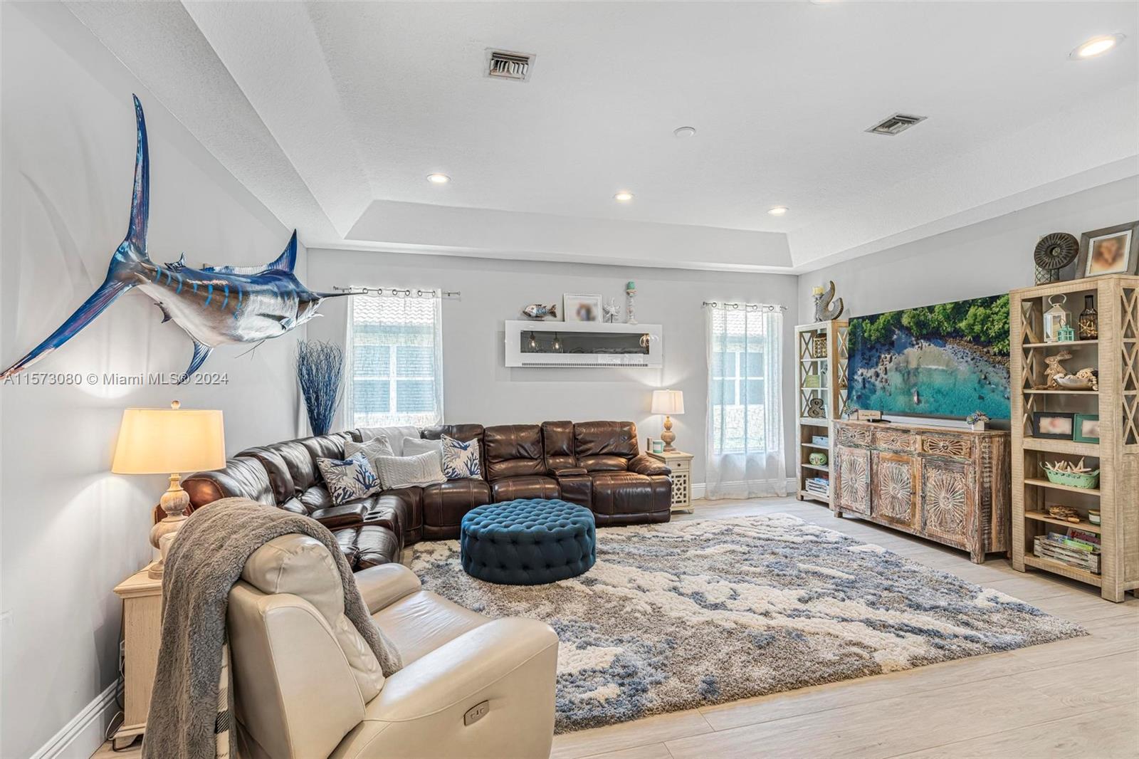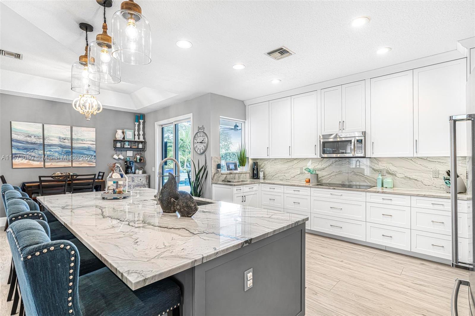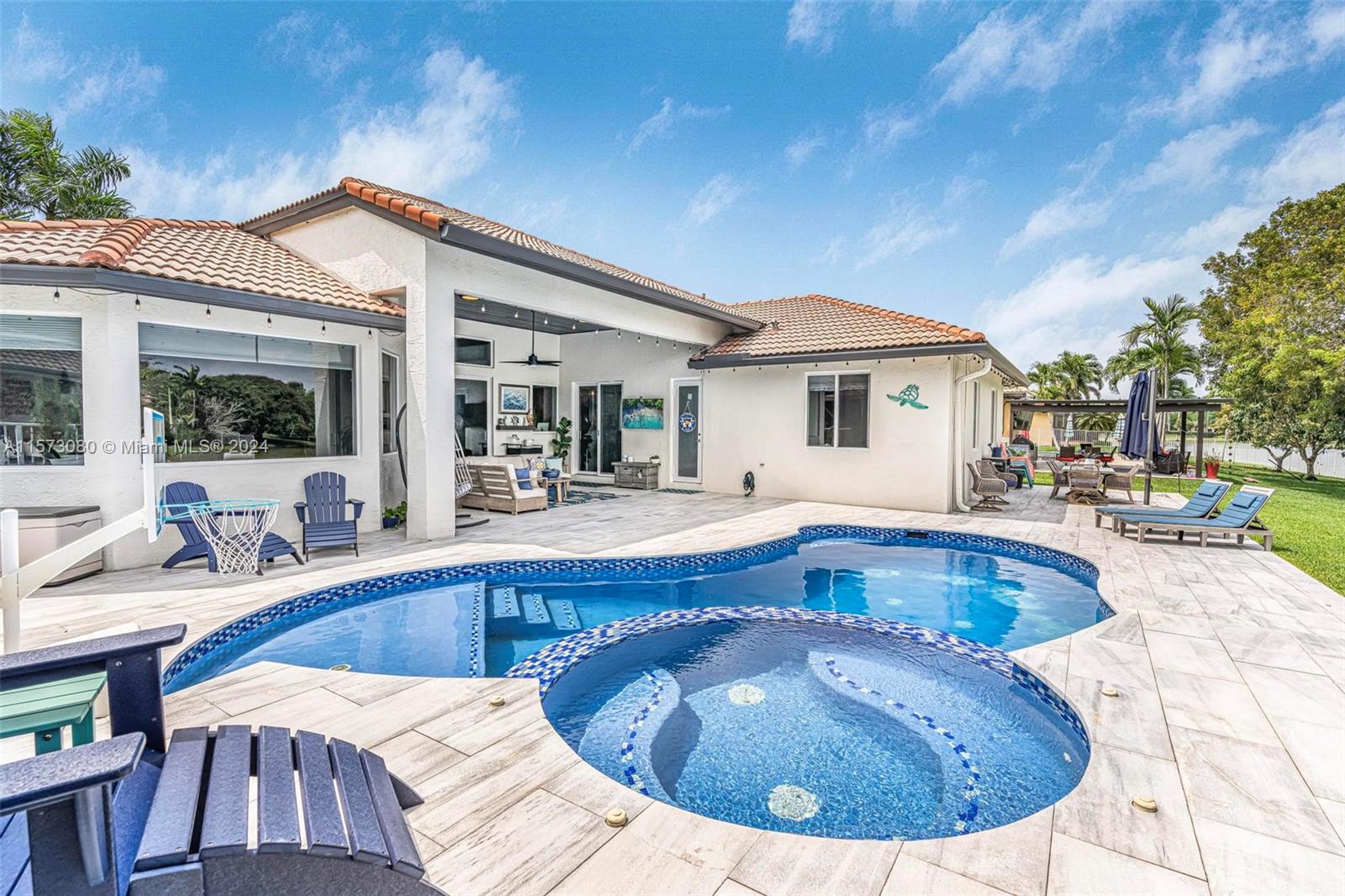RARE OPPORTUNITY! Introducing this stunning 4/2.5 + bonus office, heated pool & lake front home located in the highly sought after Country Glen. This inviting property offers a sanctuary of comfort and relaxation. Step into your own private backyard oasis, where the shimmering waters of your new pool blend seamlessly w/ the sparkling lake views. NEW remodeled kitchen w/ timeless white cabinets, quartz countertops, SS appliances and large island! Impact windows and doors throughout! New flooring! New A/C's! NEW WASHER/DRYER. EPOXY GARAGE. Entertain guests on the spacious new patio & unwind in the jacuzzi as you watch the sunset. Exclusive gated community w/ 24/7 manned guard & includes park, tennis courts, basketball courts and beach volleyball! Excellent location w/ A+ rated schools.