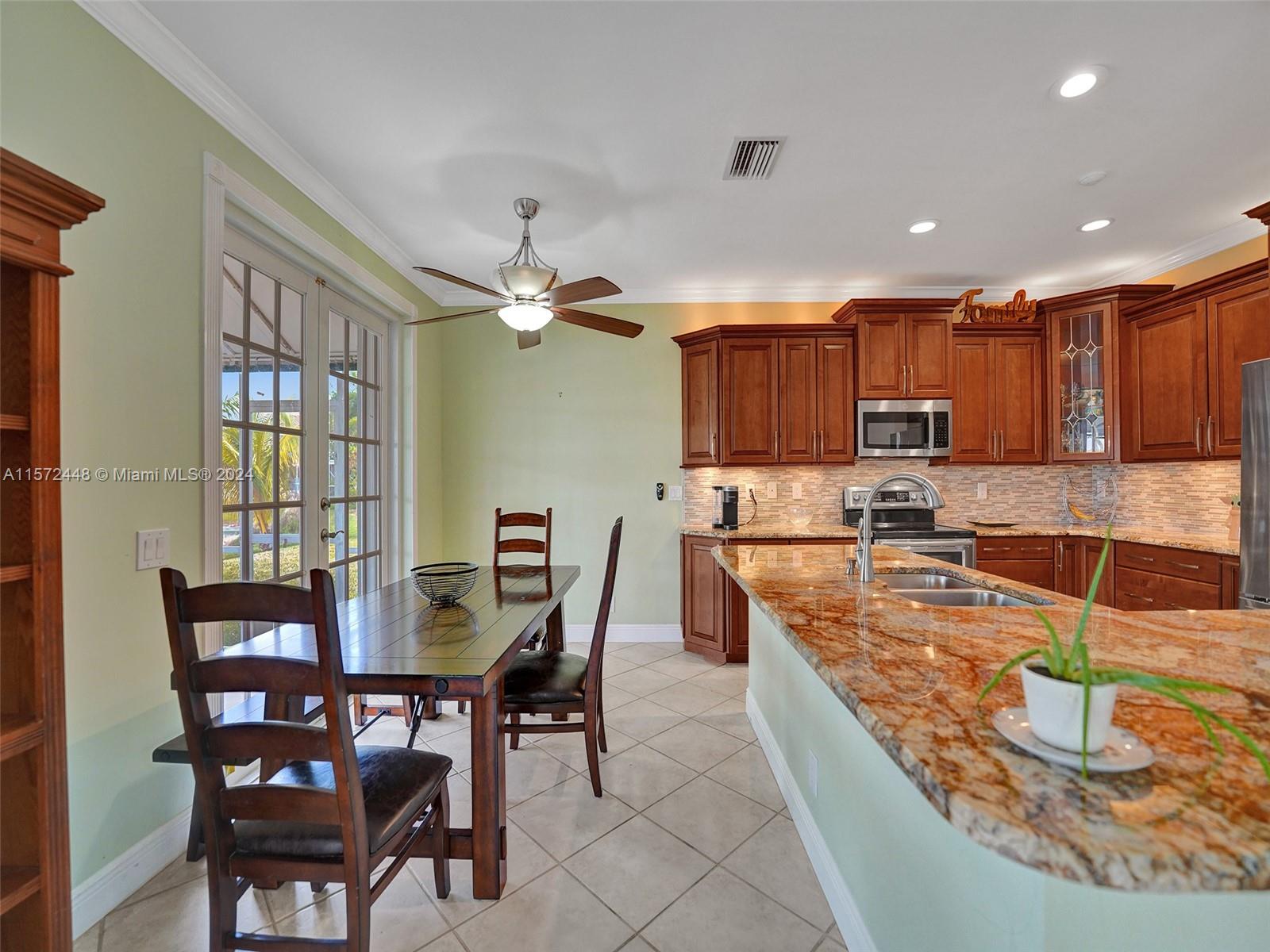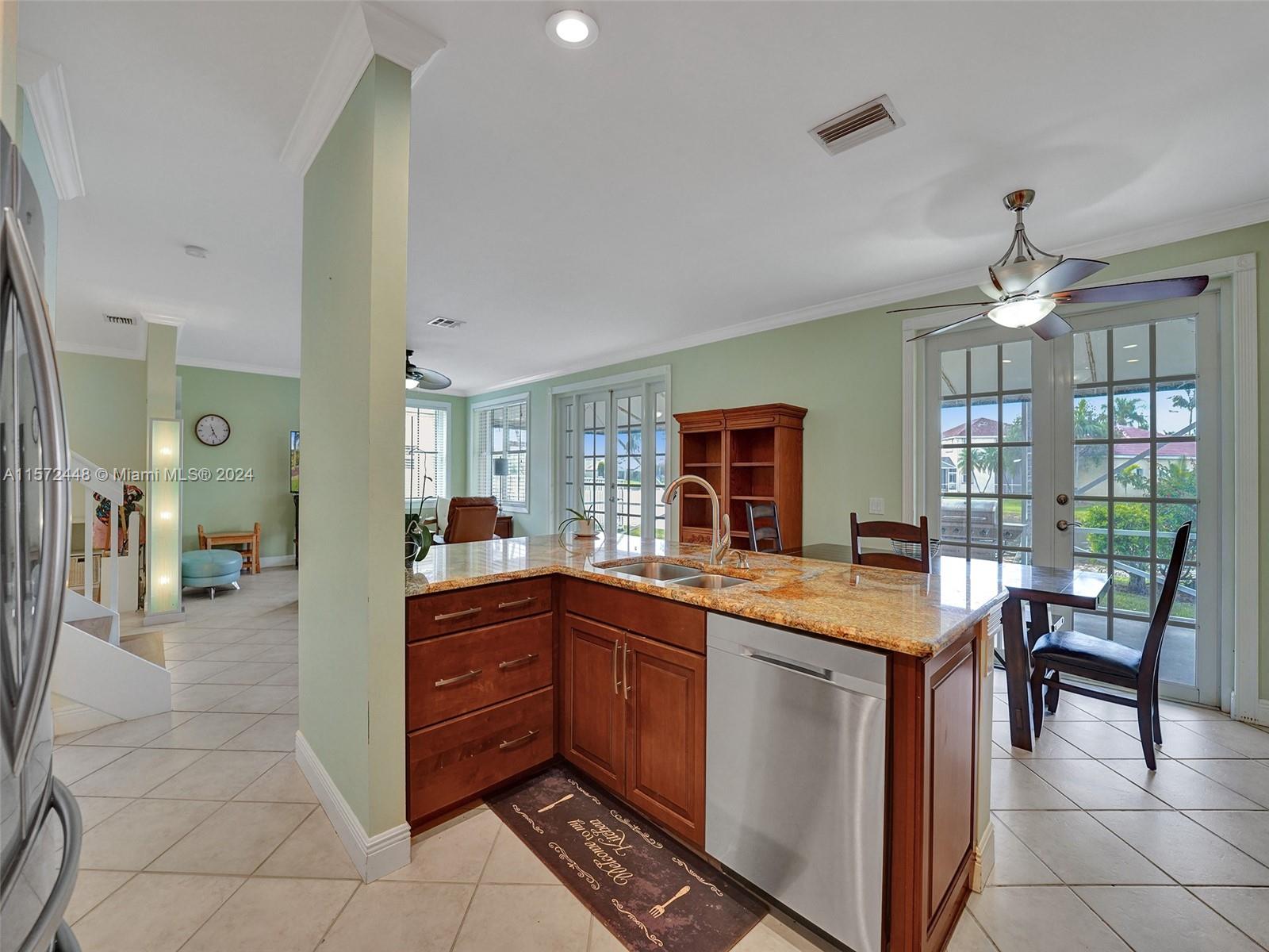 FIRST TIME ON THE MARKET! This spacious & desirable 5/3.5 is situated on a QUIET LAKEFRONT LOT in THE MEADOWS. UPDATED KITCHEN features SS APPLIANCES w/ newer fridge & dishwasher, GRANITE COUNTERTOPS, & wood cabinets w/ ACCENT LIGHTING. ALL BATHS UPDATED. 5th bedroom was opened for use as an office/den. Tile on first floor & NEWER WOOD LAMINATE on stairs & 2nd floor. Inside laundry features newer WASHER & DRYER. Dual A/C system w/ newer upstairs unit. ACCORDION SHUTTERS all around. Two sets of FRENCH DOORS lead out to a LARGE SCREENED-IN PATIO where you can relax & enjoy the BEAUTIFUL WATER VIEW. All A RATED SCHOOLS- just steps to Gator Run Elementary. Don't hesitate - MAKE THIS YOUR HOME TODAY!