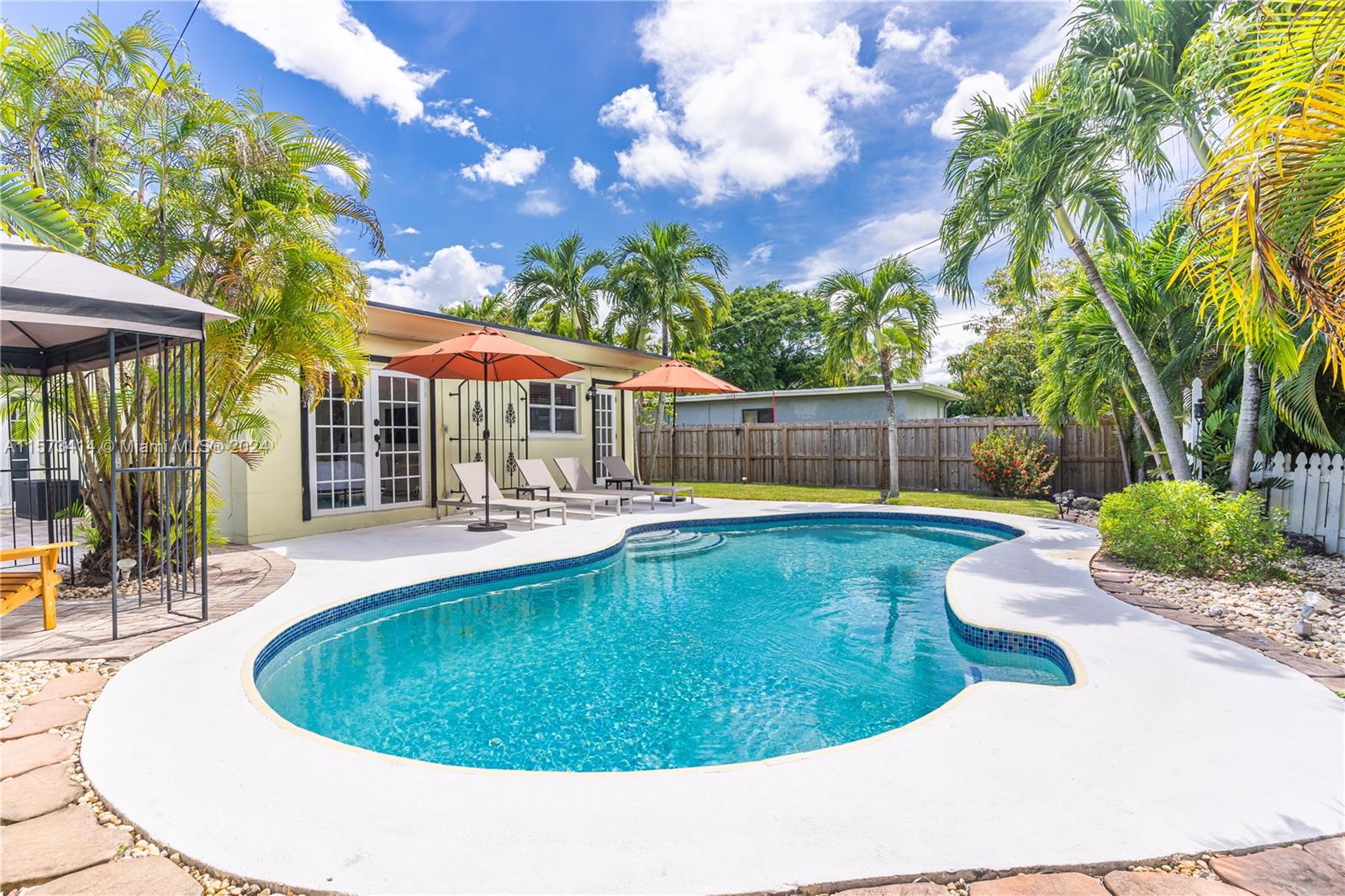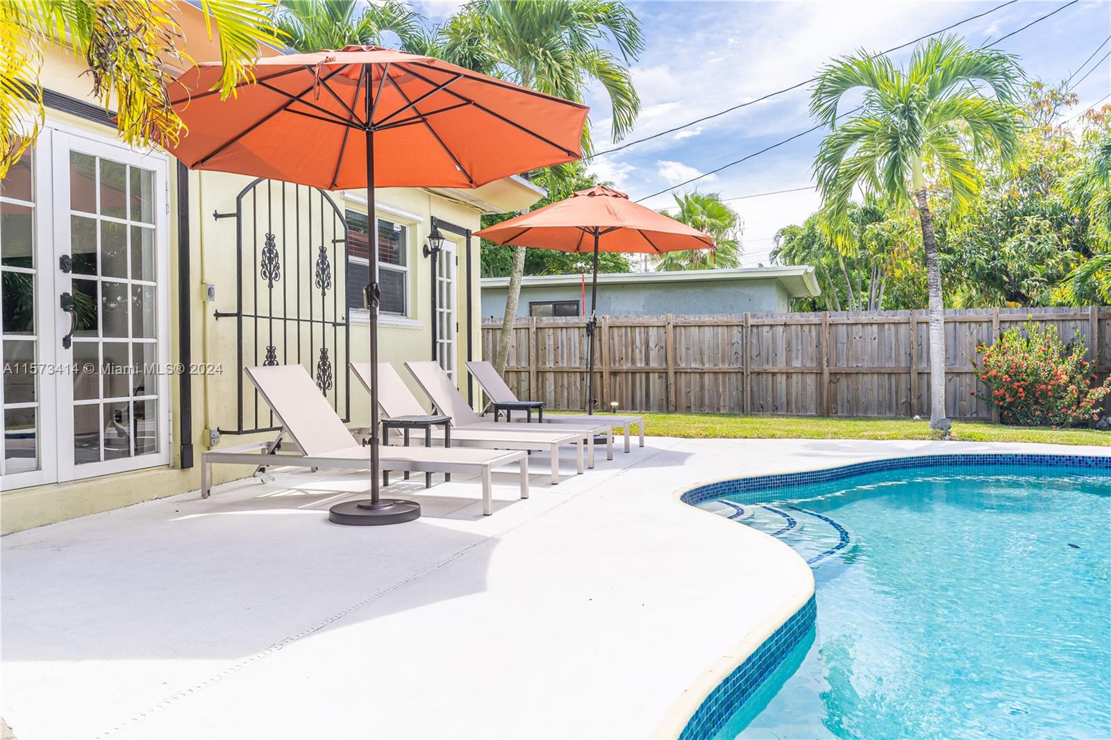 Welcome to your dream home! FURNISHED, and MOVE IN READY, renovated 2 bedroom, 2 bathroom gem boasts a garage and bonus room! Offering the perfect blend of comfort and style.Step inside to discover a spacious living room adorned with french doors, leading to a versatile bonus room that could effortlessly serve as a 3rd bedroom. the!Enjoy the luxury of walk-in closets in both bedrooms, providing ample storage. Outside, a tropical oasis with Pool. Just minutes from the beach, major highways, and an array of shopping and dining options, this home offers the perfect blend of tranquility and convenience. Don't miss out on the chance to call this paradise your own. Schedule a showing today and make this your forever home! Call Listing agent for showings and more info.