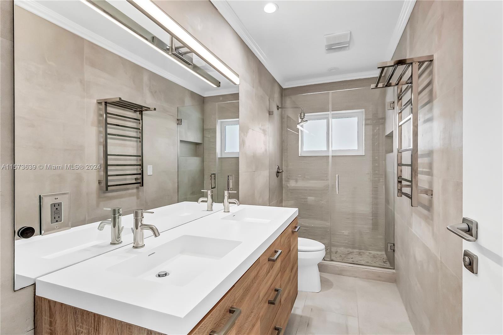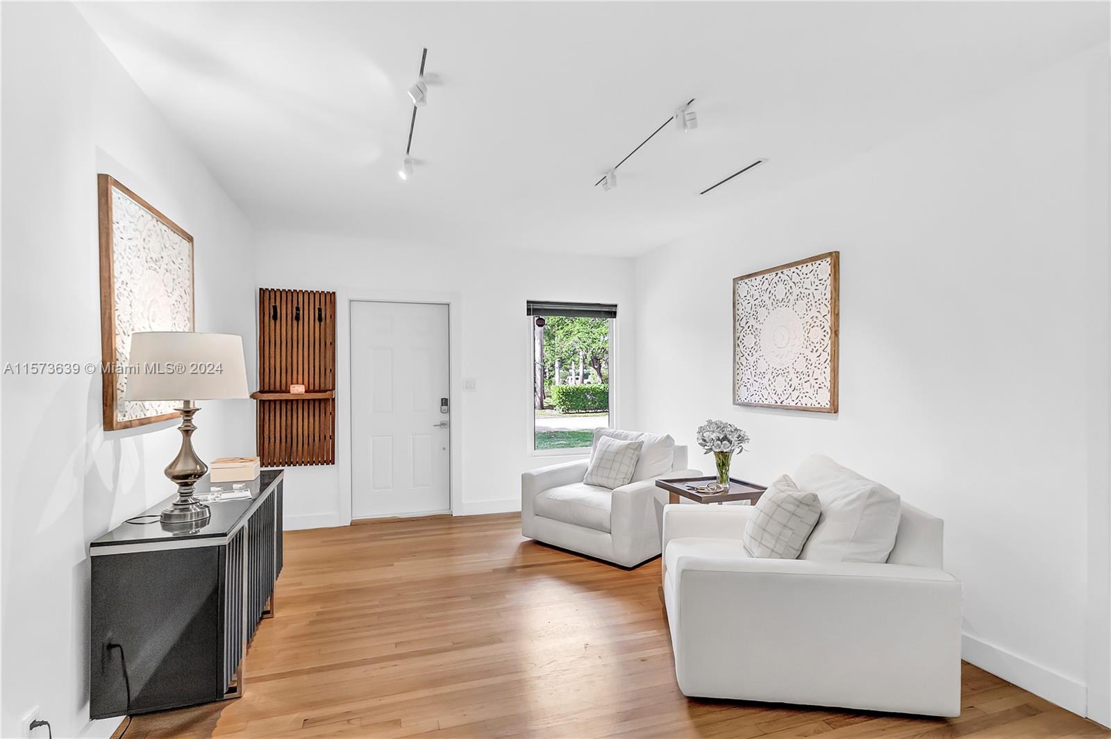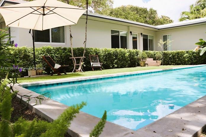 MID CENTURY MODERN HOME IN THE MOST DESIRABLE LOCATION IN MIAMI-SHORES ACROSS FROM MULTI-MILLION DOLLAR WATERFRONT HOMES! THIS LUXURY RESIDENCE IS RENOVATED & STYLED TO PERFECTION. LUXURY FEATURES INCLUDE HIGH CEILINGS, WOOD FLOORS, OPEN KITCHEN WITH QUARTZ COUNTERTOPS, STAINLESS APPLIANCES, GAS OVEN AND NEW IMPACT WINDOWS. ITALIAN INTERIOR DOORS FROM BARAUSSE. IT FEATURES AN ATTACHED 2 CAR GARAGE WITH ITS OWN BATHROOM THAT THE OWNER USED AS AN EXERCISE ROOM. THE POOL IS A LAP POOL GREAT FOR EXERCISING BUT ALSO TO PLAY IN. THIS HOME IS ON A CORNER LOT WITH PRIVATE FRONT AND BACK YARD FEATURING CUSTOM LIGHTING, IDEAL FOR ENTERTAINING.