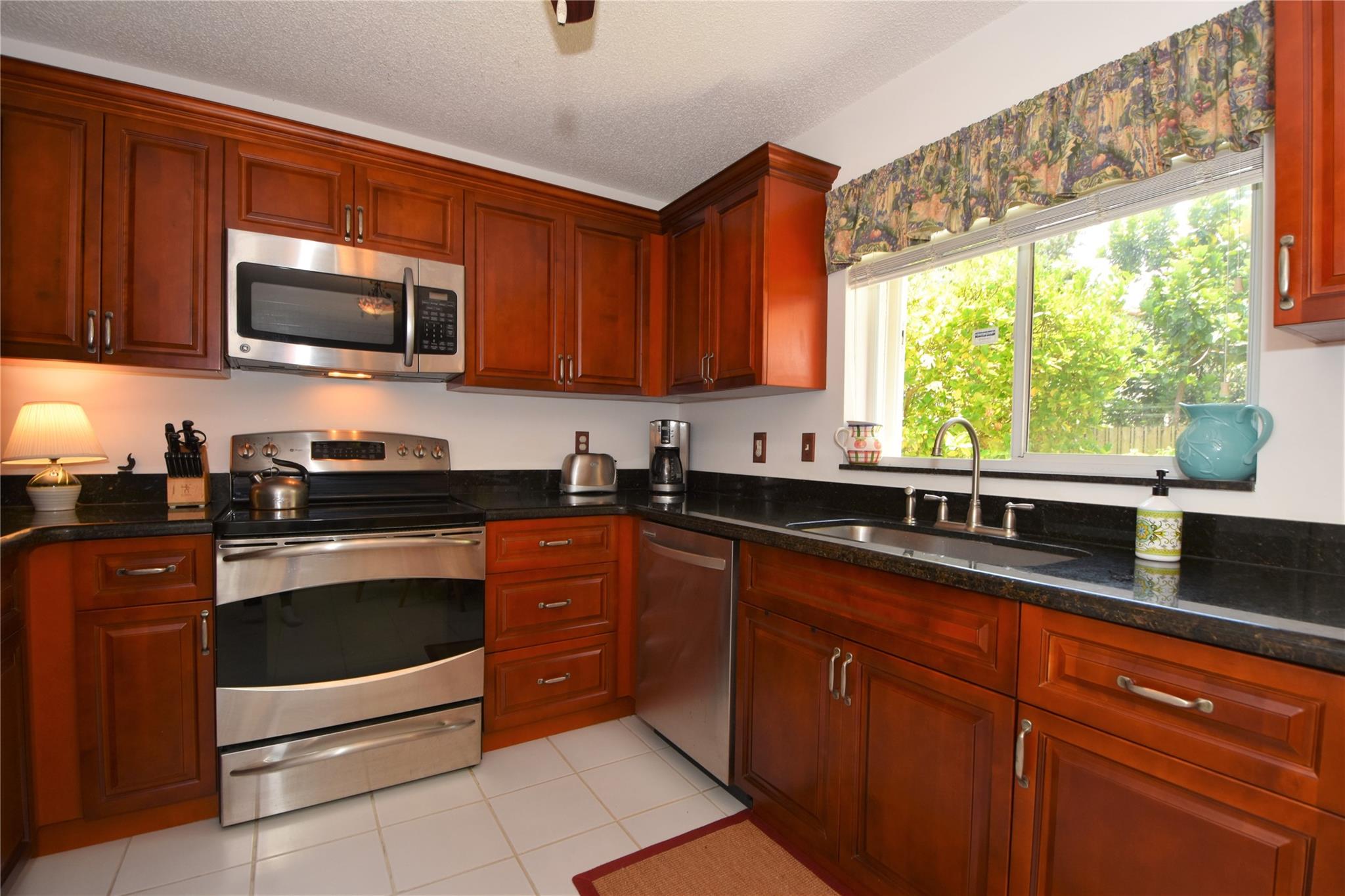 Prestigious Jacaranda location has many winding roads and waterways that gives the community the feel of being in a park. This corner lot home with its towering trees, ivy draped exterior, large paver patio and beautifully landscaped, fenced-in yard (big enough for a pool) has a 'New England" or "Old English" ambience. This 3-bedroom floor plan with open loft has generous room sizes. Lovely remodeled, eat-in kitchen with stainless appliance package and granite countertops has adjoining family room with serene garden views. Master suite has remodeled bathroom and large walk-in closet. Located in the coveted Central Park Elementary school district. Quarterly maintenance includes cable, internet, and all lawn care - even in the back yard! Accordion shutters installed on all openings.