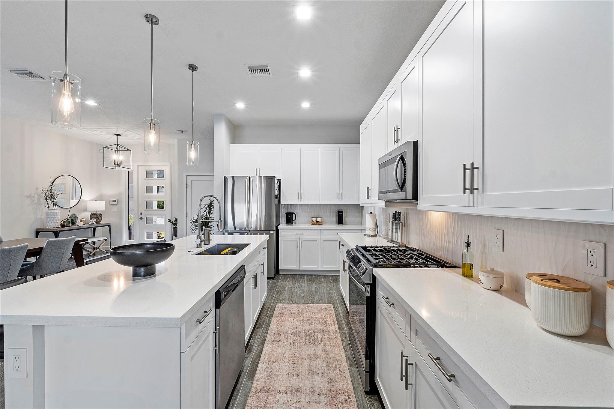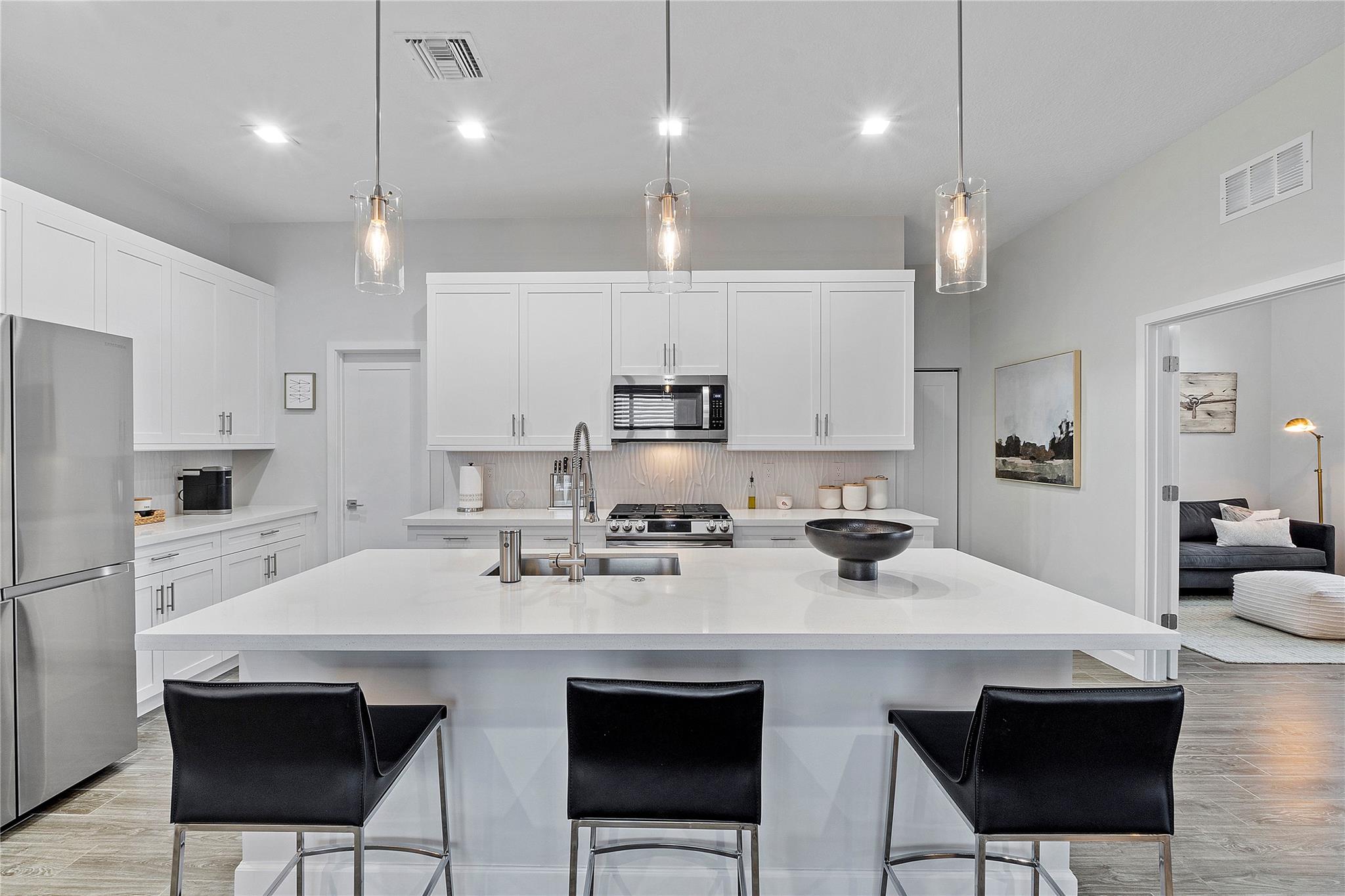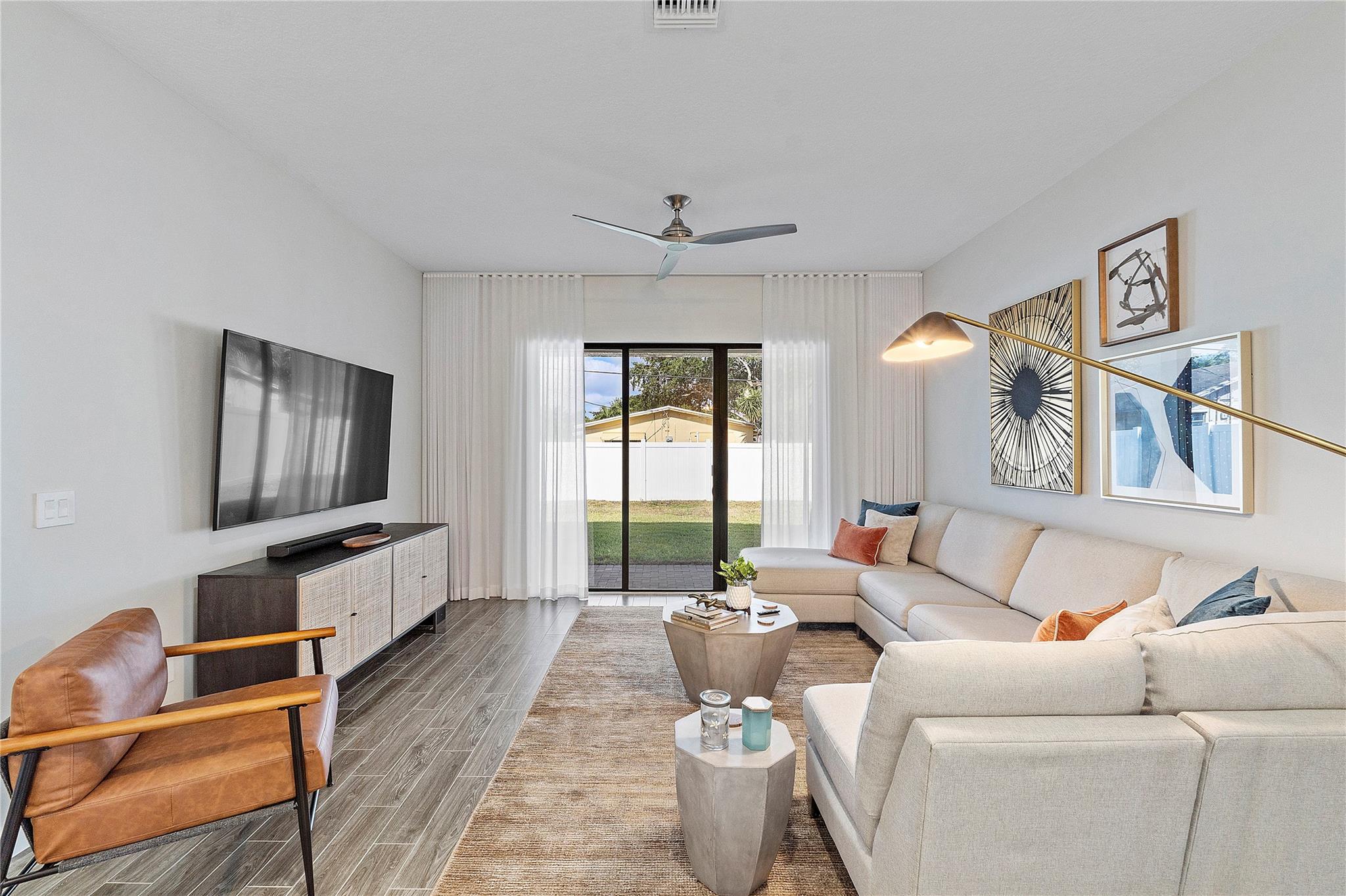 Welcome to 4967 Whispering Way, located in beautiful Whispering Oaks in Dania Beach. Step inside this immaculately maintained 3/3 with den/office that could be a 4th BR. This spacious open floor plan home has modern finishes, 10ft ceilings throughout and tons of natural light. The gourmet kitchen features stainless steel appliances, gas stove, quartz countertops and a large island perfect for entertaining. The primary suite is a true retreat boasting custom walk-in closets and a luxurious en-suite bathroom. The home features plantation shutters, custom curtains, frameless shower doors, home automation, upgraded lighting and much more. This private gated community is located minutes from Dania Pointe, I-95, Fort Lauderdale Airport and beaches. Don't miss the opportunity to call this home!