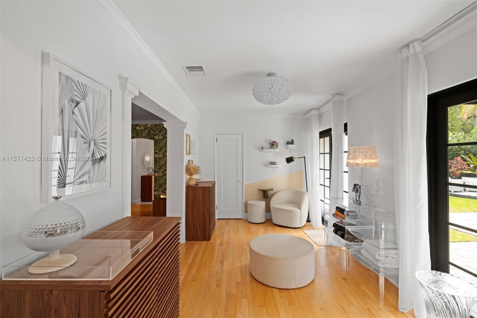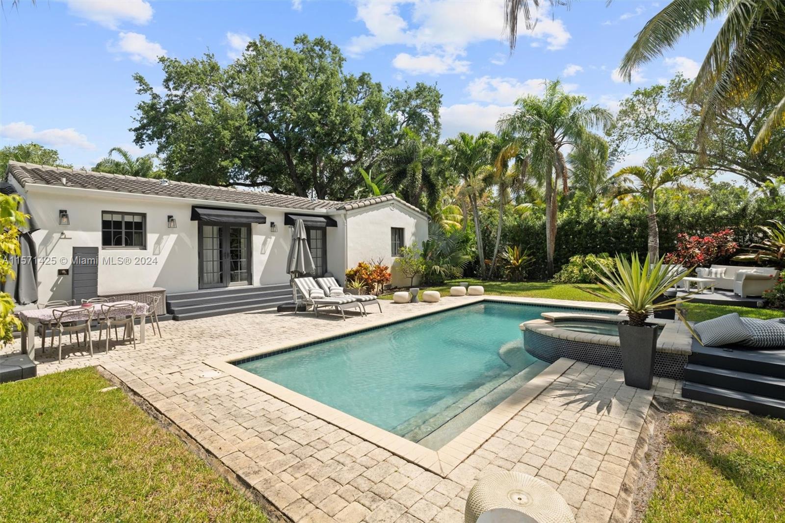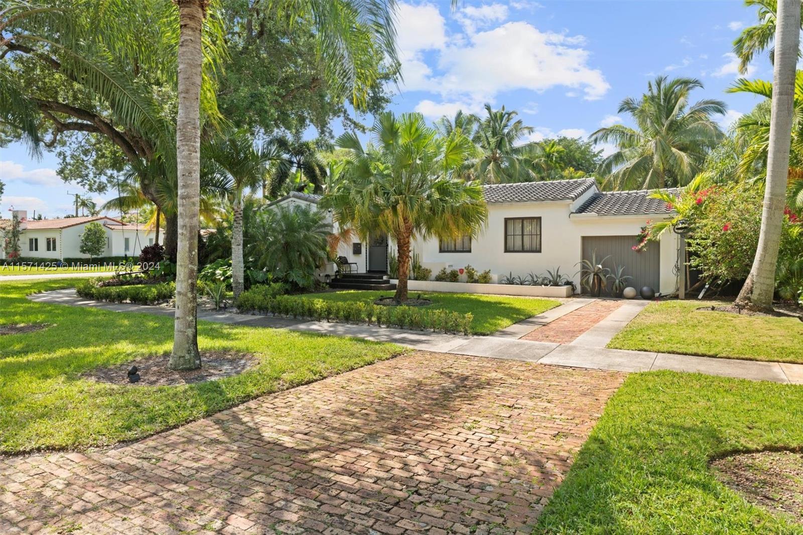 Spotless 3 bed/2 bath pool home in the heart of Miami Shores. Don't look any further! This home offers super charming interior features combined w/ modern details. Hardwood floors, fireplace, updated kitchen w/ stainless steel appliances and black granite countertops. Newer roof and A/C, impact windows, and French doors leading to the tropical back yard and pool area. Corner lot! Every detail of this home has been thoughtfully considered. Pristine saltwater heated pool w/hot tub surrounded by breathtaking landscape and tropical fruit trees, ideal for entertaining, completely fenced in w/ outdoor shower and plenty of storage. This home is a true sanctuary. Amazing location offers walking distance to shops and restaurants. Best schools!