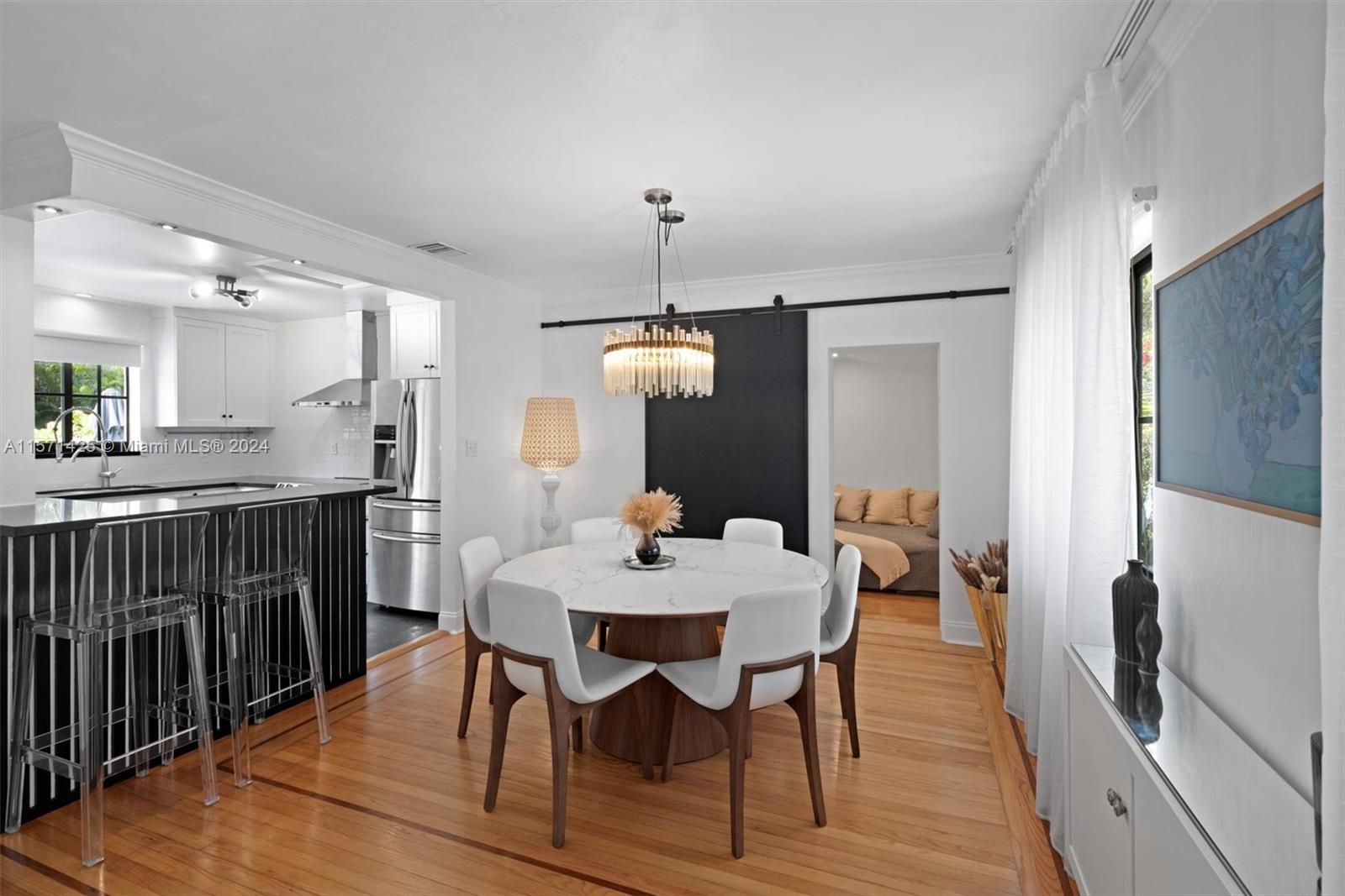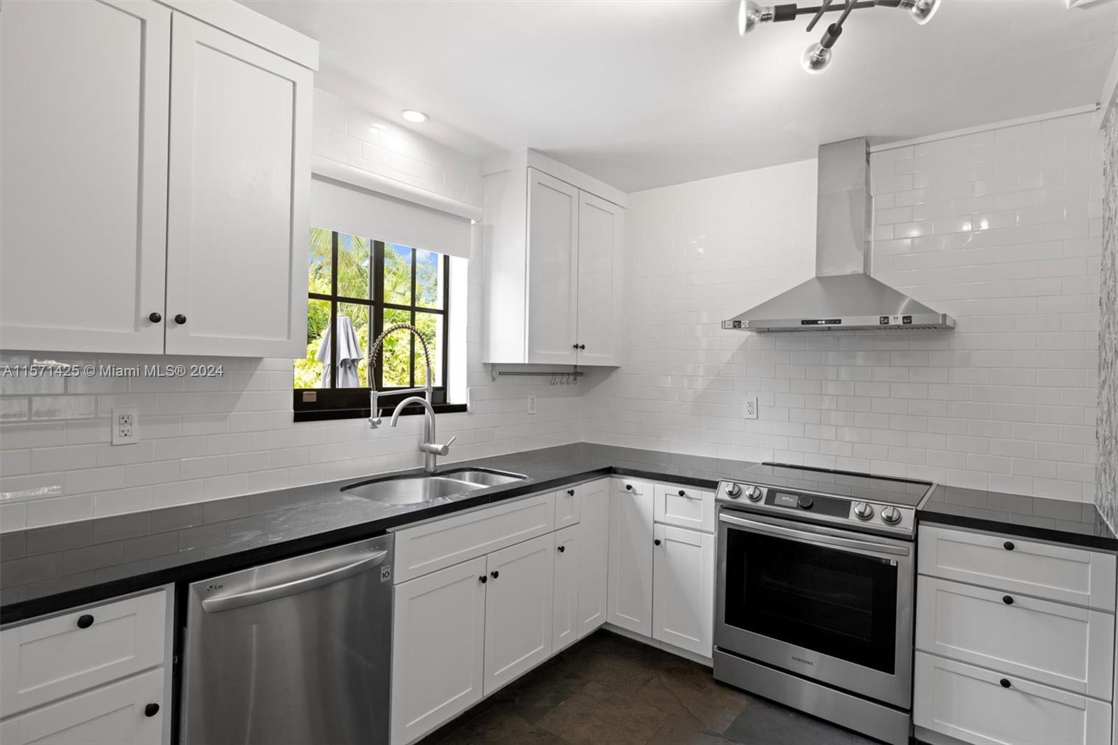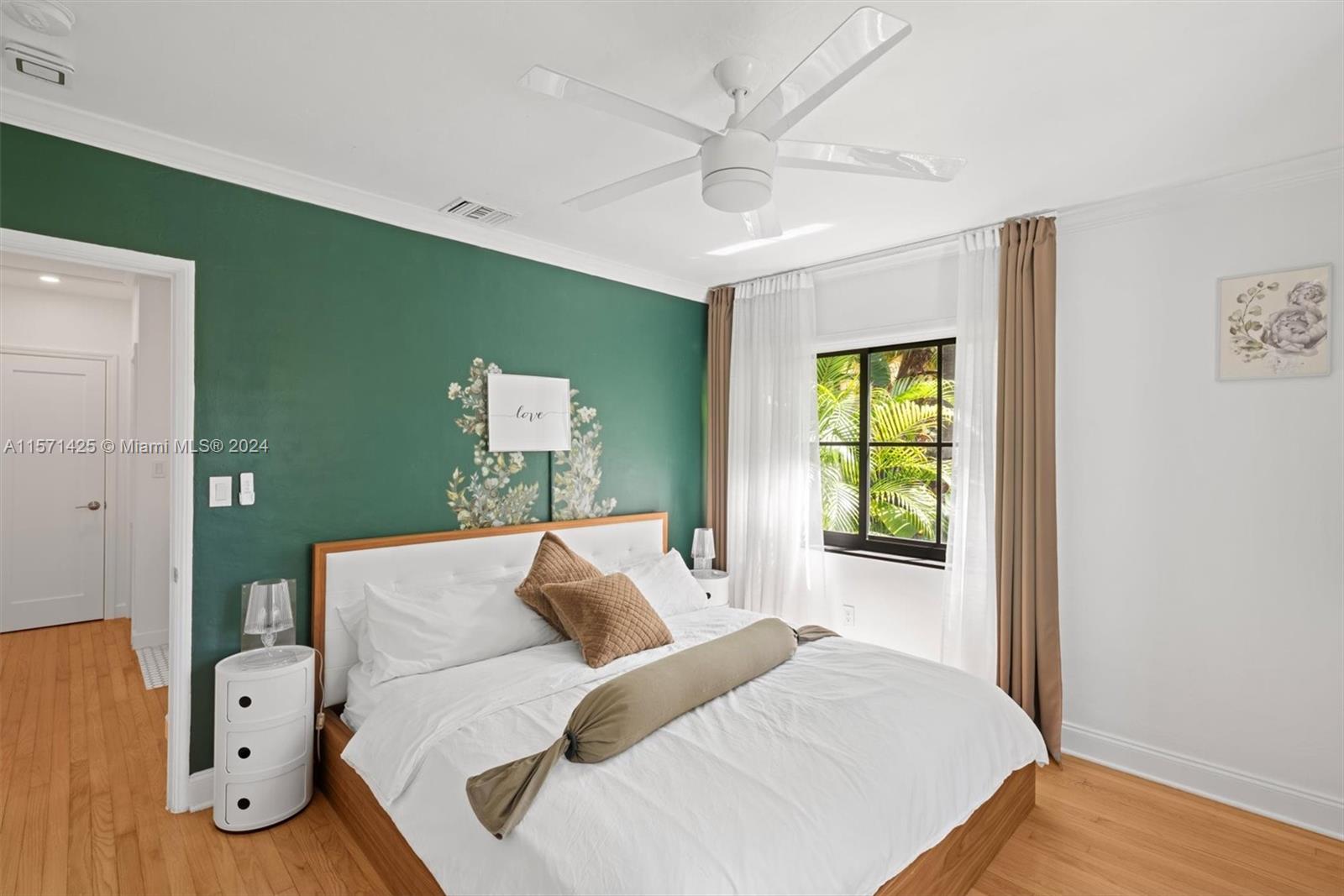 Spotless 3 bed/2 bath pool home in the heart of Miami Shores. Don't look any further! This home offers super charming interior features combined w/ modern details. Hardwood floors, fireplace, updated kitchen w/ stainless steel appliances and black granite countertops. Newer roof and A/C, impact windows, and French doors leading to the tropical back yard and pool area. Corner lot! Every detail of this home has been thoughtfully considered. Pristine saltwater heated pool w/hot tub surrounded by breathtaking landscape and tropical fruit trees, ideal for entertaining, completely fenced in w/ outdoor shower and plenty of storage. This home is a true sanctuary. Amazing location offers walking distance to shops and restaurants. Best schools!