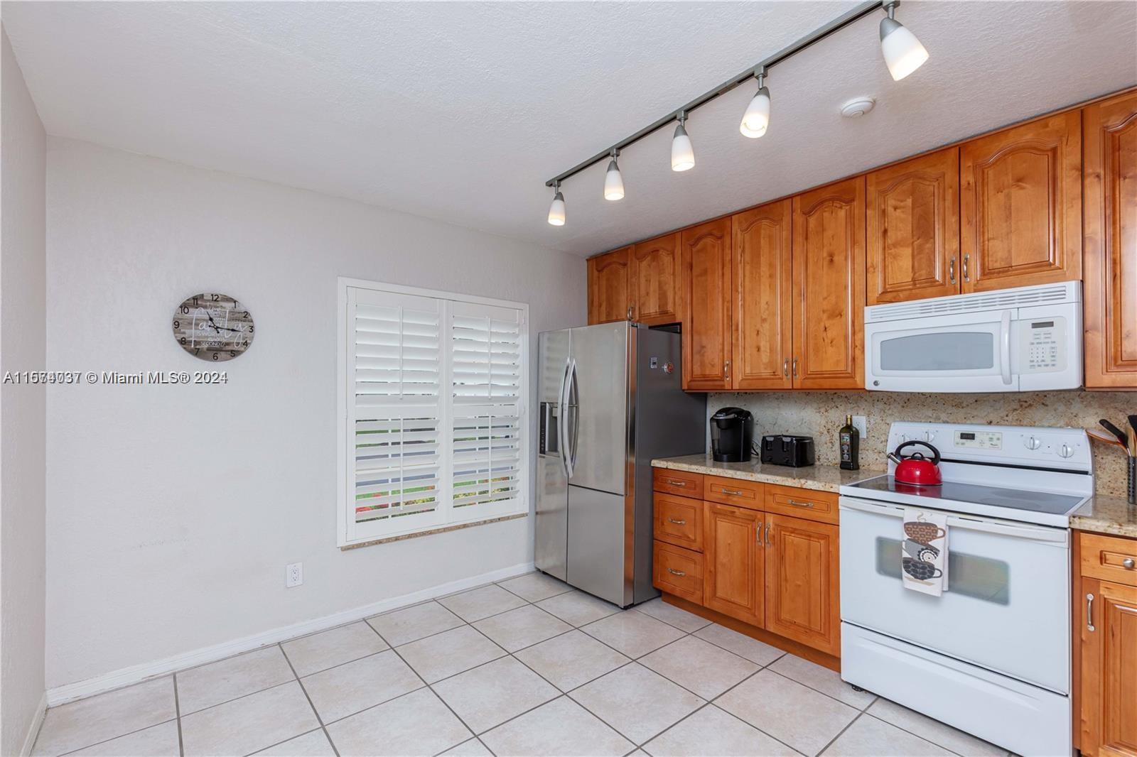 Immaculate 4 bedrooms, 2½ baths in charming Emerald Isle gated community. Home features renovated wood kitchen cabinets, granite countertops, new refrigerator. Open floor plan, lite & bright with clerestory windows, soaring ceiling. Ceramic flooring throughout. Modern window treatments in living areas and blackouts in bedrooms. All bathrooms have been renovated with custom wood vanity & granite tops. California style closets. Courtyard style entrance, fully fenced and screened large backyard. Located in the hearth of Weston, walking distance to Indian Trace Elementary and Tequesta Middle school.