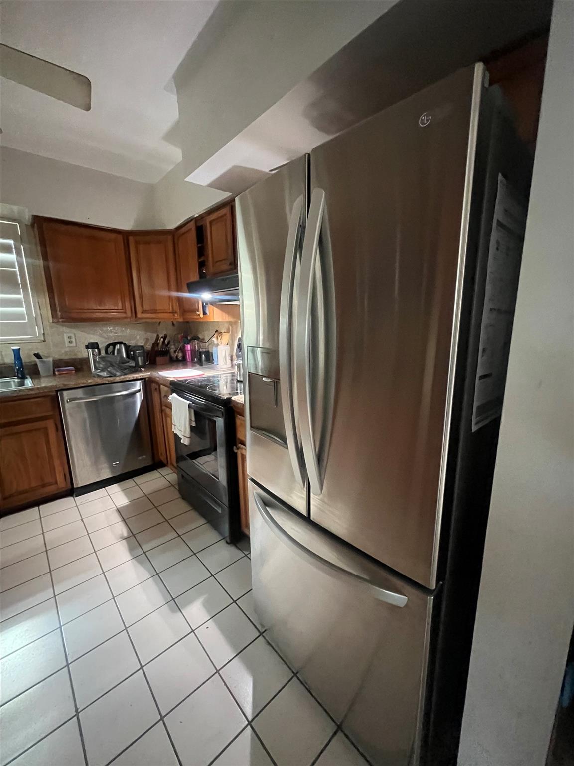 Location, location, location! Home conveniently located near major highways. Close to restaurants and shops. Features impact windows on the front and side of the home. Front door is hurricane resistant. Wood kitchen cabinets and countertops are in good condition. Plantation Shutters throughout the home. Tile and laminate floors are added bonuses to this home. Additional bedroom in the rear of the home. Enjoy the covered patio as added living space. Central AC unit installed 2011. Refrigerator a year old, washer, dryer and hot water heater 1-2 years old. Huge yard with room for a pool. Don’t miss an opportunity to add some updates and make this your next home. Prefers showings after 4pm. Small dog on the premises.